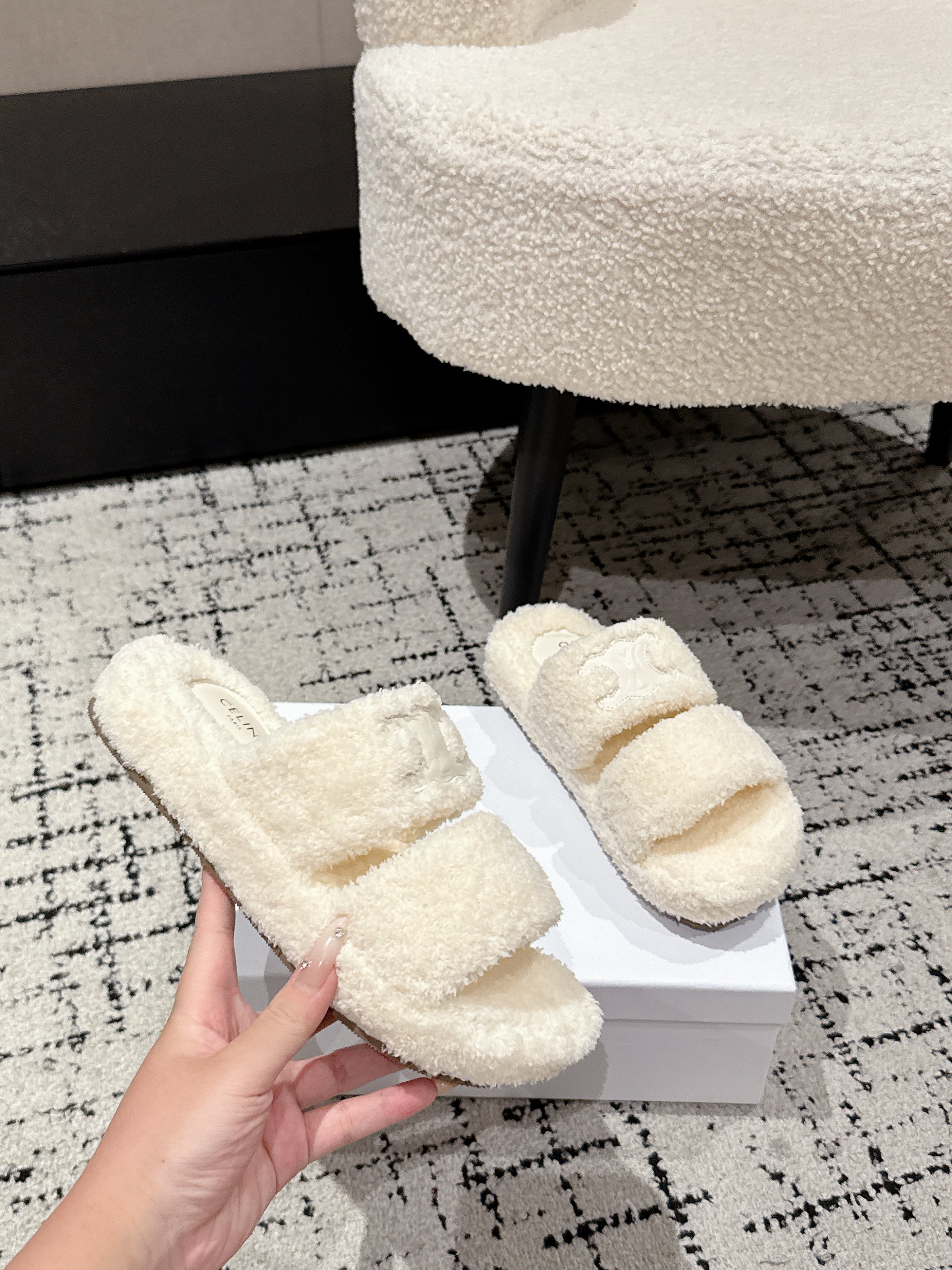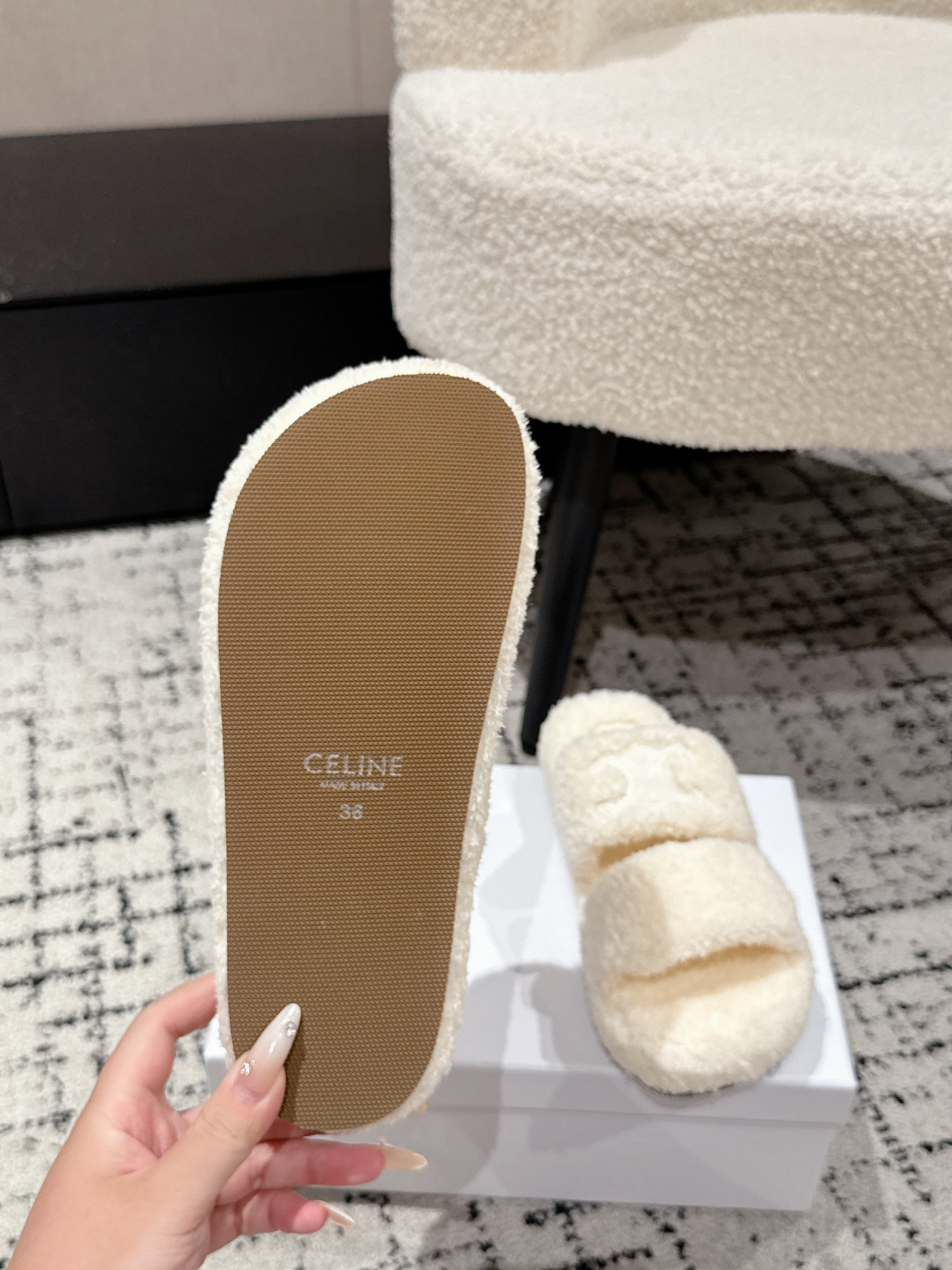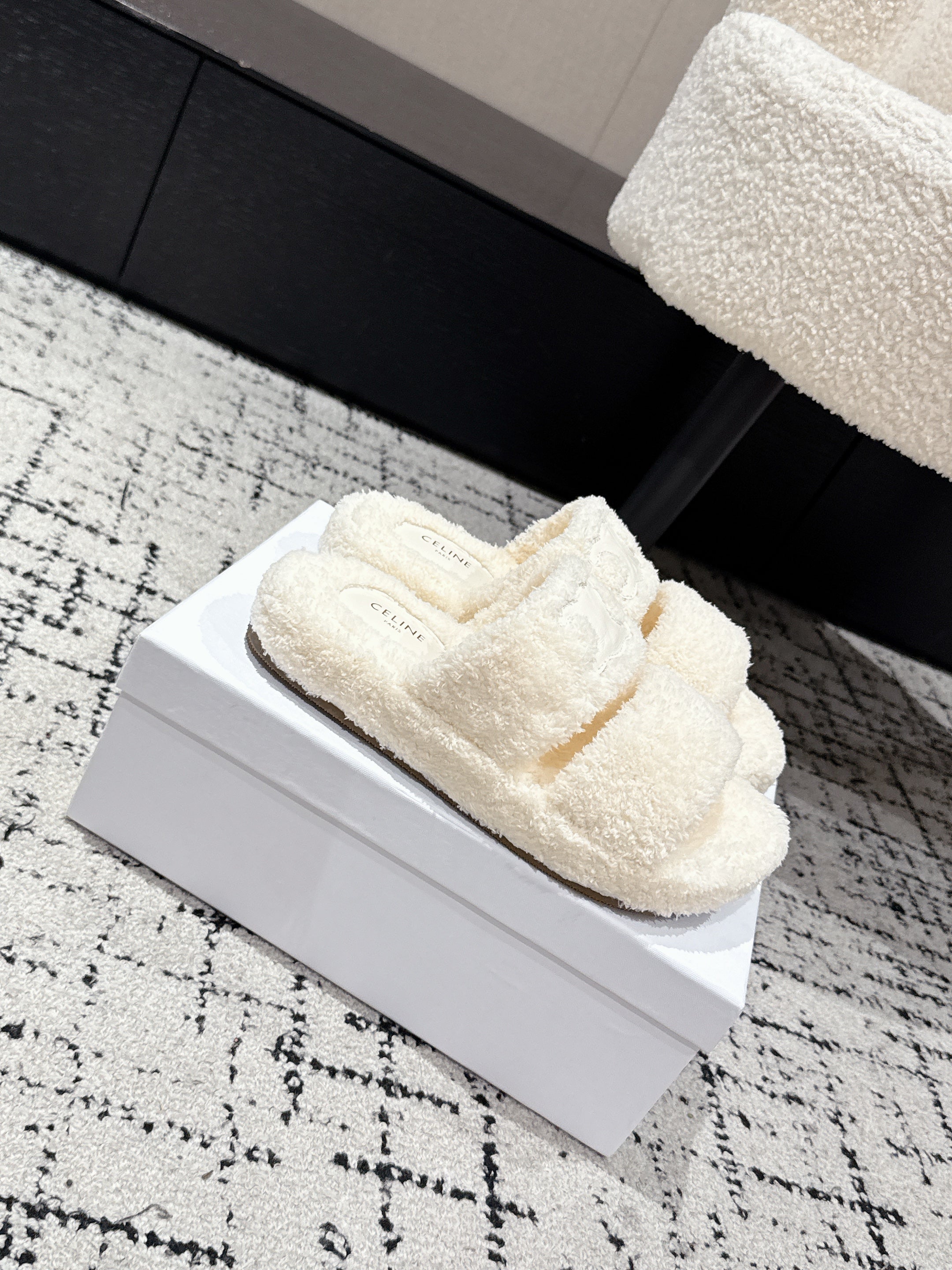 CELINE 25S SLIDES TRIOMPHE IN IVORY SPONGE FABRIC