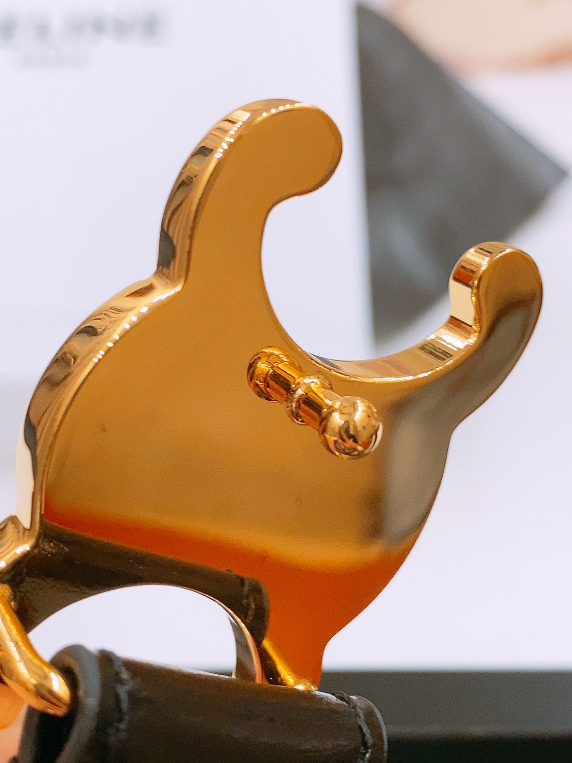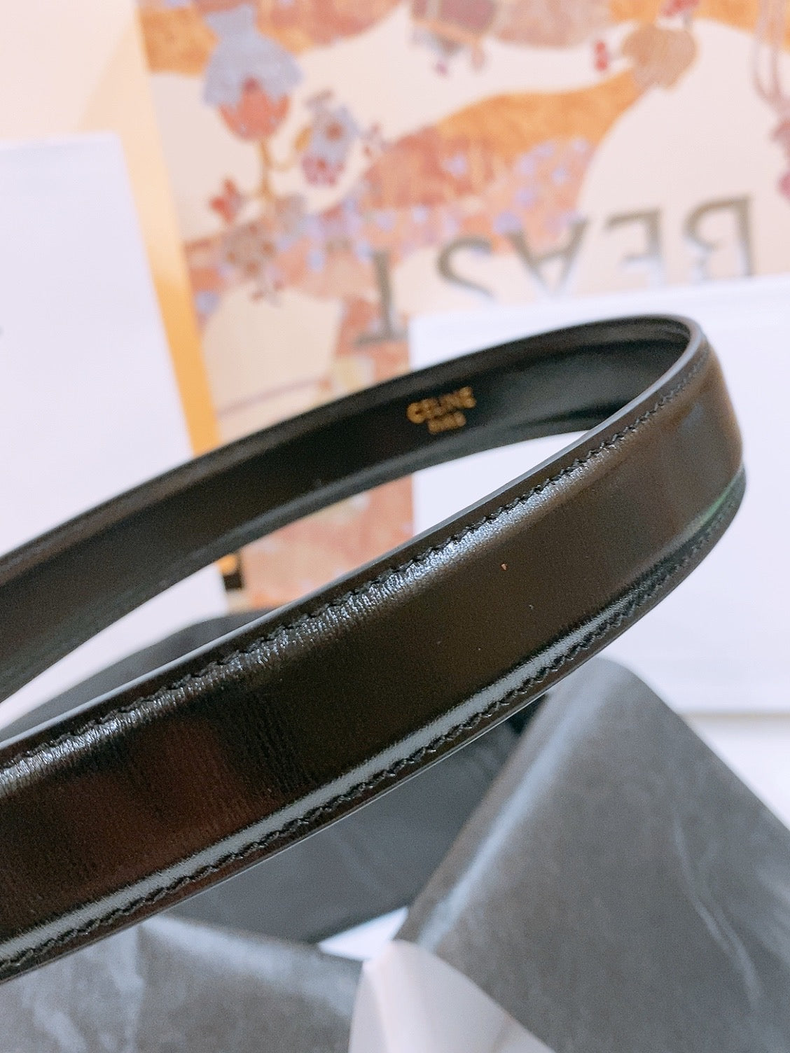 CELINE 25S TRIOMPHE BELT 25MM IN BLACK GLOSSY CALFSKIN GOLD HARDWARE 570968