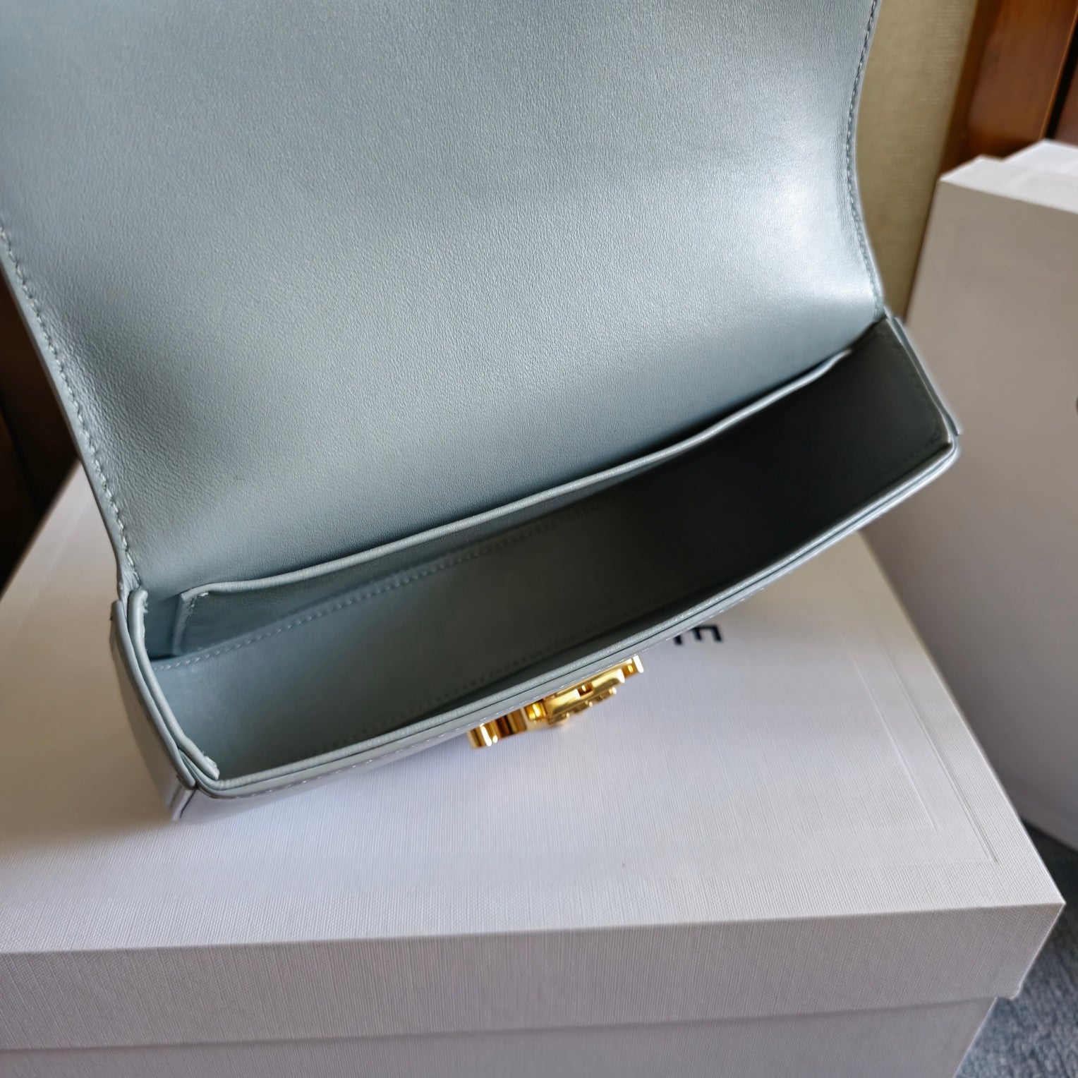 CHAIN EMBOSSED ARMPIT BAG 20 IN COOL GRAY BLUE CALFSKIN