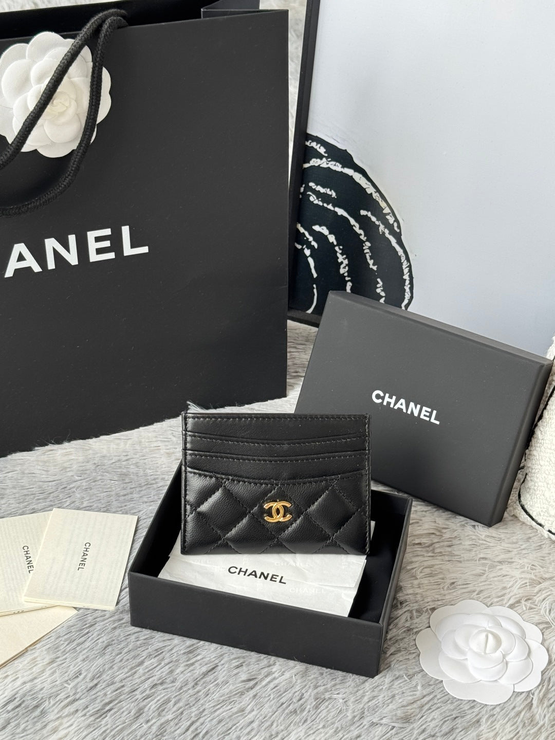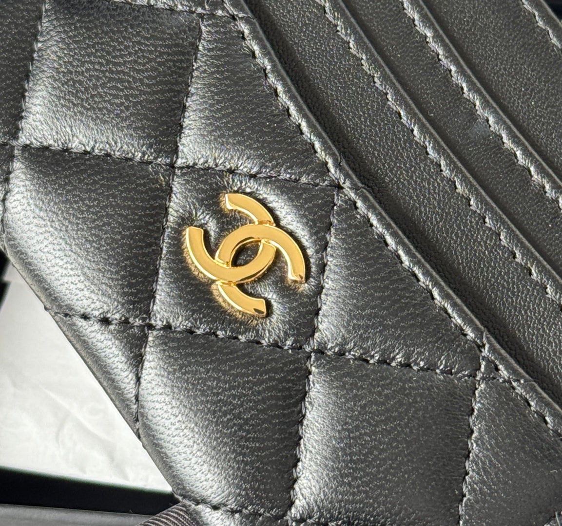 CHANEL 25S CARD HOLDER 11 IN BLACK LAMBSKIN GOLD HARDWARE