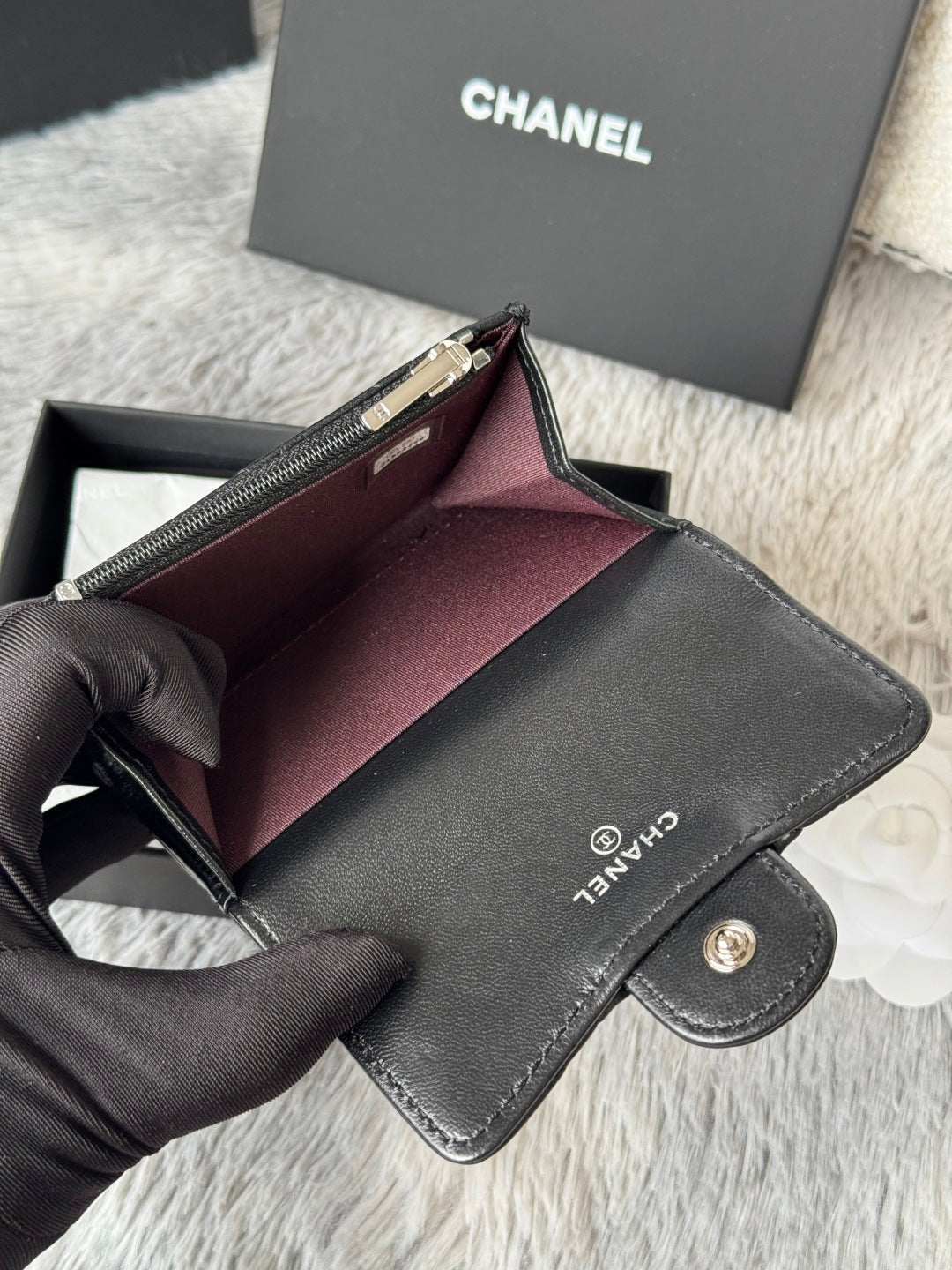 CHANEL 25S CLASSIC CARD HOLDER 11 IN BLACK LAMBSKIN SILVER HARDWARE