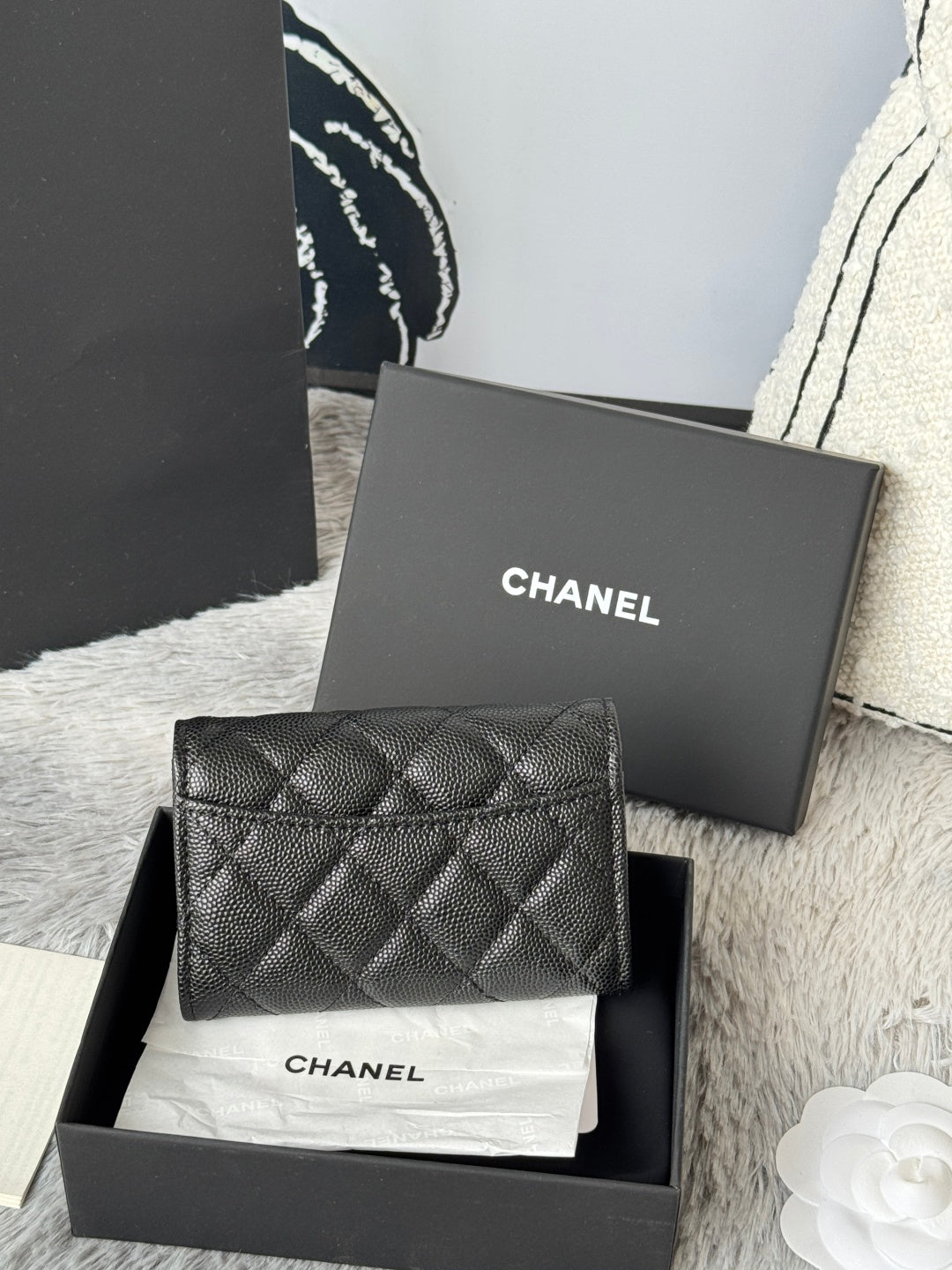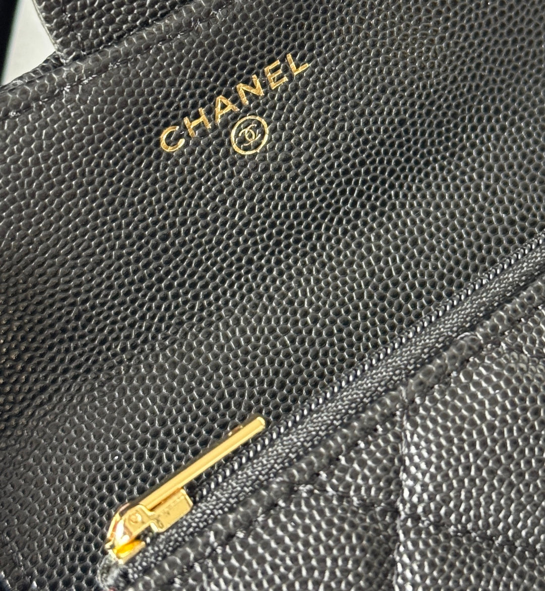 CHANEL 25S CLASSIC FLAP CARD HOLDER 11 IN BLACK CAVIAR GOLD HARDWARE