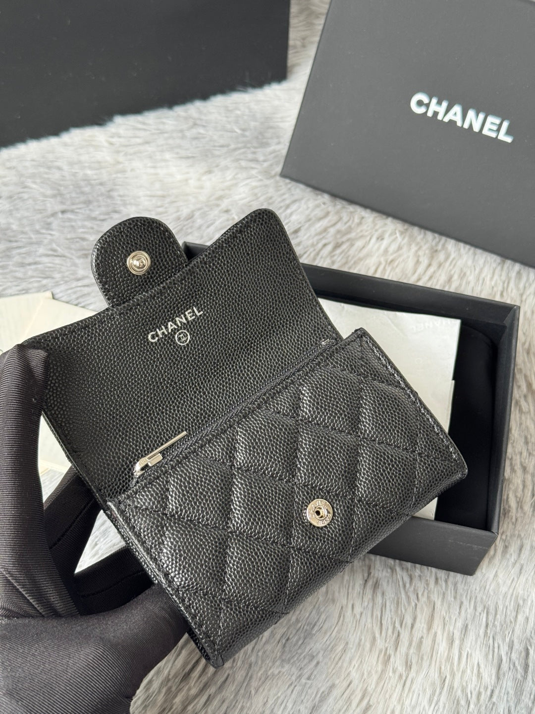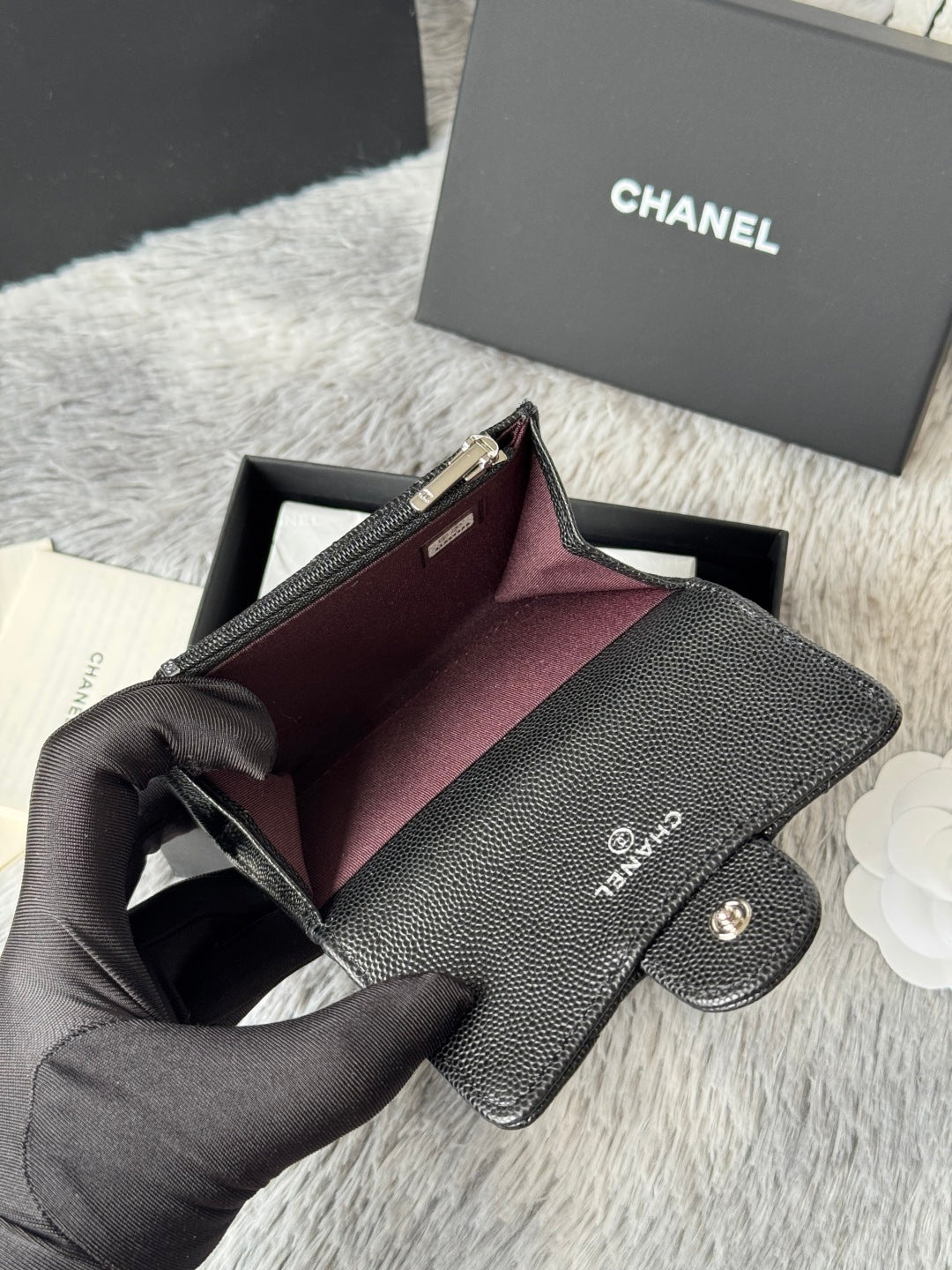 CHANEL 25S CLASSIC FLAP CARD HOLDER 11 IN BLACK CAVIAR SILVER HARDWARE