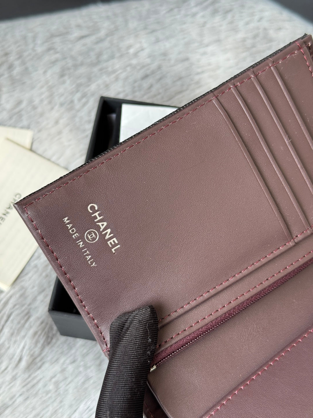 CHANEL 25S MULTI PURPOSE PASSPORT WALLET 15 IN BLACK CALFSKIN SILVER HARDWARE