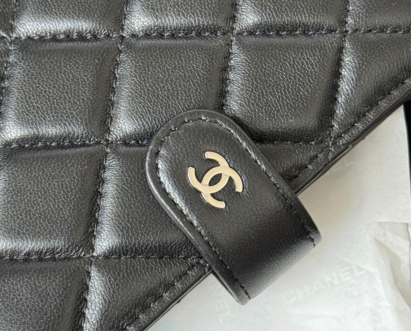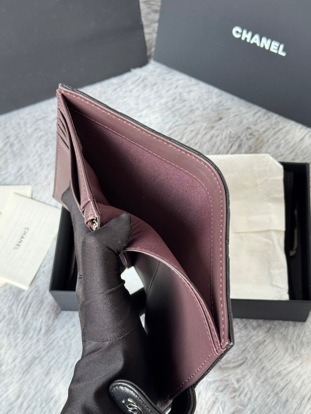 CHANEL 25S MULTI PURPOSE PASSPORT WALLET 15 IN BLACK LAMBSKIN SILVER HARDWARE