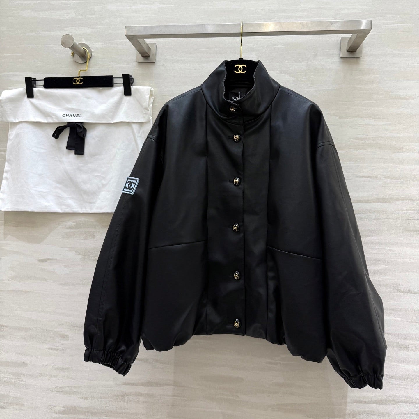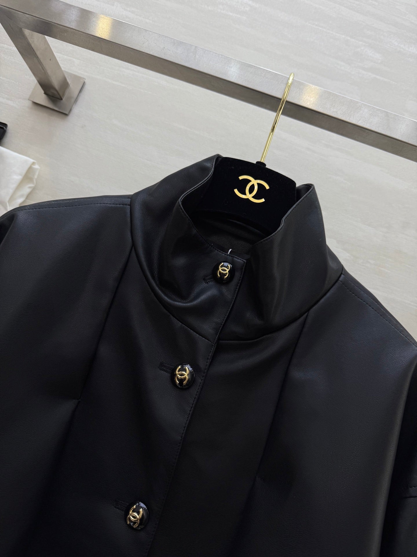 CHANEL 25S STAND-COLLAR LEATHER JACKET 291