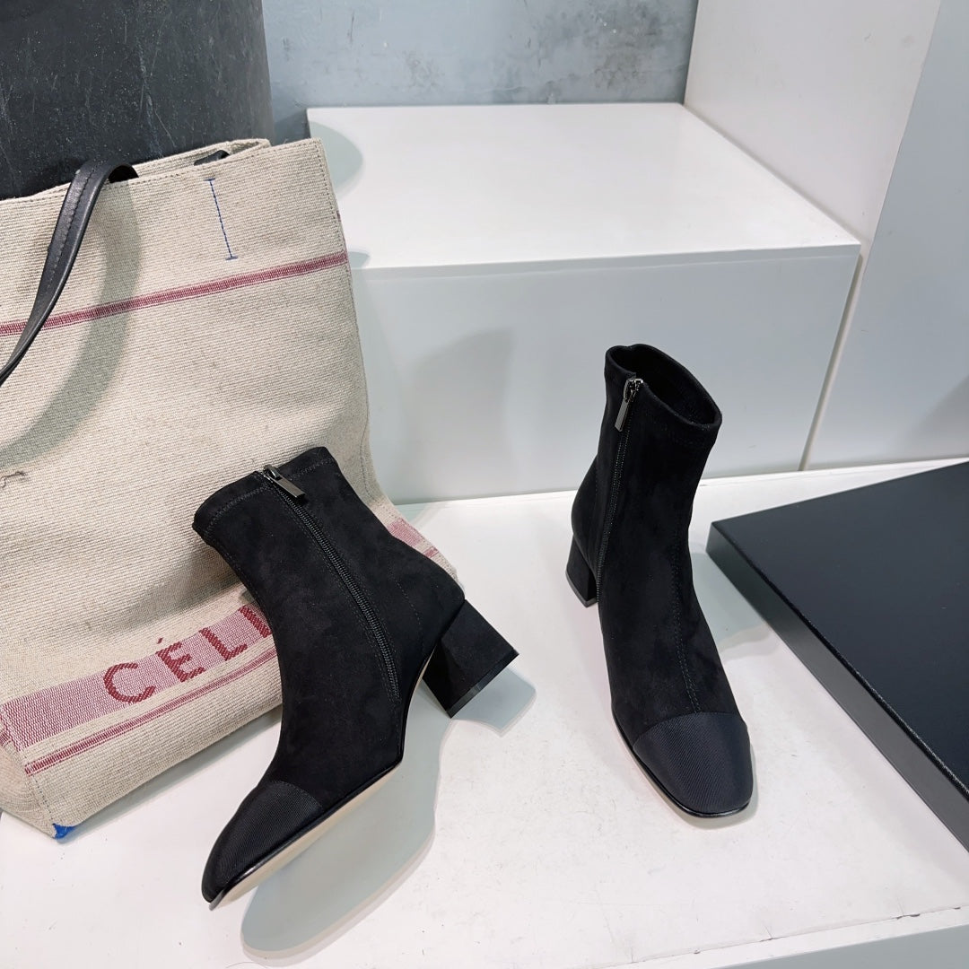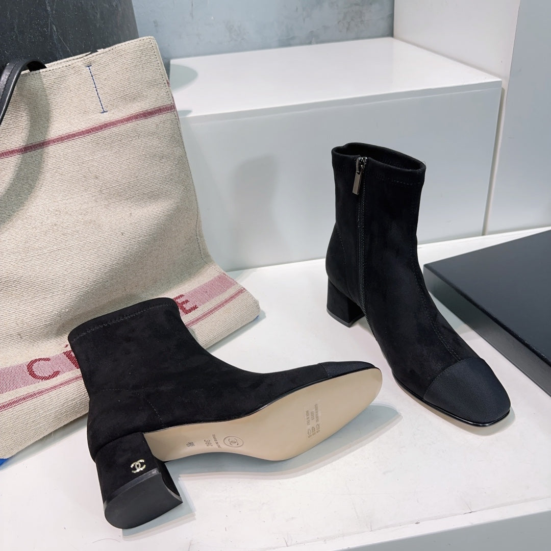 CHANEL ANKLE BOOTS 25S 45 MM IN BLACK SUEDE WITH ZIPPER