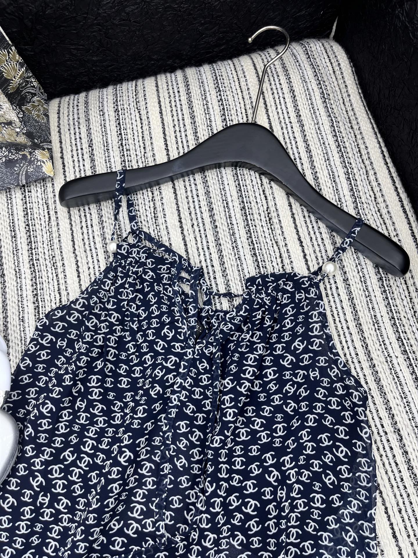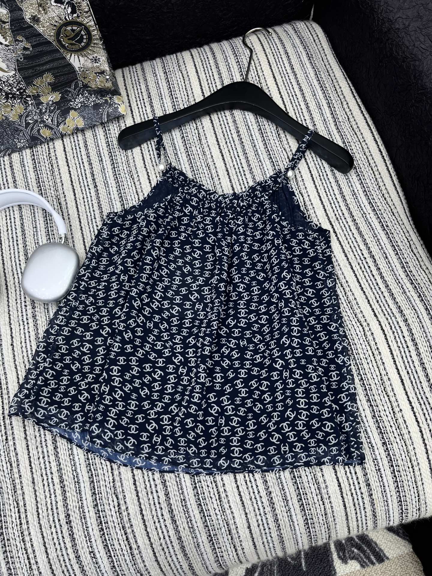 CHANEL BLACK PEARL-EMBELLISHED CAMISOLE