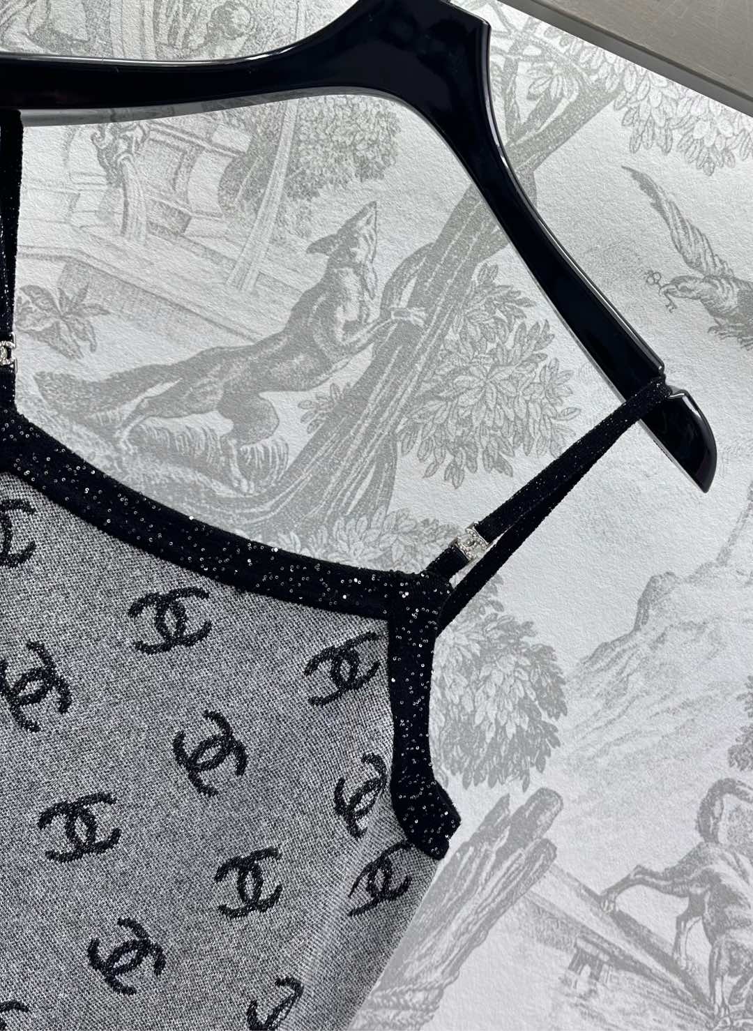 CHANEL CAMISOLE WITH LOGO DETAIL IN GREY