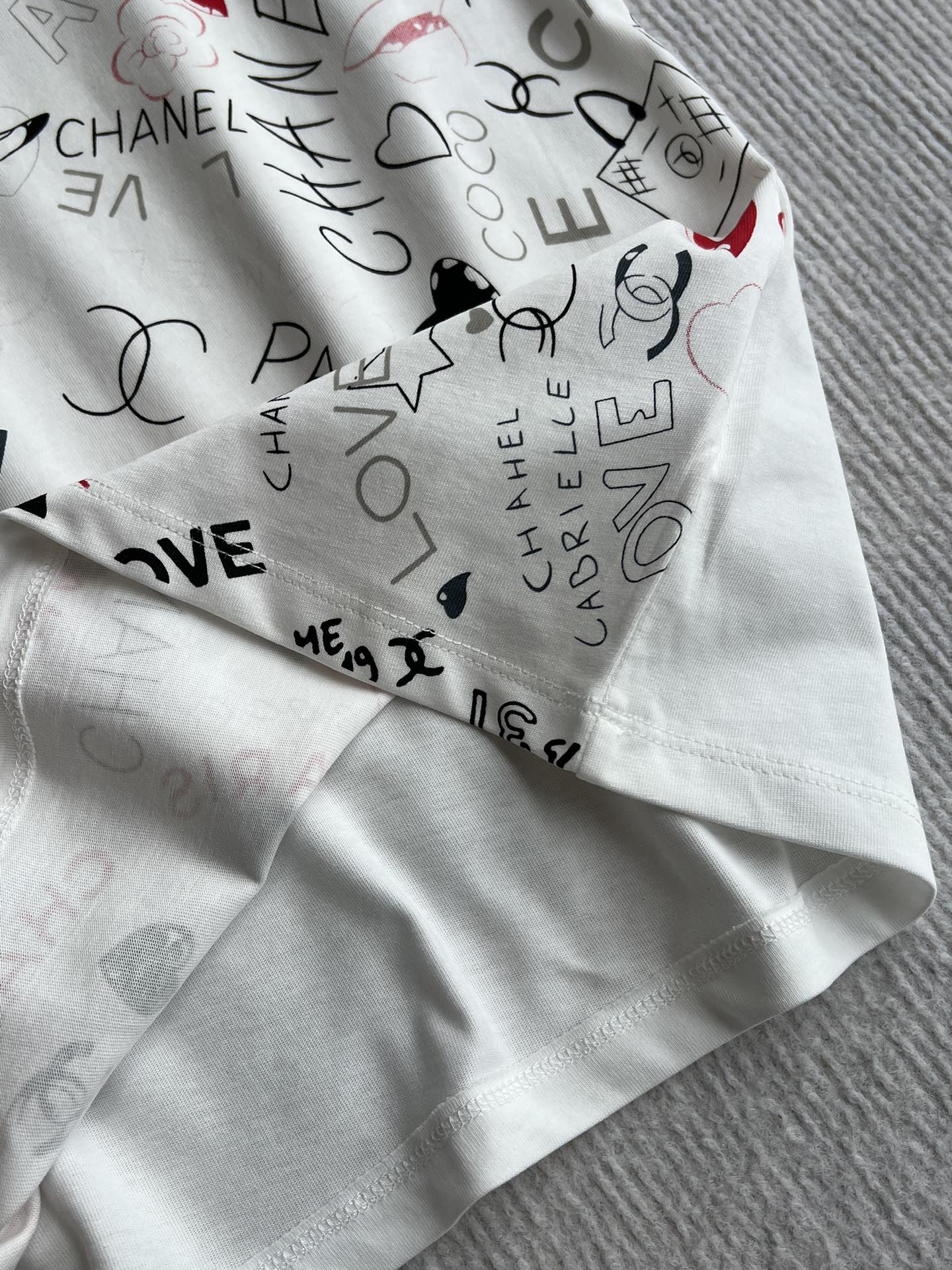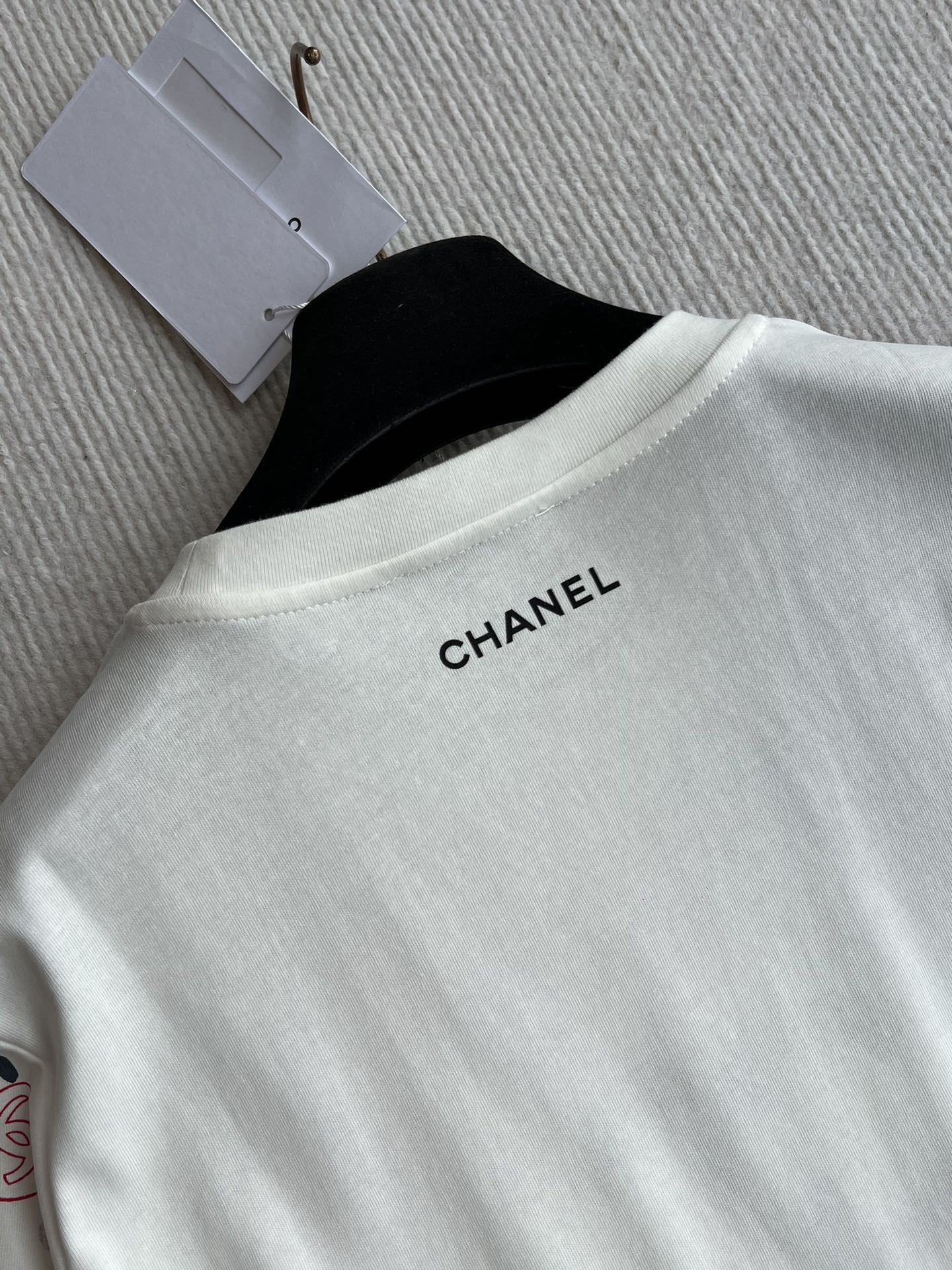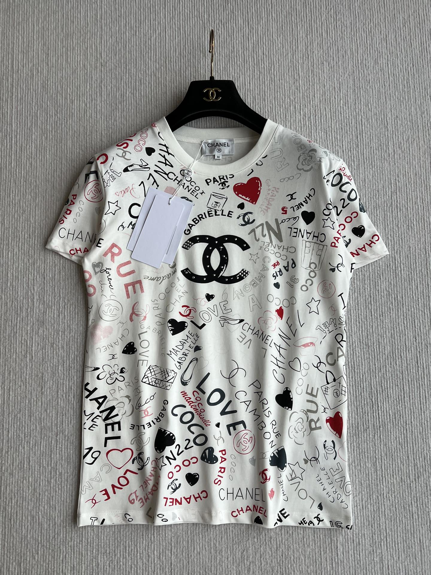 CHANEL OFF-WHITE LOGO PRINT T-SHIRT