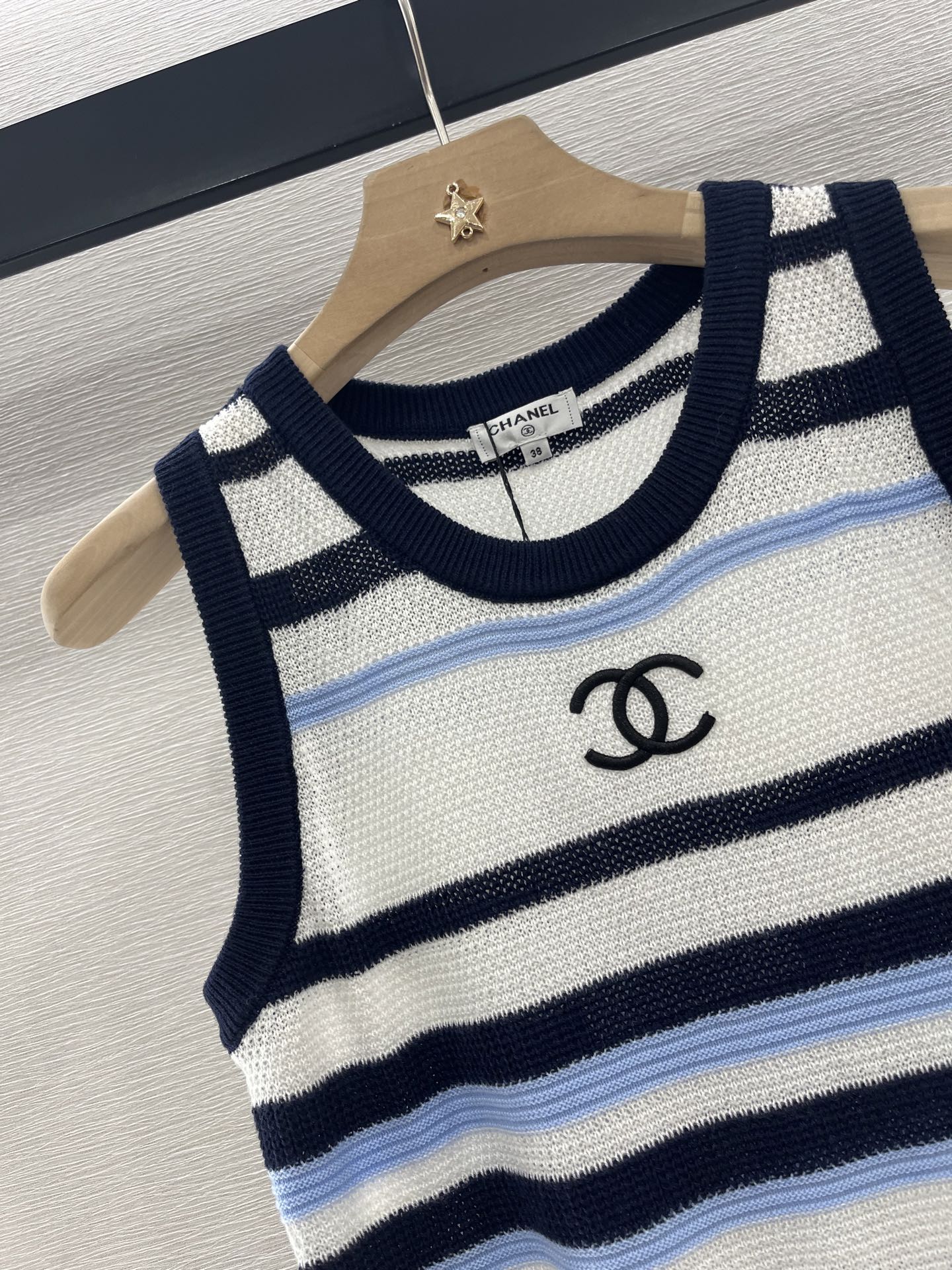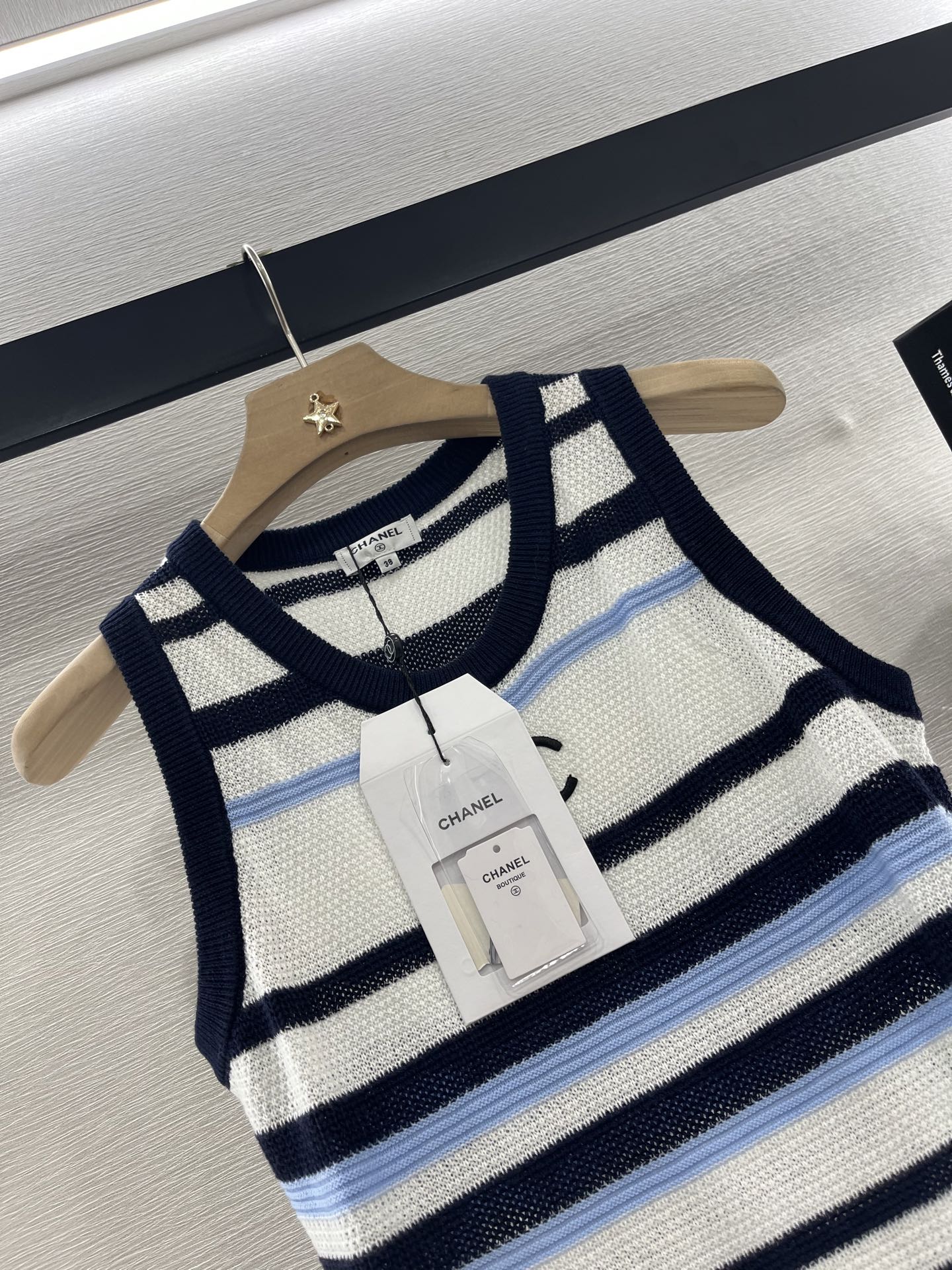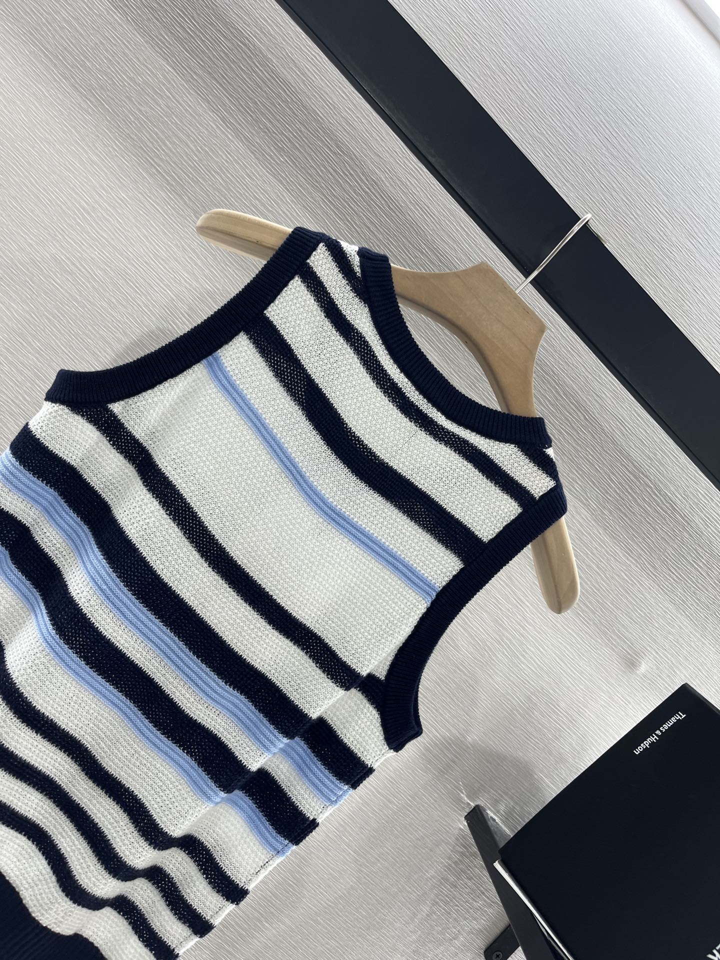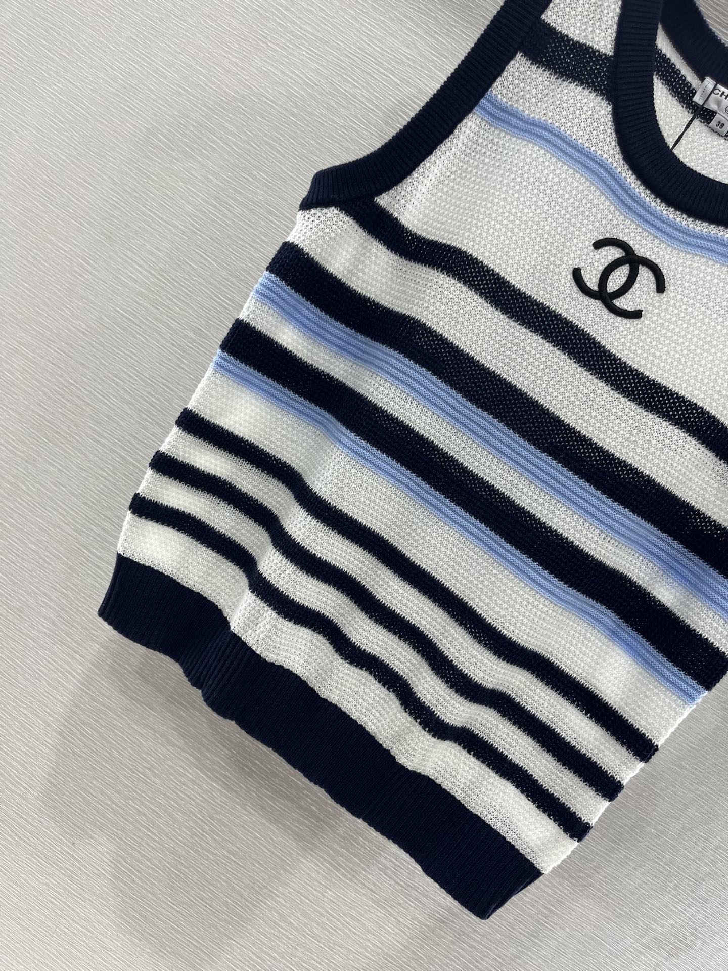 CHANEL STRIPED SLEEVELESS KNIT TOP 263401