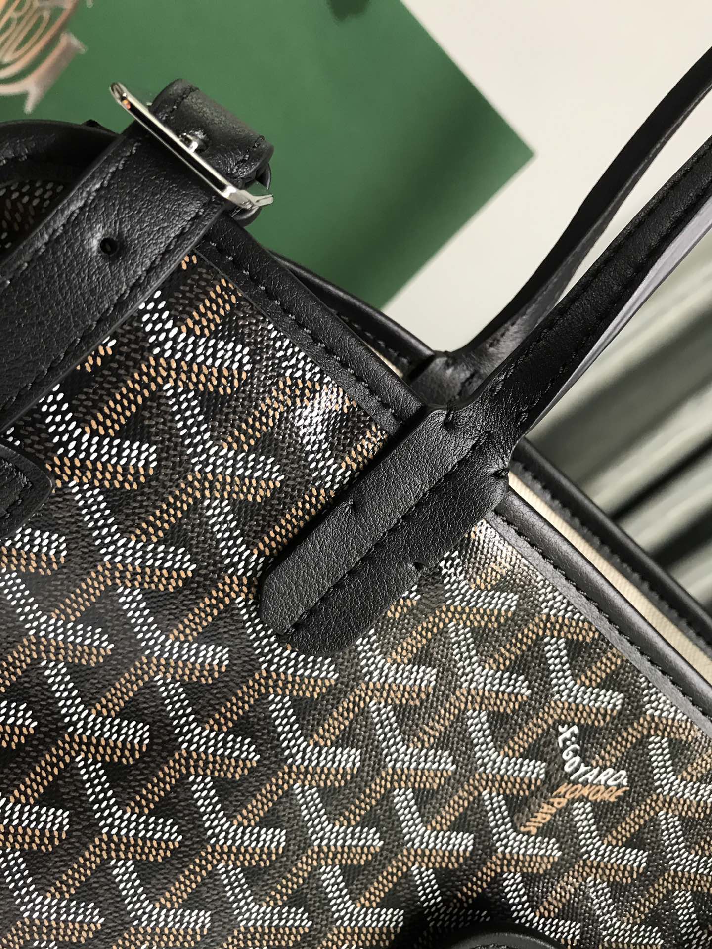 CHIEN GRIS BAG 33 IN BLACK GOYARDINE CANVAS AND TAN CALFSKIN TRIM