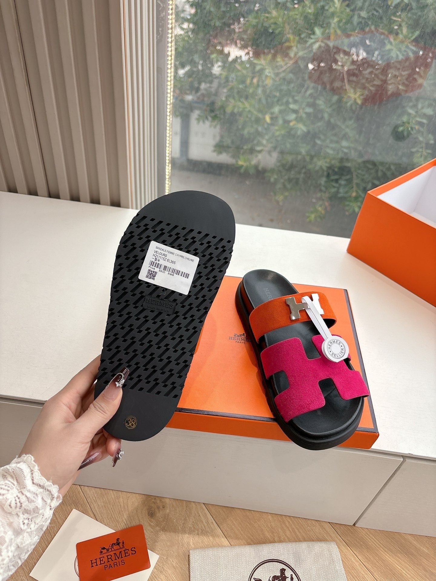 CHYPRE SANDAL IN DARK PINK MIX ORANGE SUEDE
