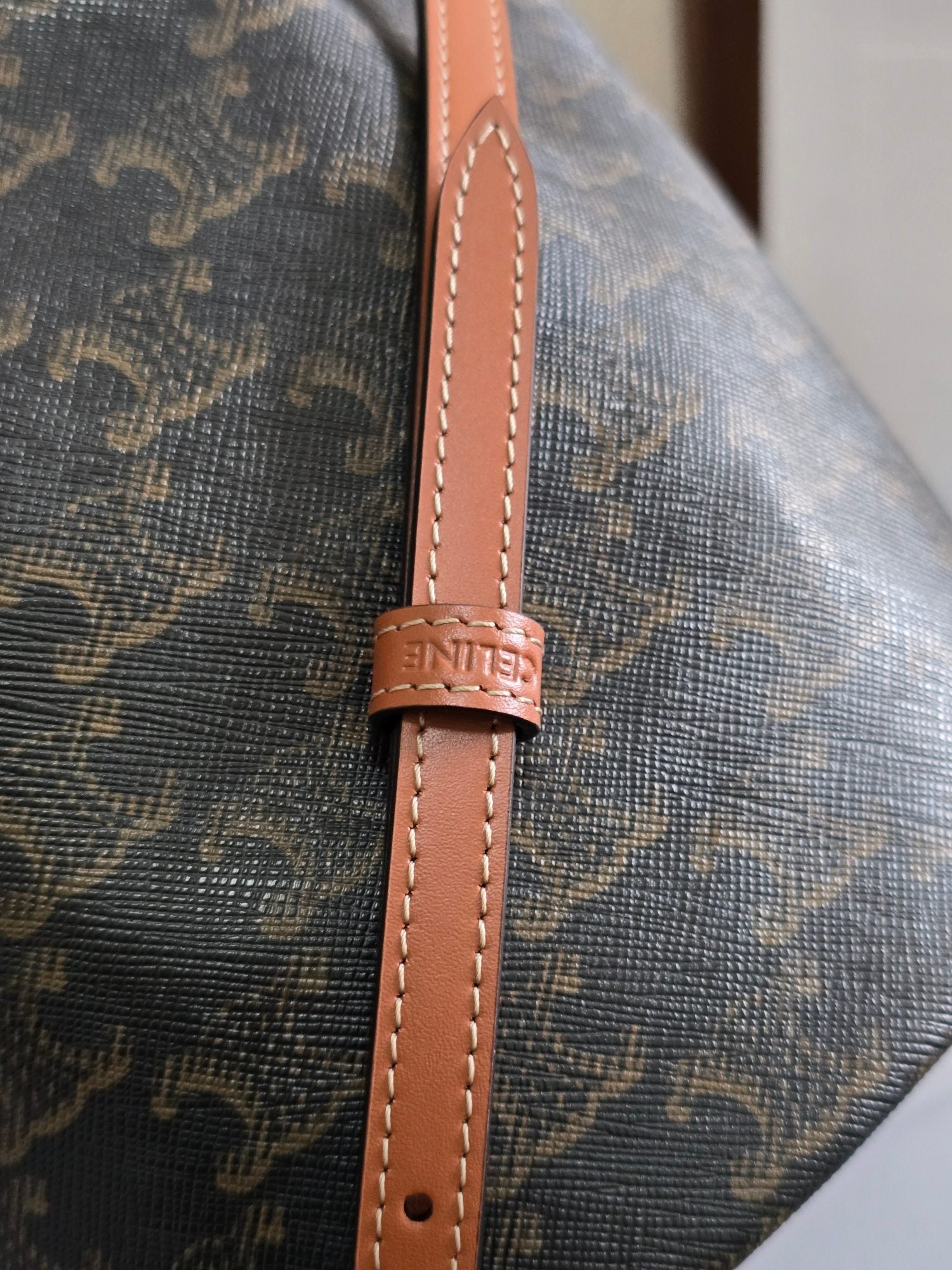 CLARA BAG 19 IN BLACK TRIOMPHE CANVAS AND BROWN CALFSKIN TRIM