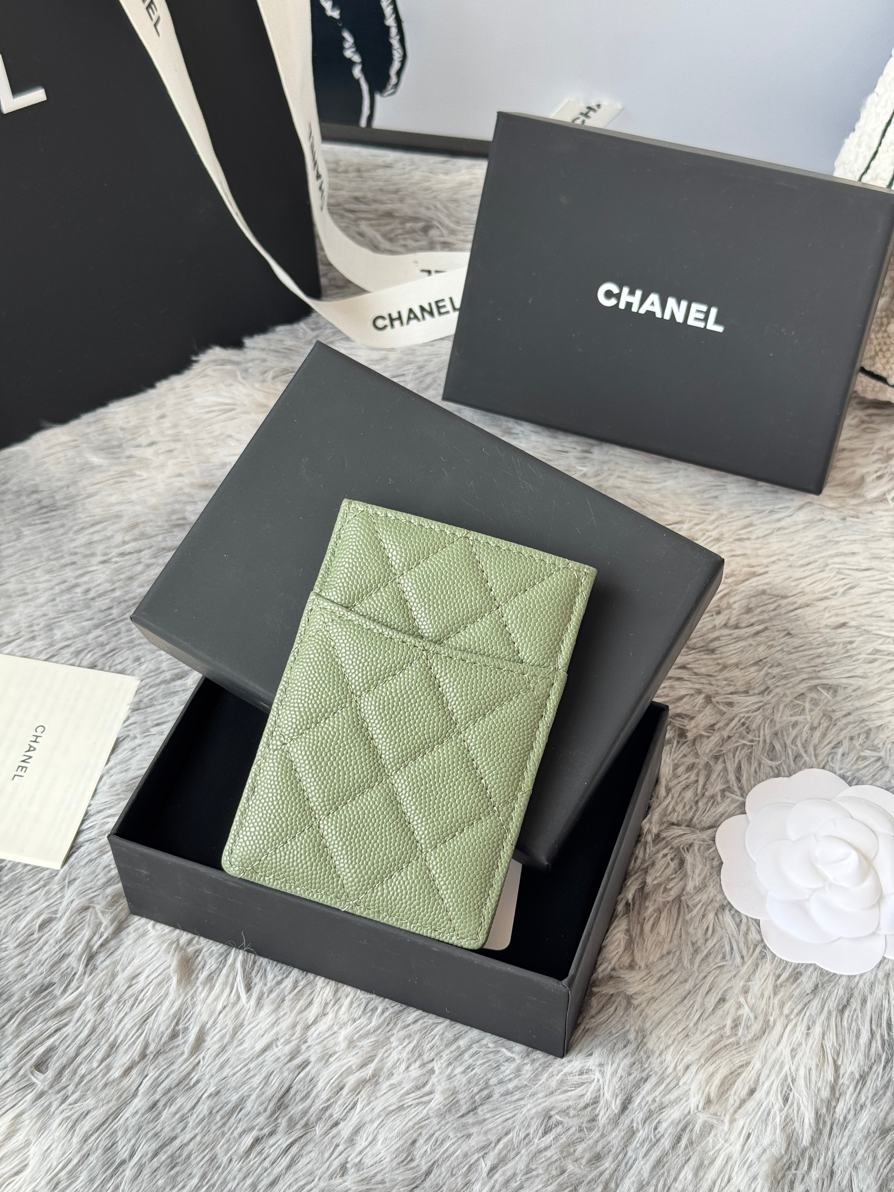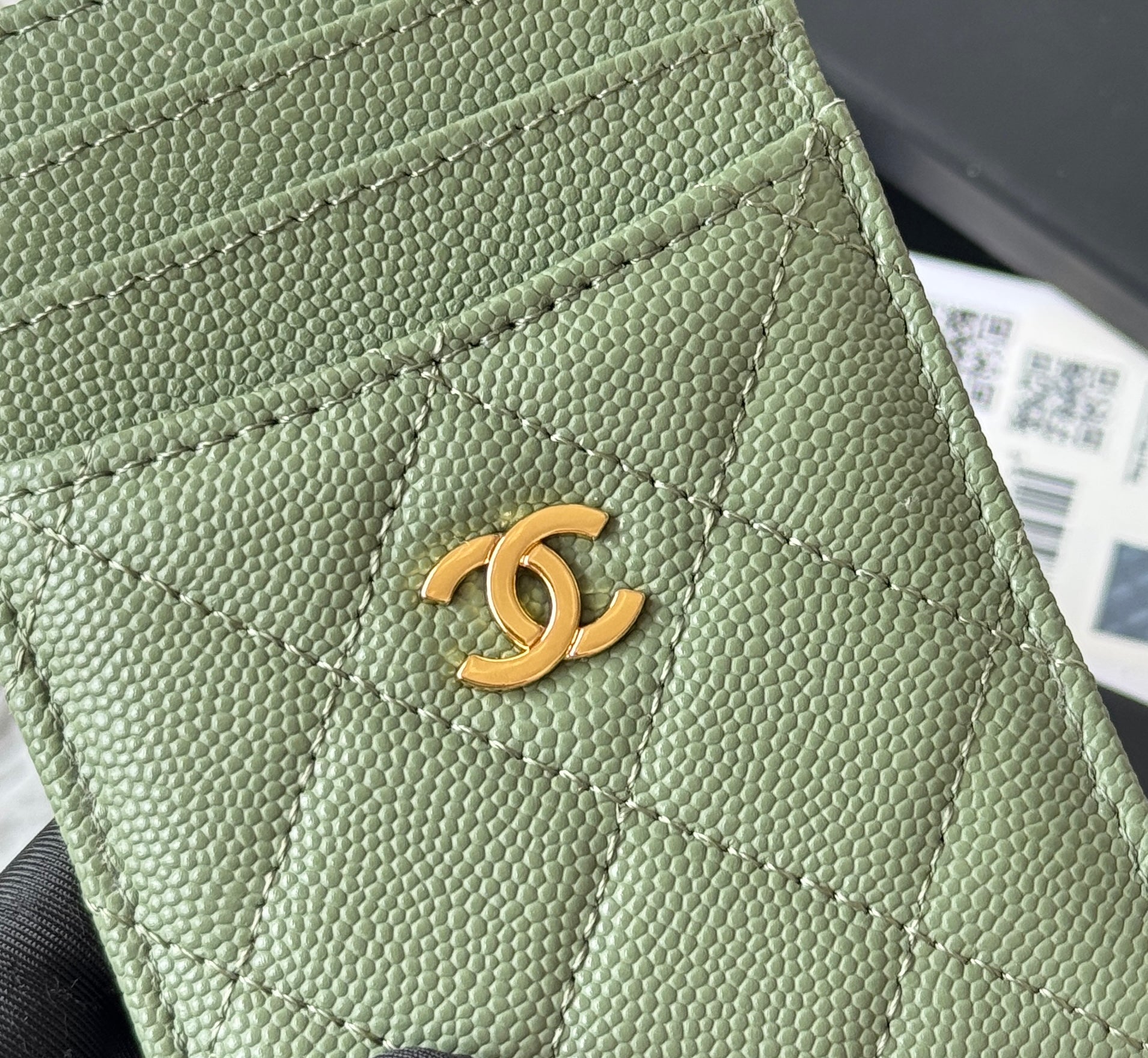 CLASSIC VERTICAL CARD HOLDER 14 IN RAINEE GREEN GRAINED CALFSKIN GOLD-TONE METALLIC