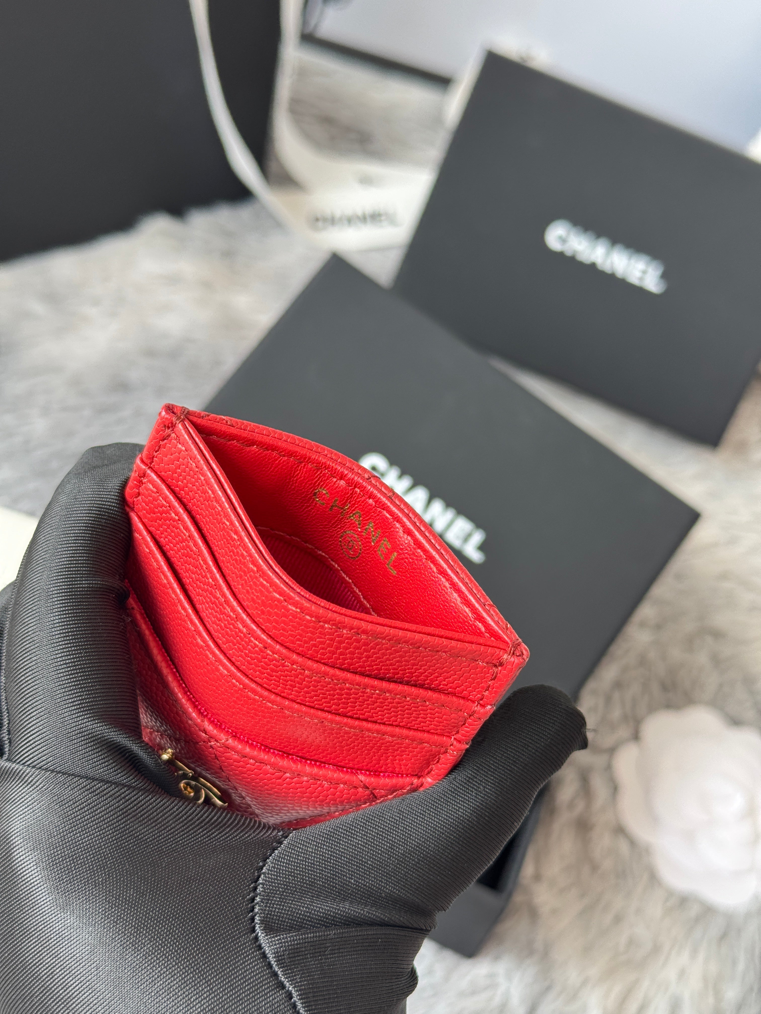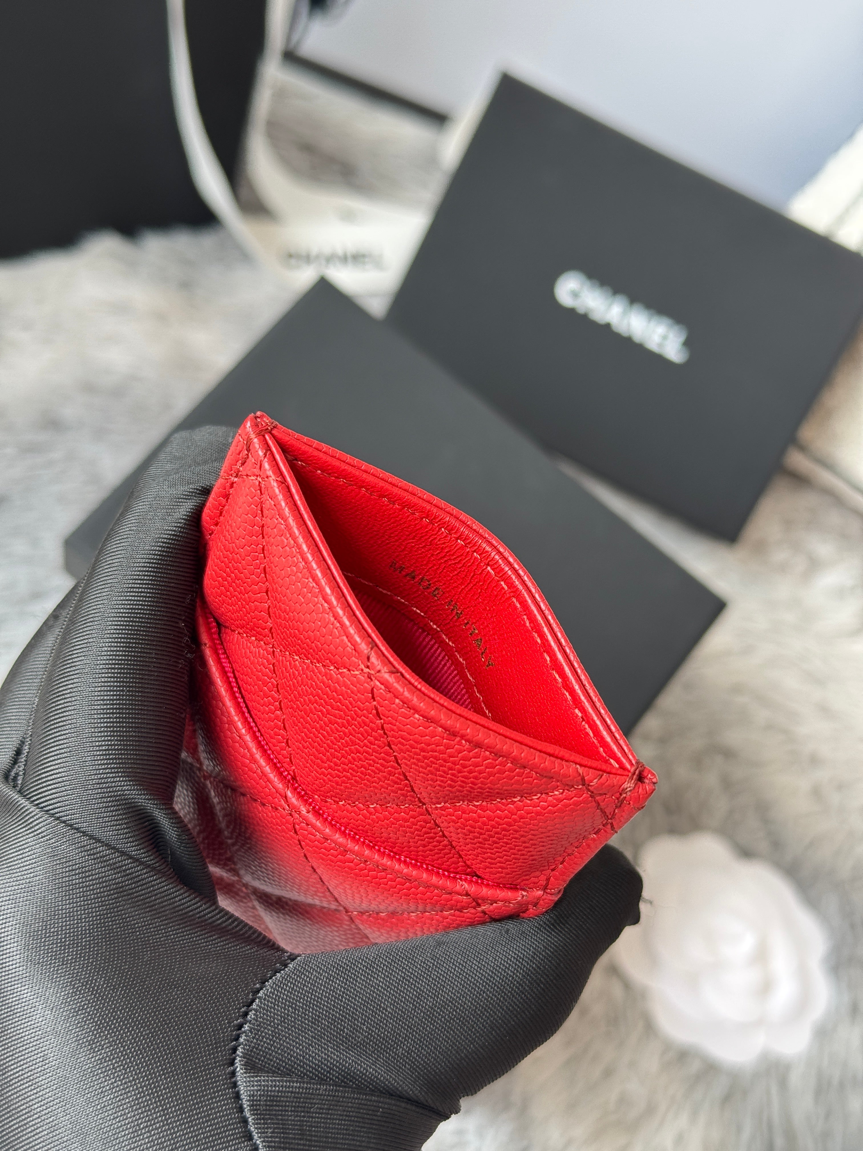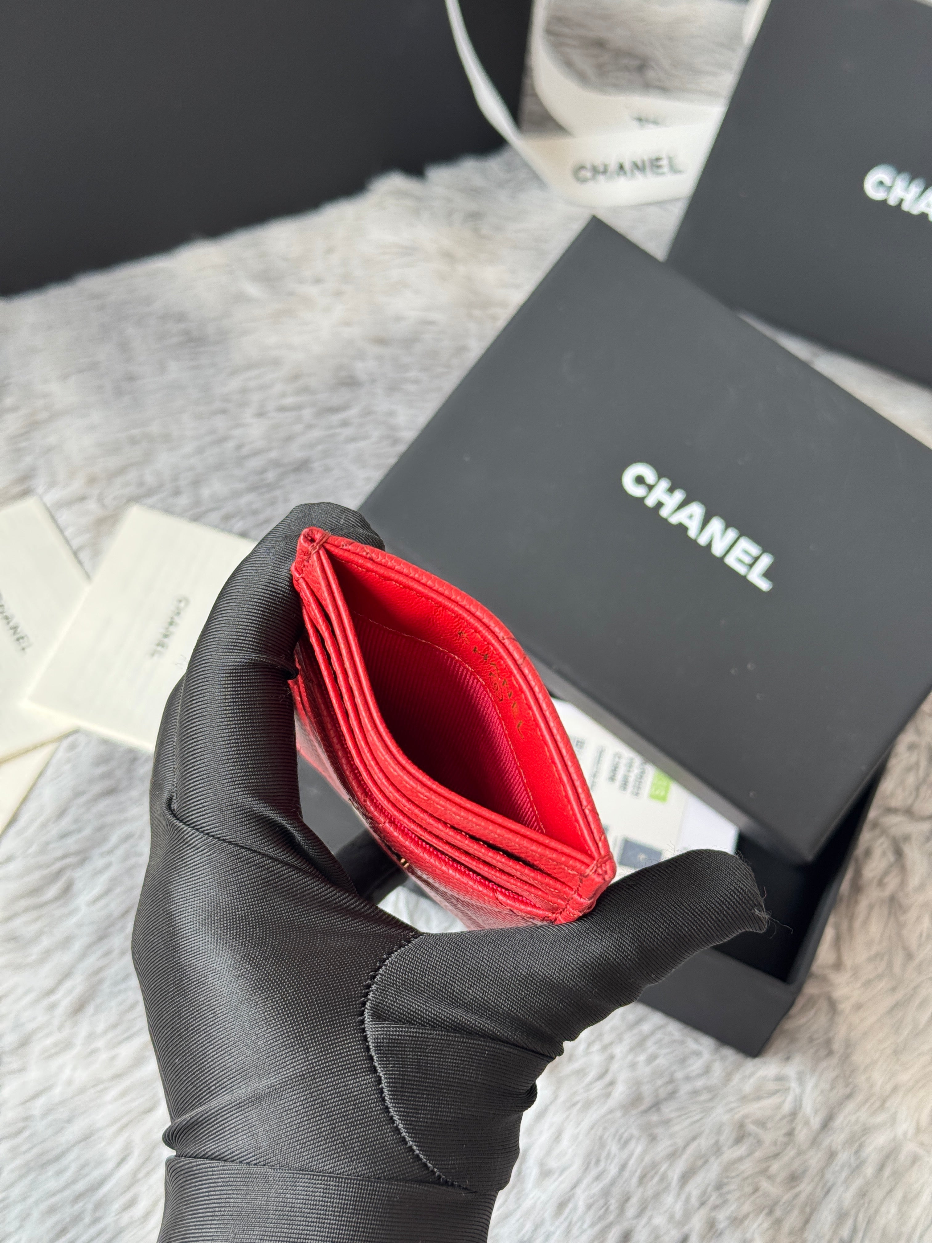 CLASSIC VERTICAL CARD HOLDER 14 IN RED GRAINED CALFSKIN GOLD-TONE METALLIC