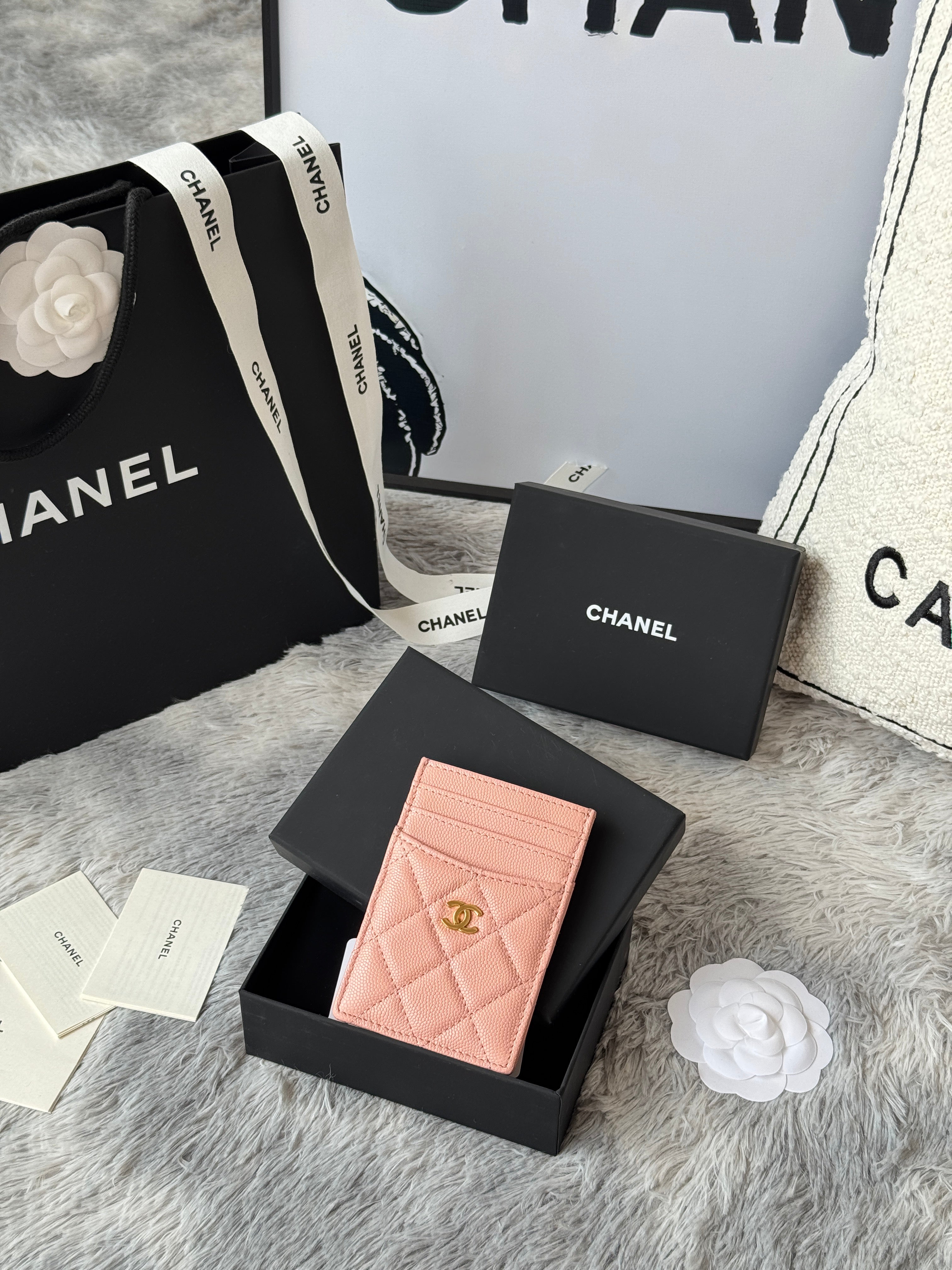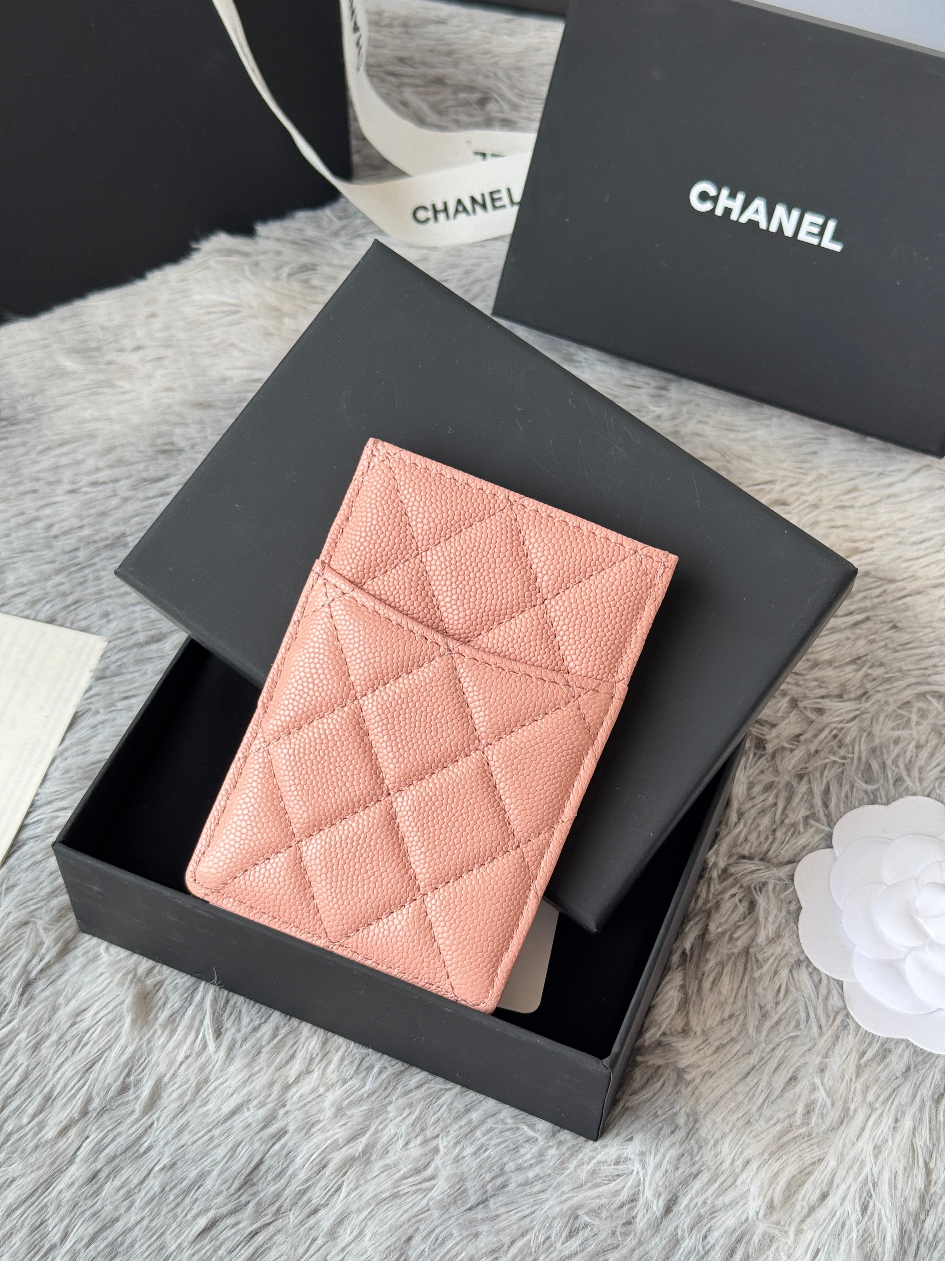 CLASSIC VERTICAL CARD HOLDER 14 IN TONYS PINK GRAINED CALFSKIN GOLD-TONE METALLIC