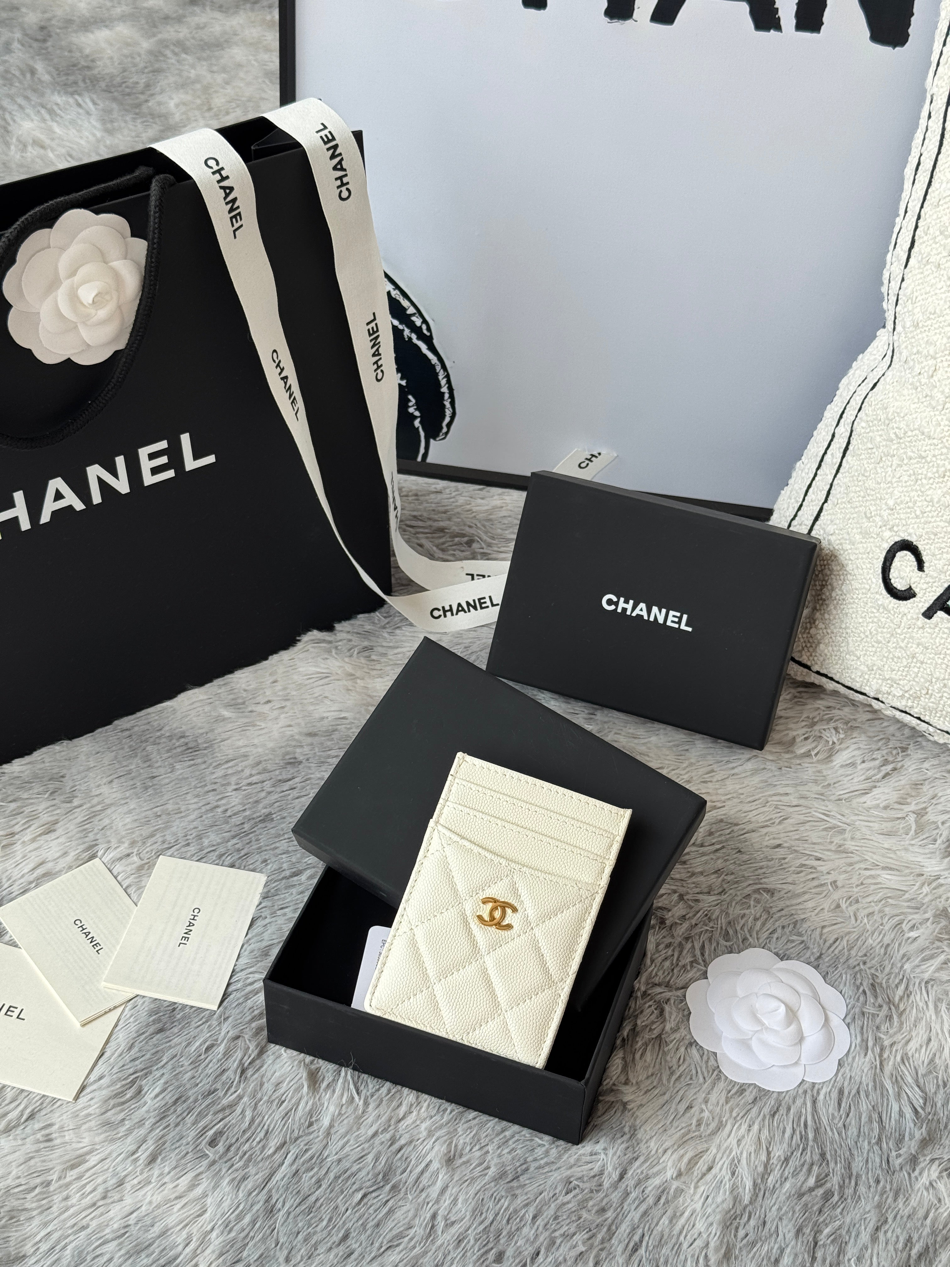 CLASSIC VERTICAL CARD HOLDER 14 IN WHITE GRAINED CALFSKIN GOLD-TONE METALLIC