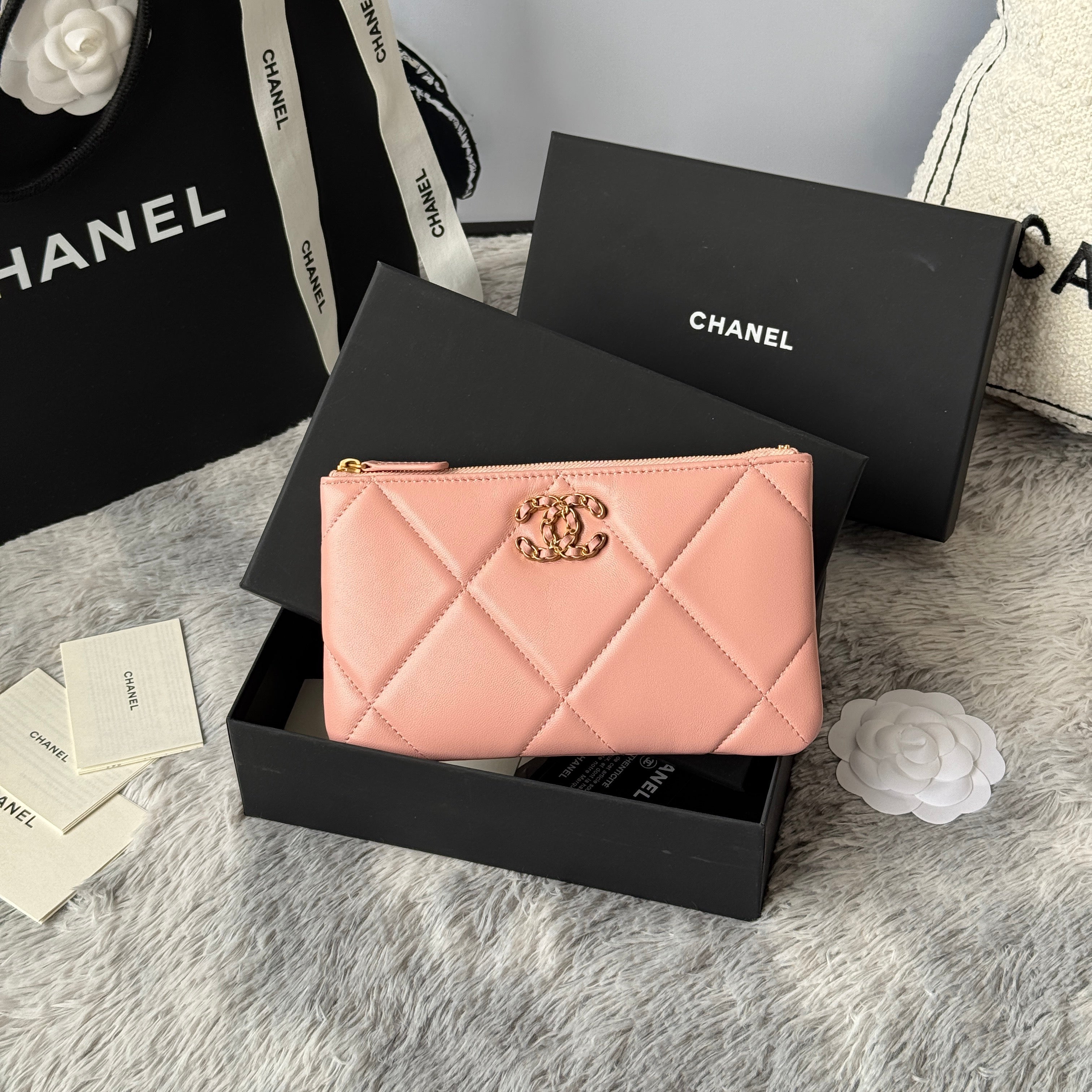 CLASSIC ZIPPER POUCH 20 IN TONYS PINK SMOOTH LAMBSKIN GOLD-TONE HARDWARE