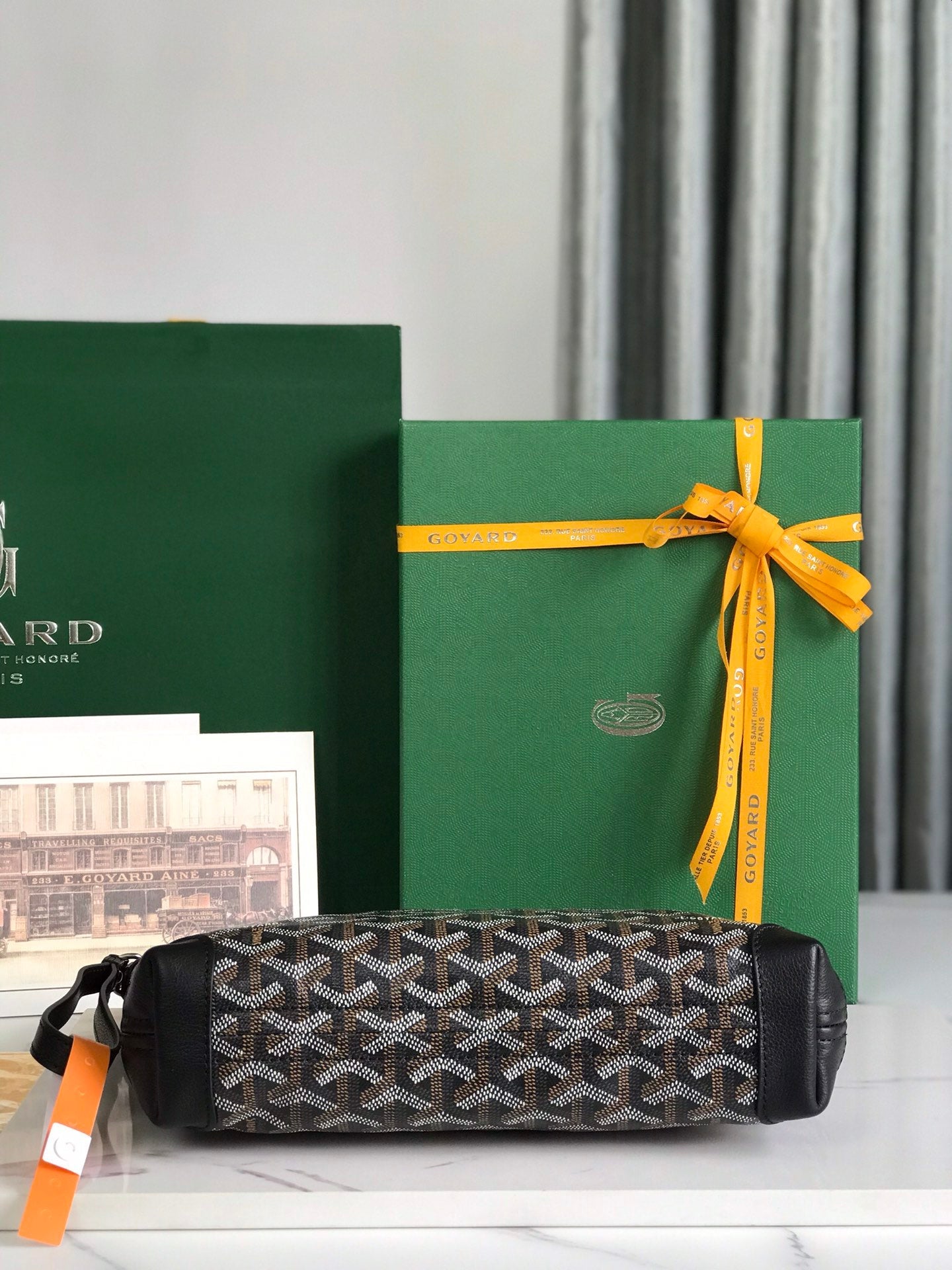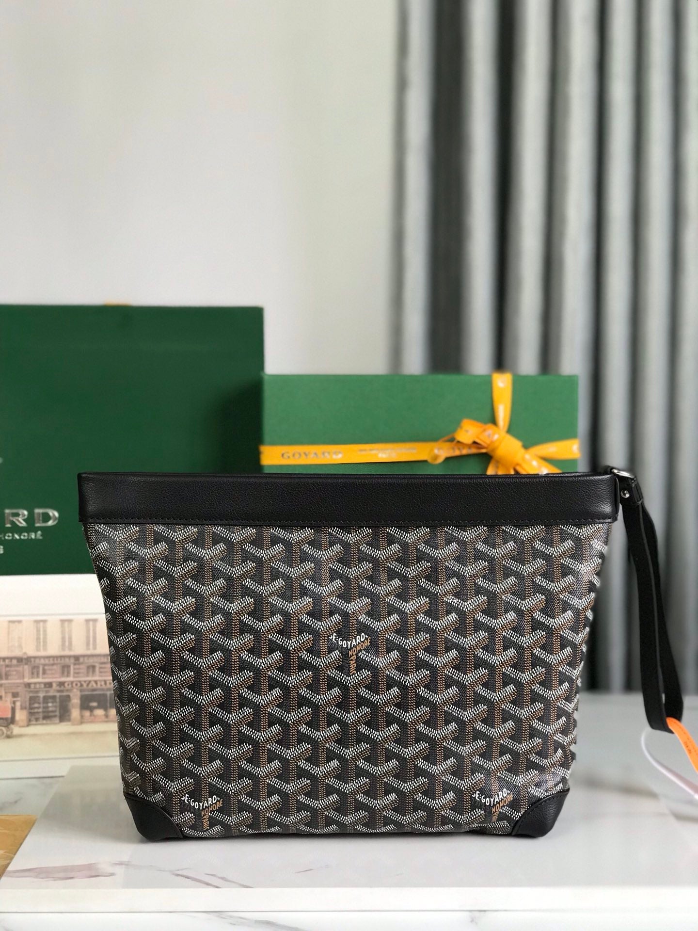 CONTI POUCH 24 IN BLACK LAMBSKIN AND GOYARDINE CANVAS