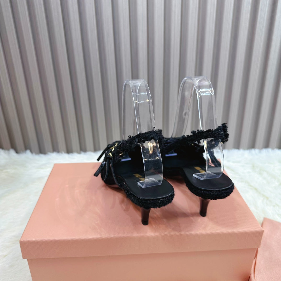 CROSS STRAP HIGH HEELED SLINGBACK IN BLACK TWEED