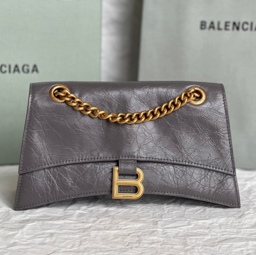 CRUSH SMALL CHAIN BAG 25 IN SUVA GRAY CRUSHED CALFSKIN GOLD HARDWARE