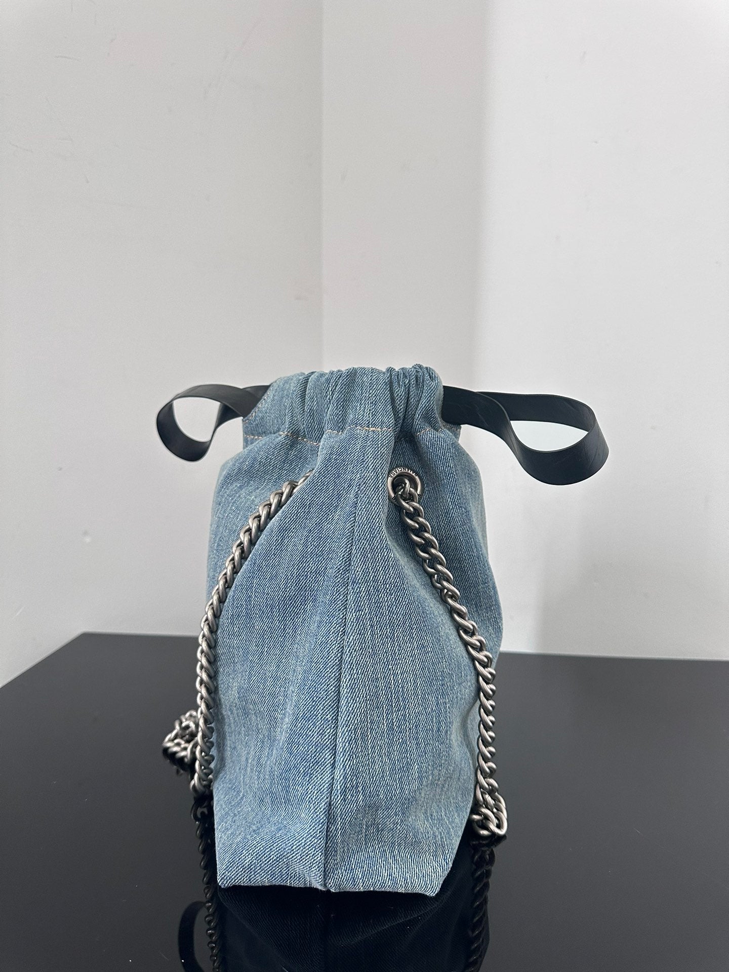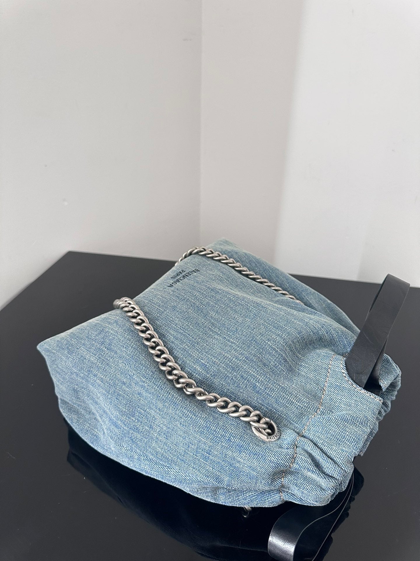 CRUSH SMALL TOTE BAG 26 IN BLUE WASHED DENIM SILVER HARDWARE