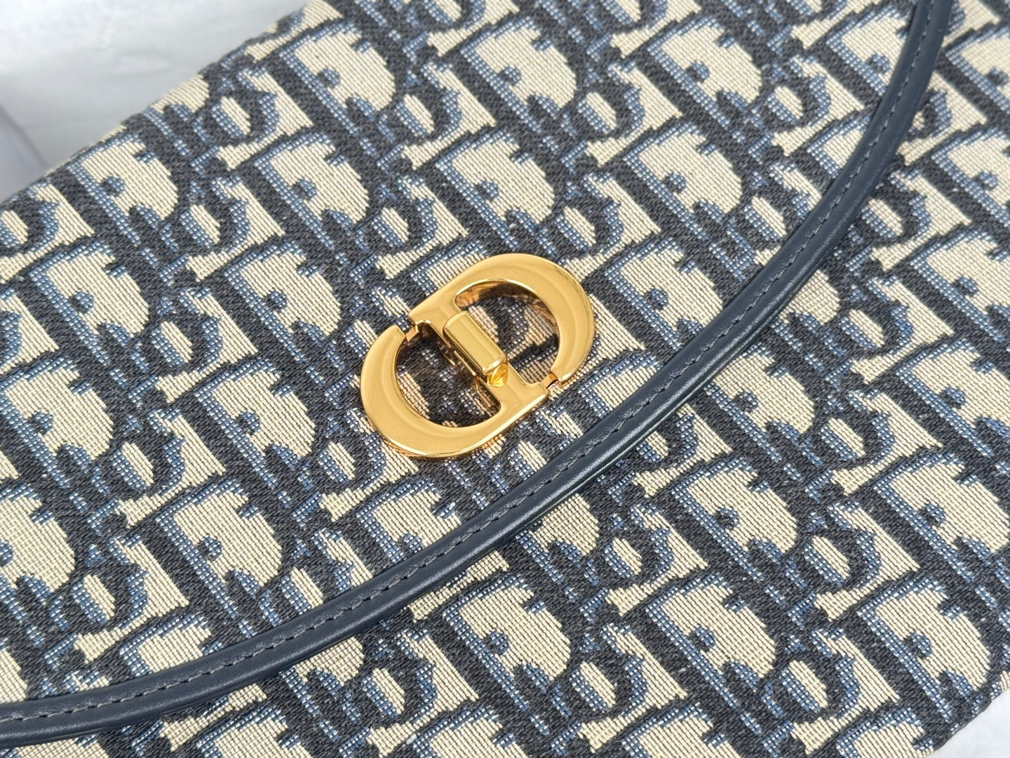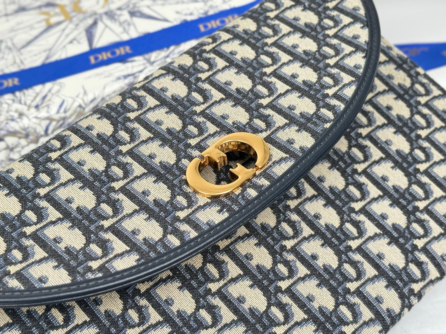DIOR 25S 30 MONTAIGNE AVENUE POUCH WITH FLAP 30 IN BLUE DIOR OBLIQUE JACQUARD