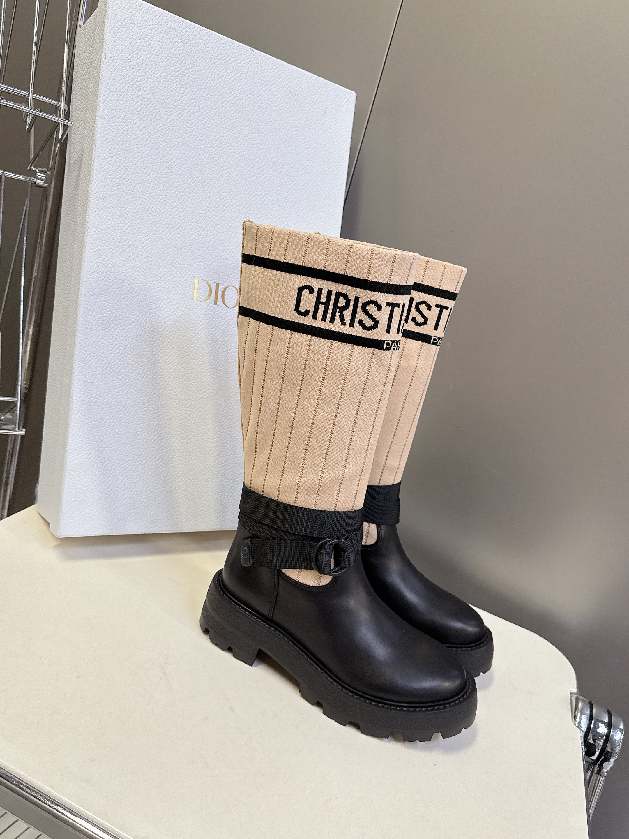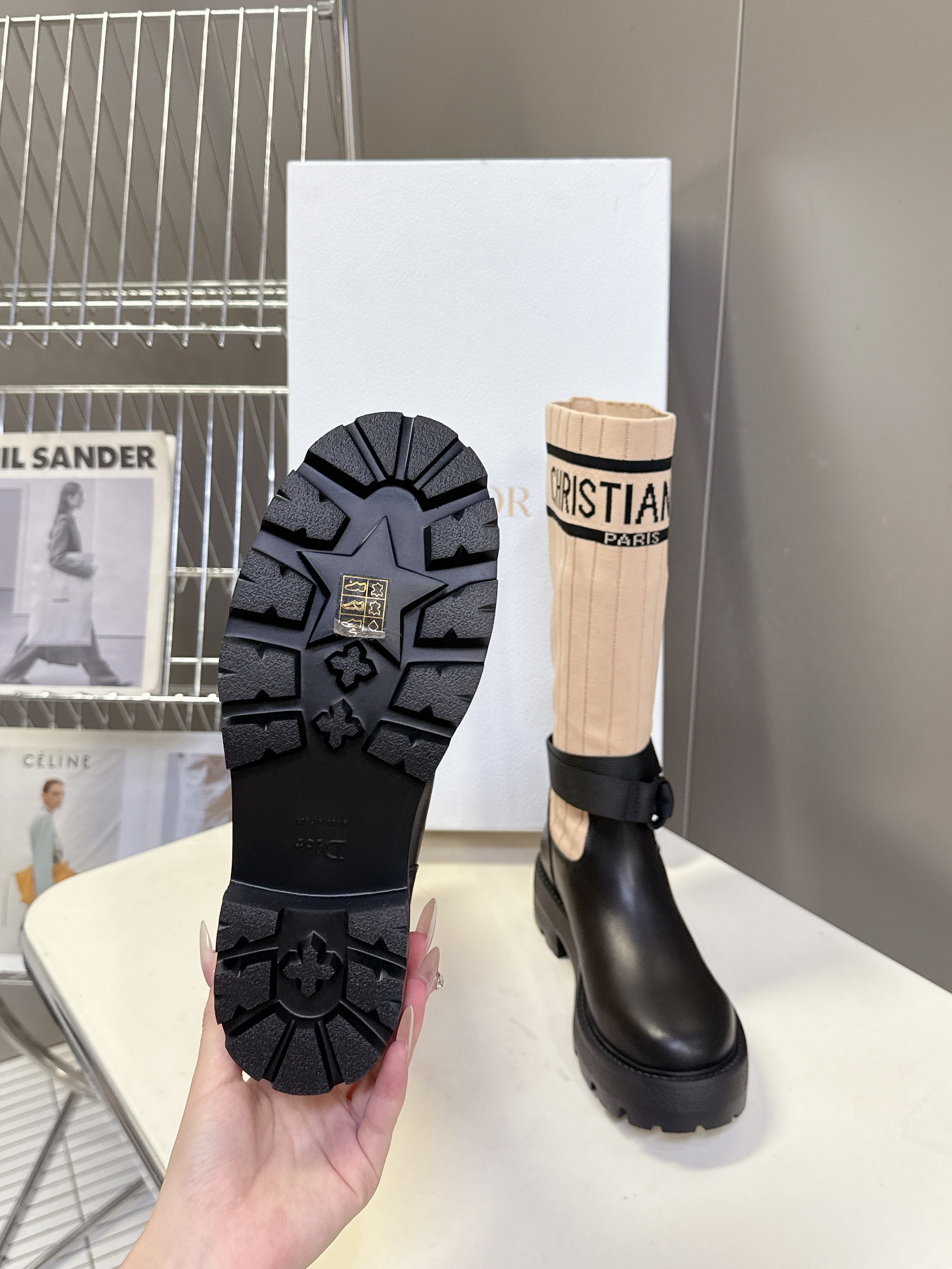 DIOR 25S D-MAJOR ANKLE BOOTS IN BLACK CALFSKIN AND LIGHT BEIGE FABRIC