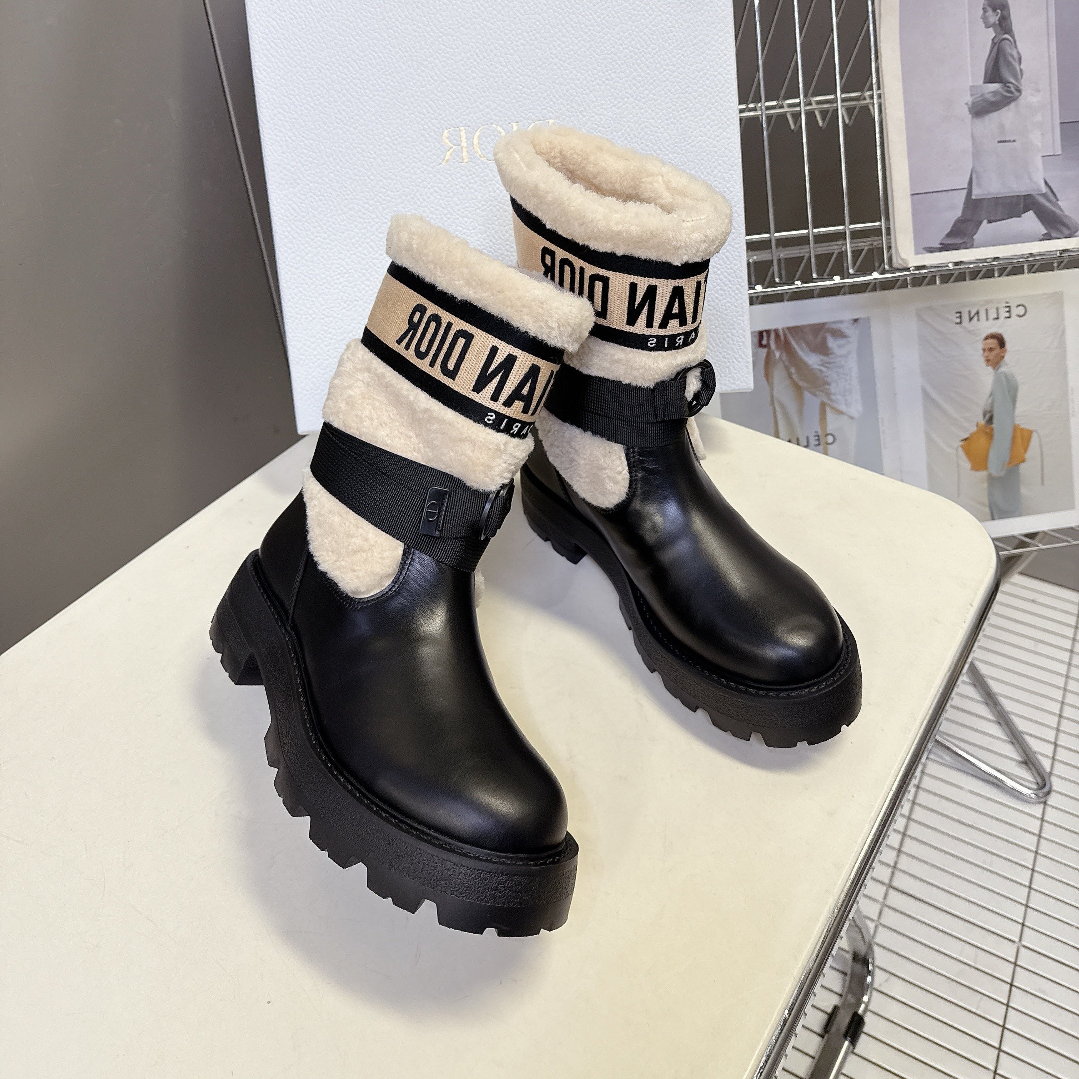 DIOR 25S D-MAJOR ANKLE BOOTS IN BLACK LAMBSKIN AND CREAM WHITE WOOL