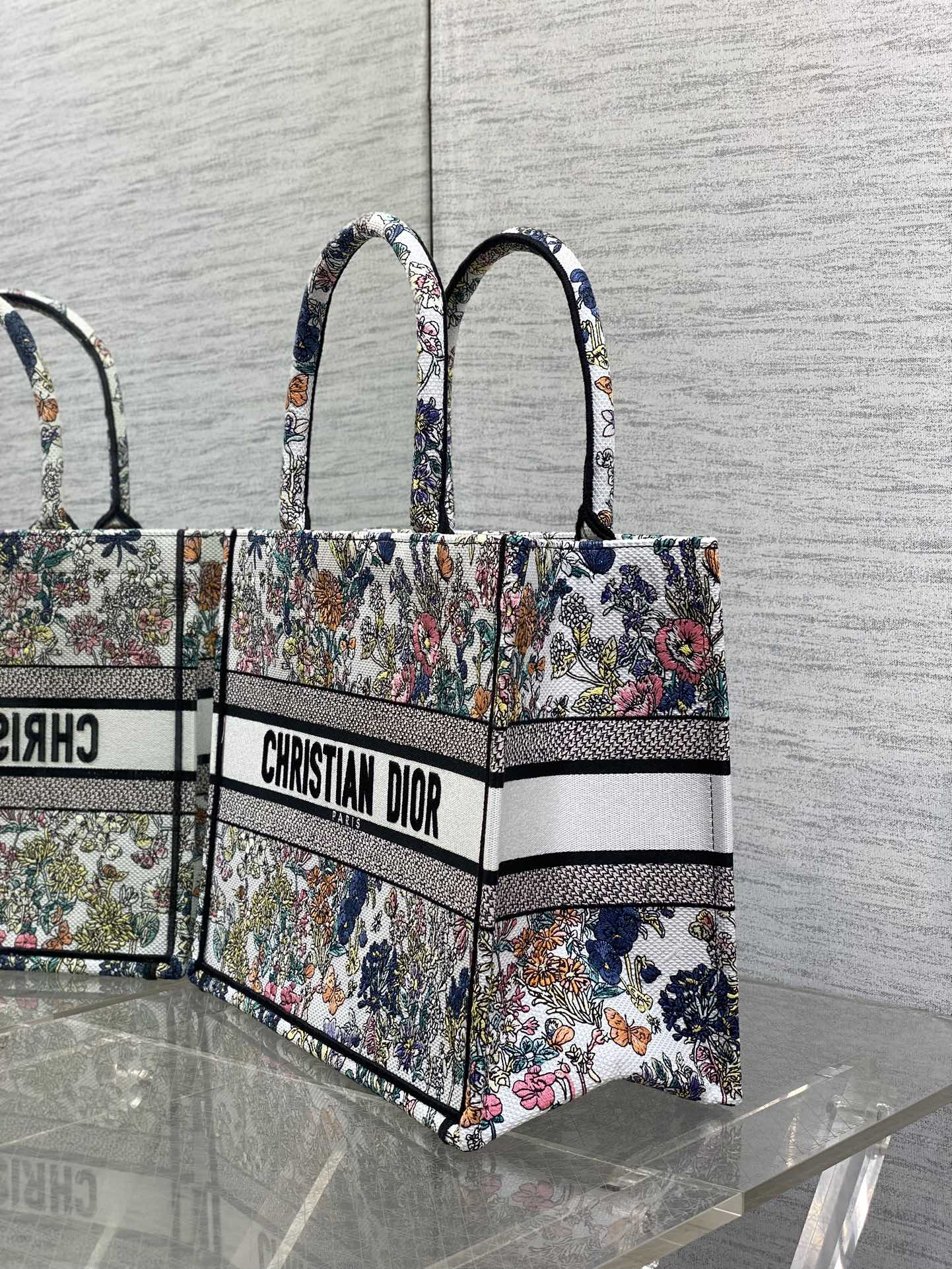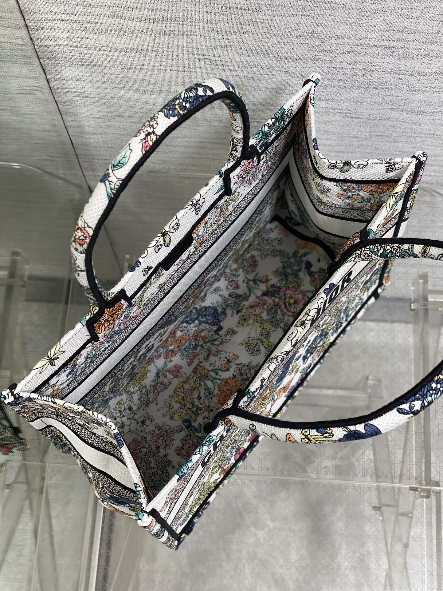 DIOR 25S LUCKY MEDIUM BOOK TOTE 36 IN MULTICOLOR COTTON FLOWERS CALENDAR ALLOVER EMBROIDERY
