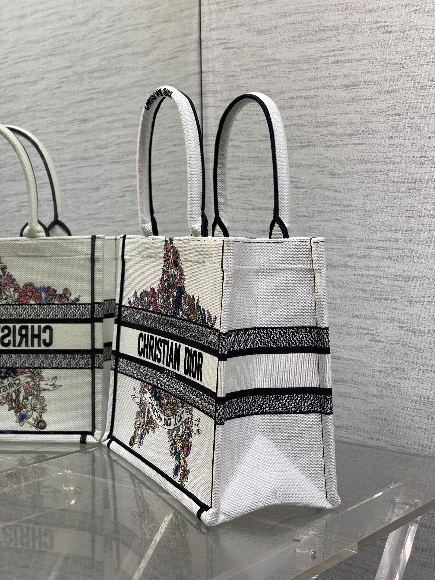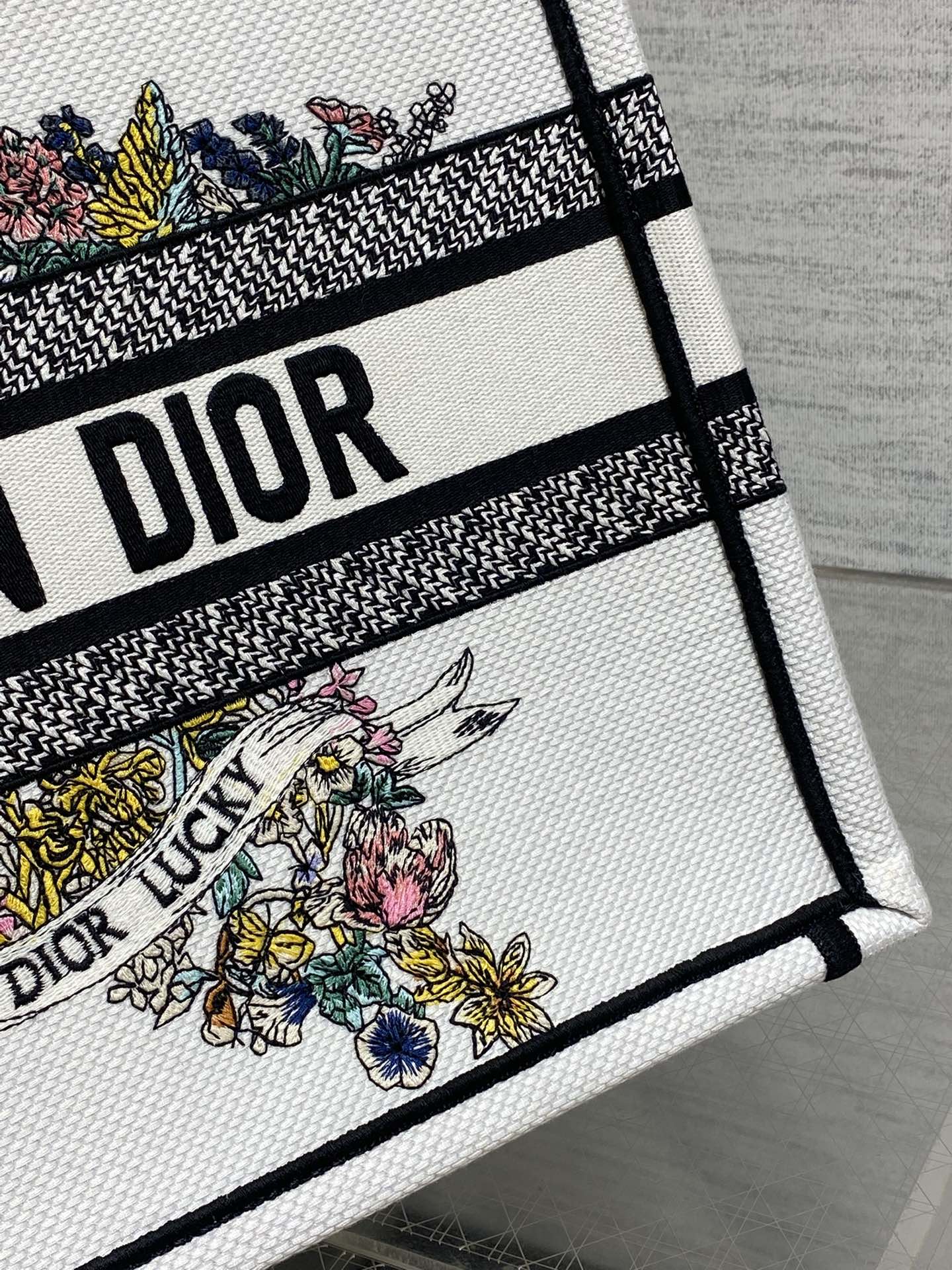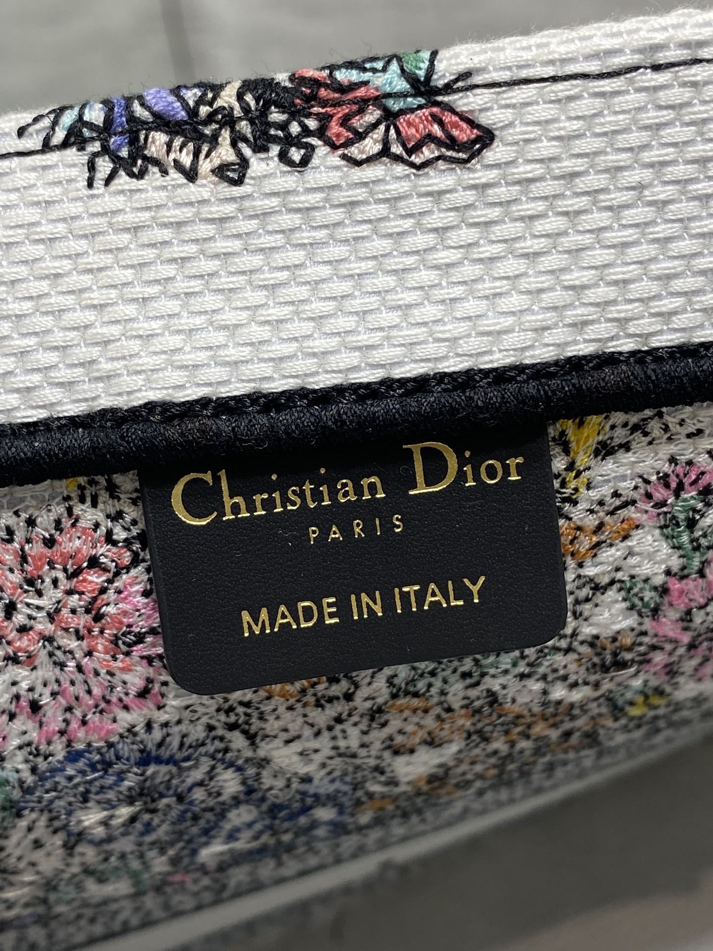 DIOR 25S LUCKY MEDIUM DIOR BOOK TOTE 36 IN WHITE MULTICOLOR DIOR STAR EMBROIDERY