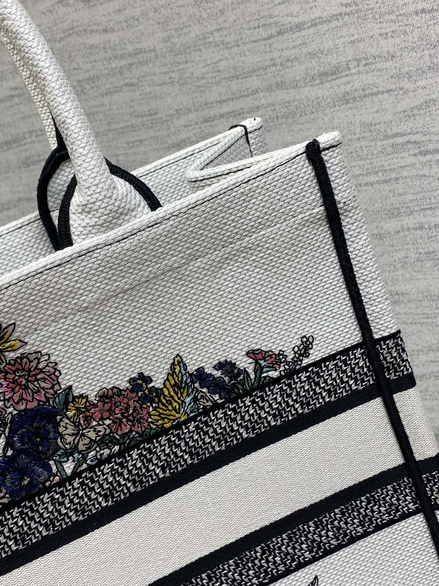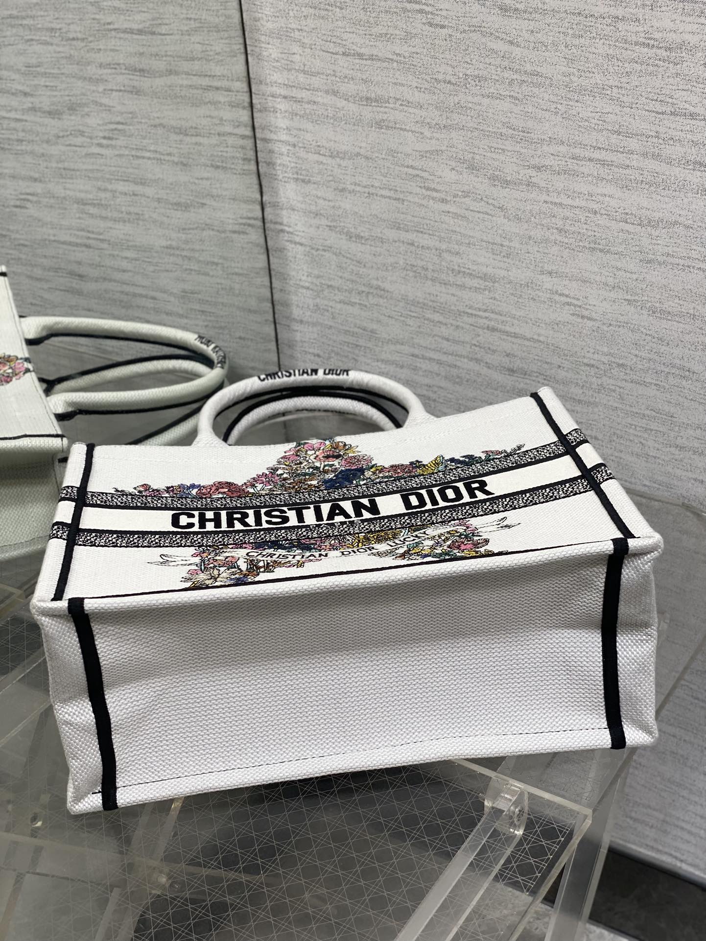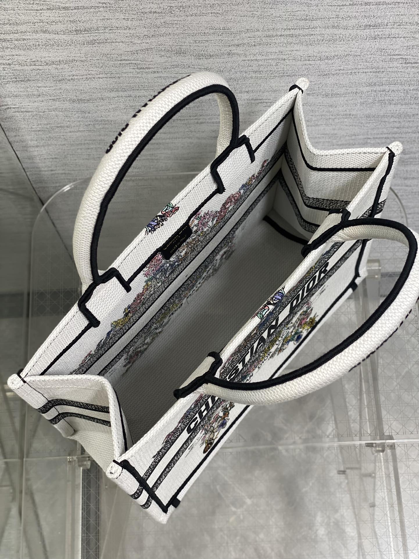 DIOR 25S LUCKY MEDIUM DIOR BOOK TOTE 36 IN WHITE MULTICOLOR DIOR STAR EMBROIDERY