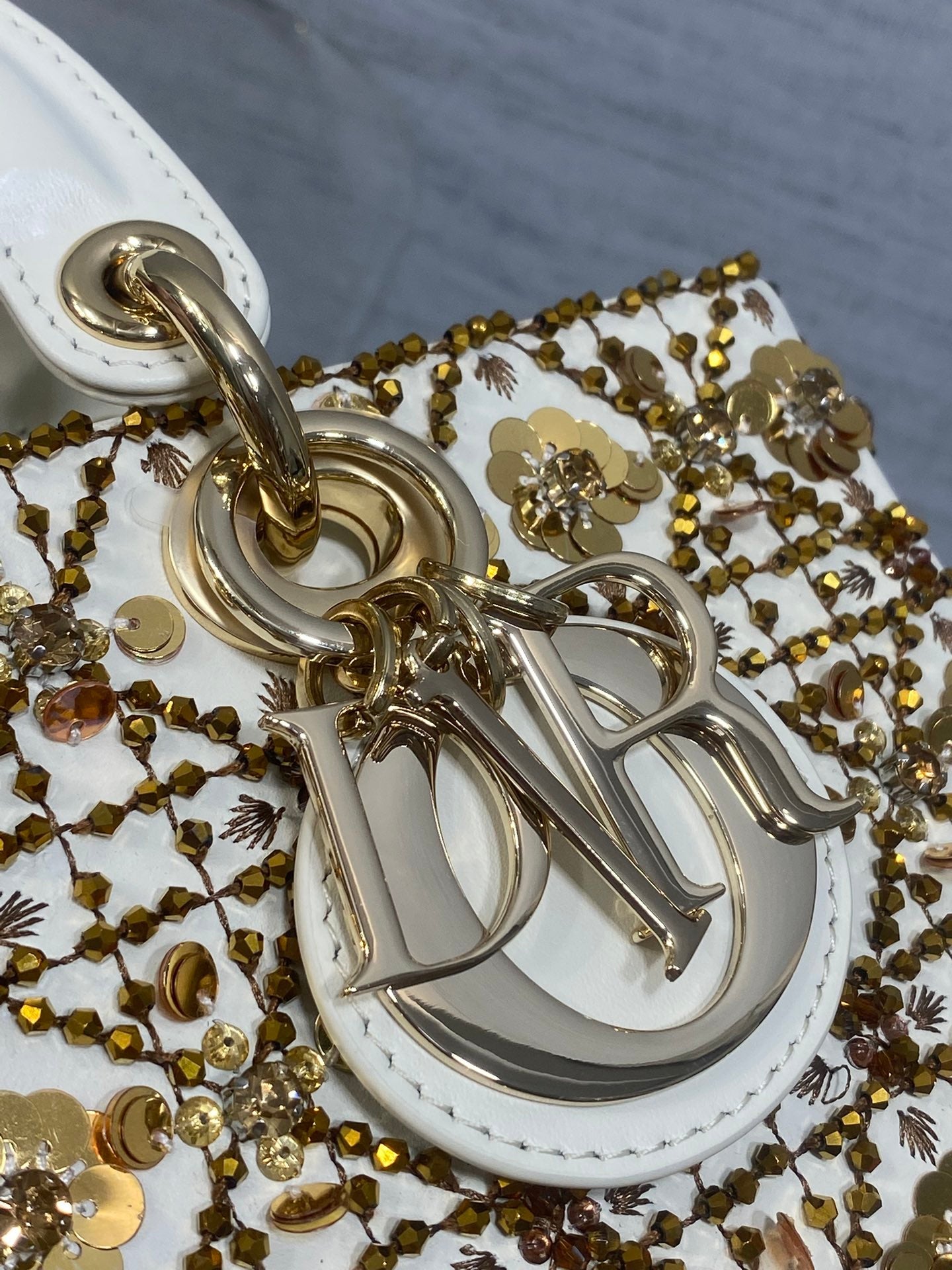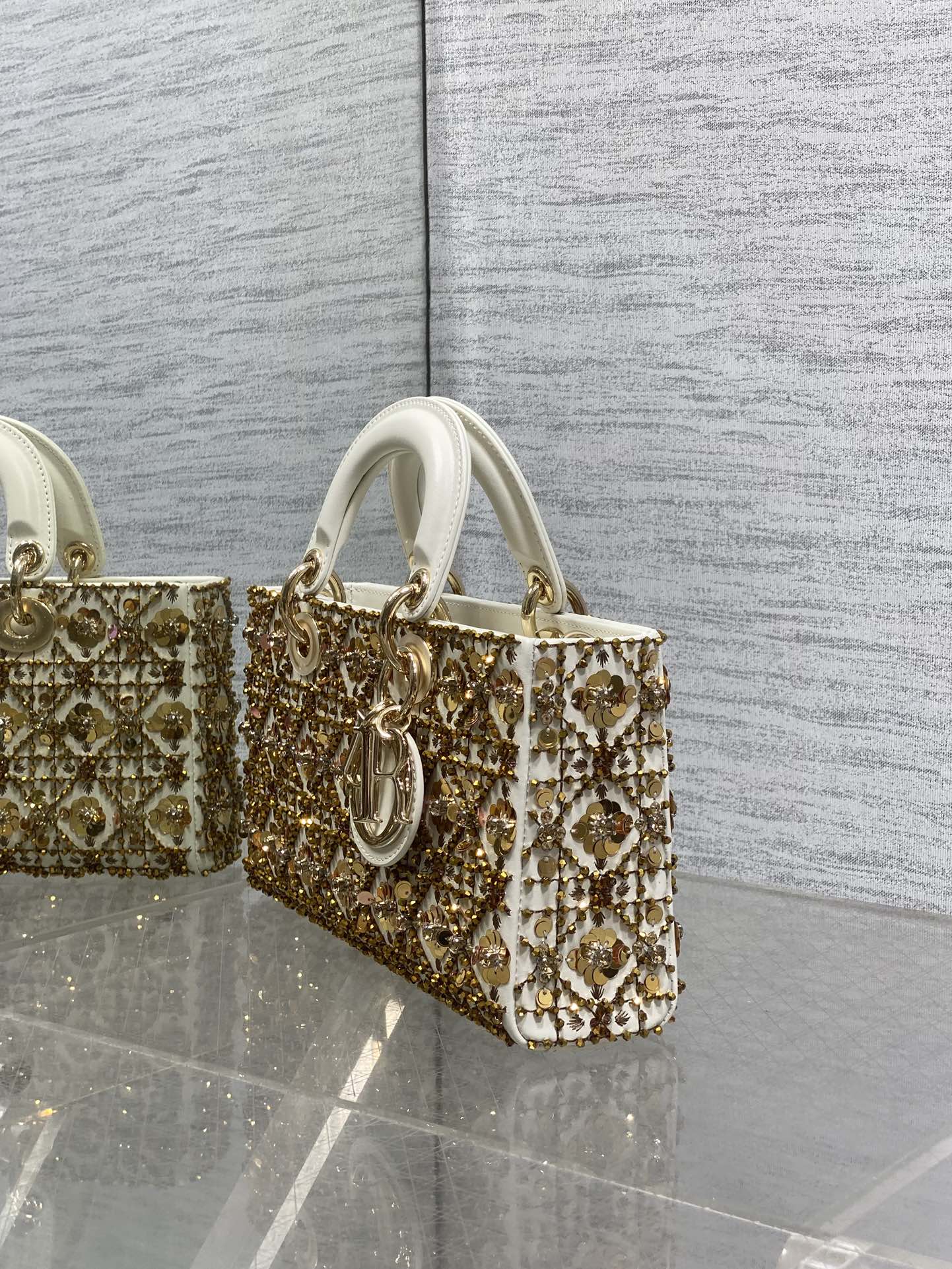 DIOR 25S SMALL LADY - JOY BAG 26 IN LATTE CANNAGE CALFSKIN WITH SPARKLING