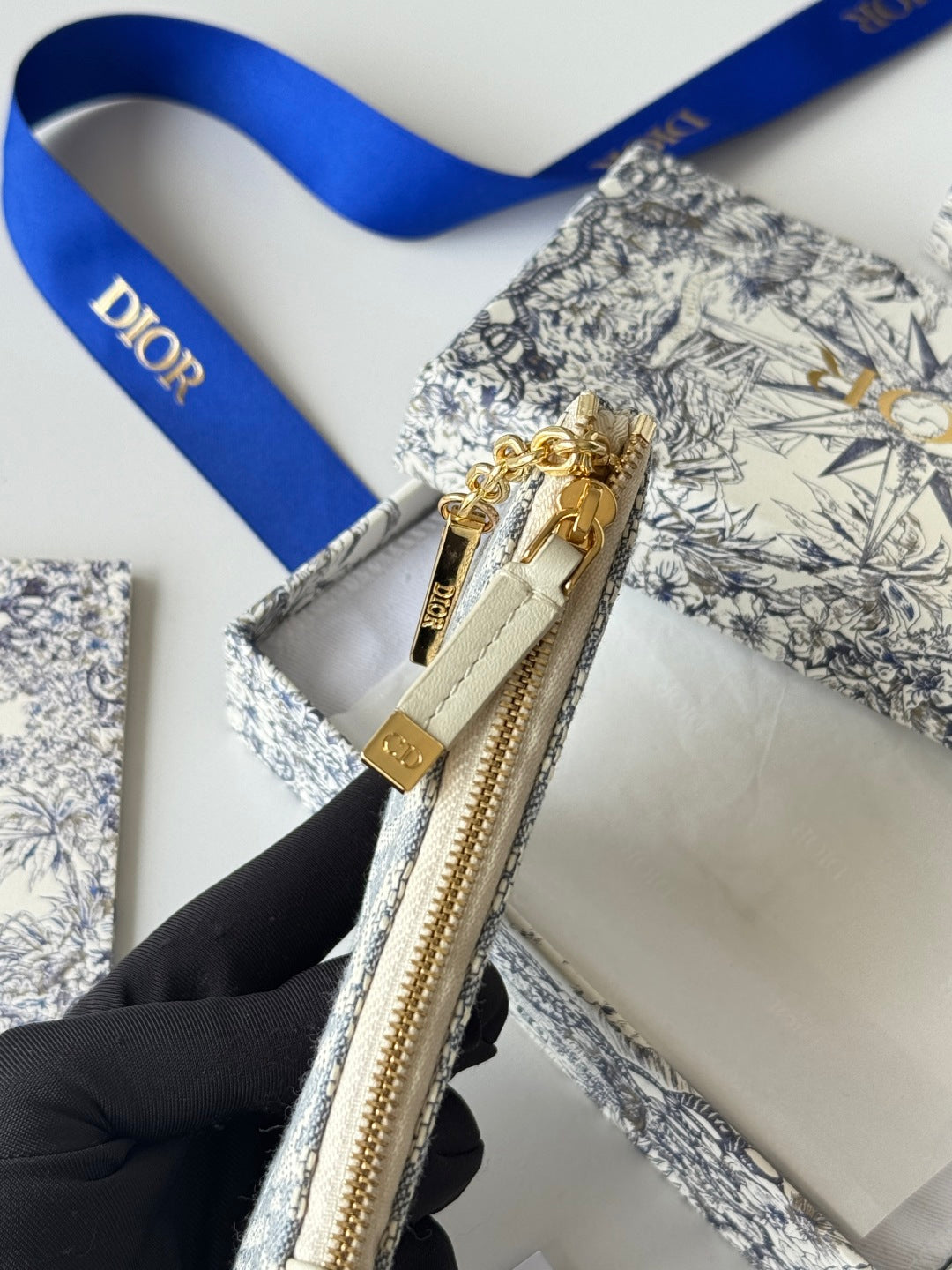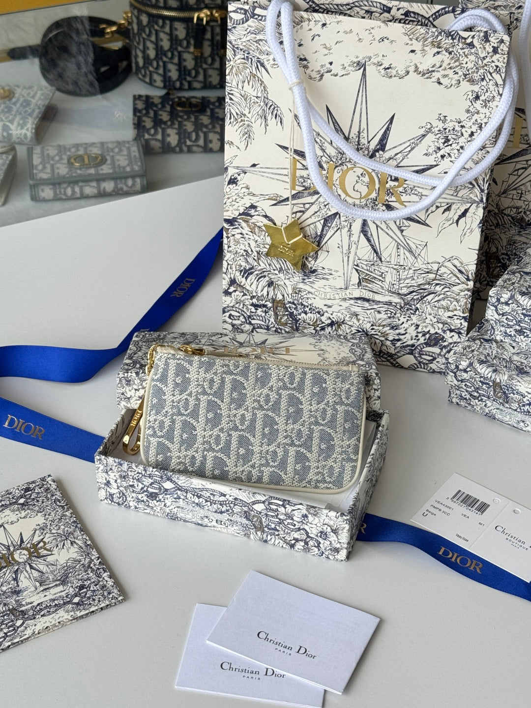 DIOR 25S TRAVEL MYRTE ZIPPED KEY CASE 14 IN BLUE DIOR OBLIQUE JACQUARD CANVAS