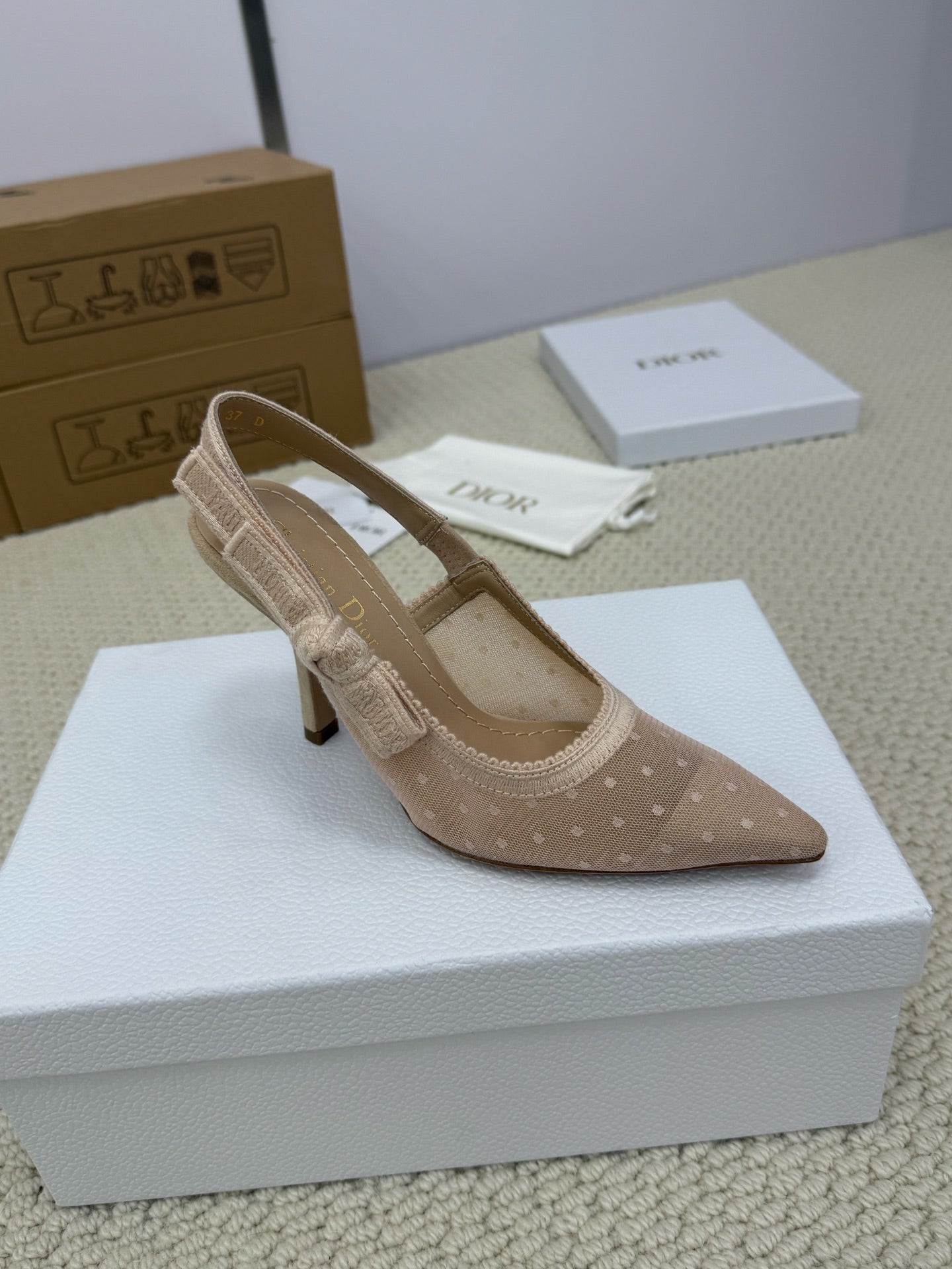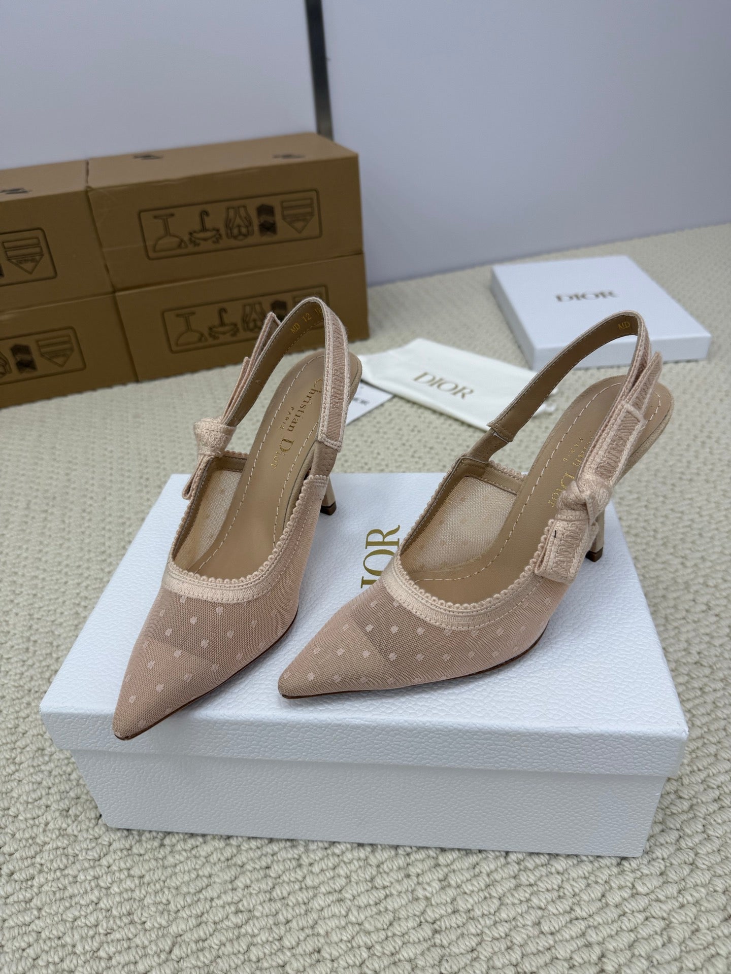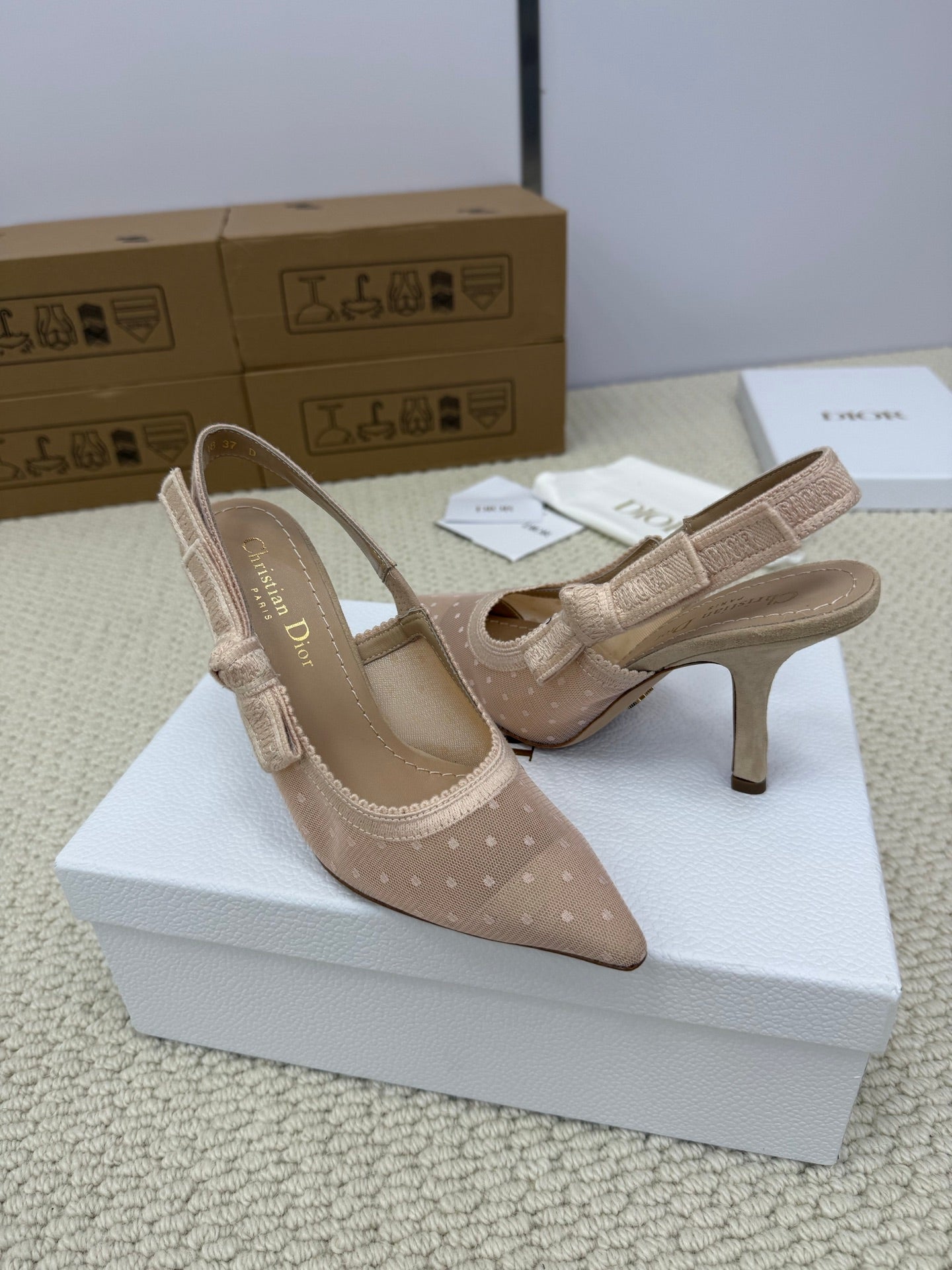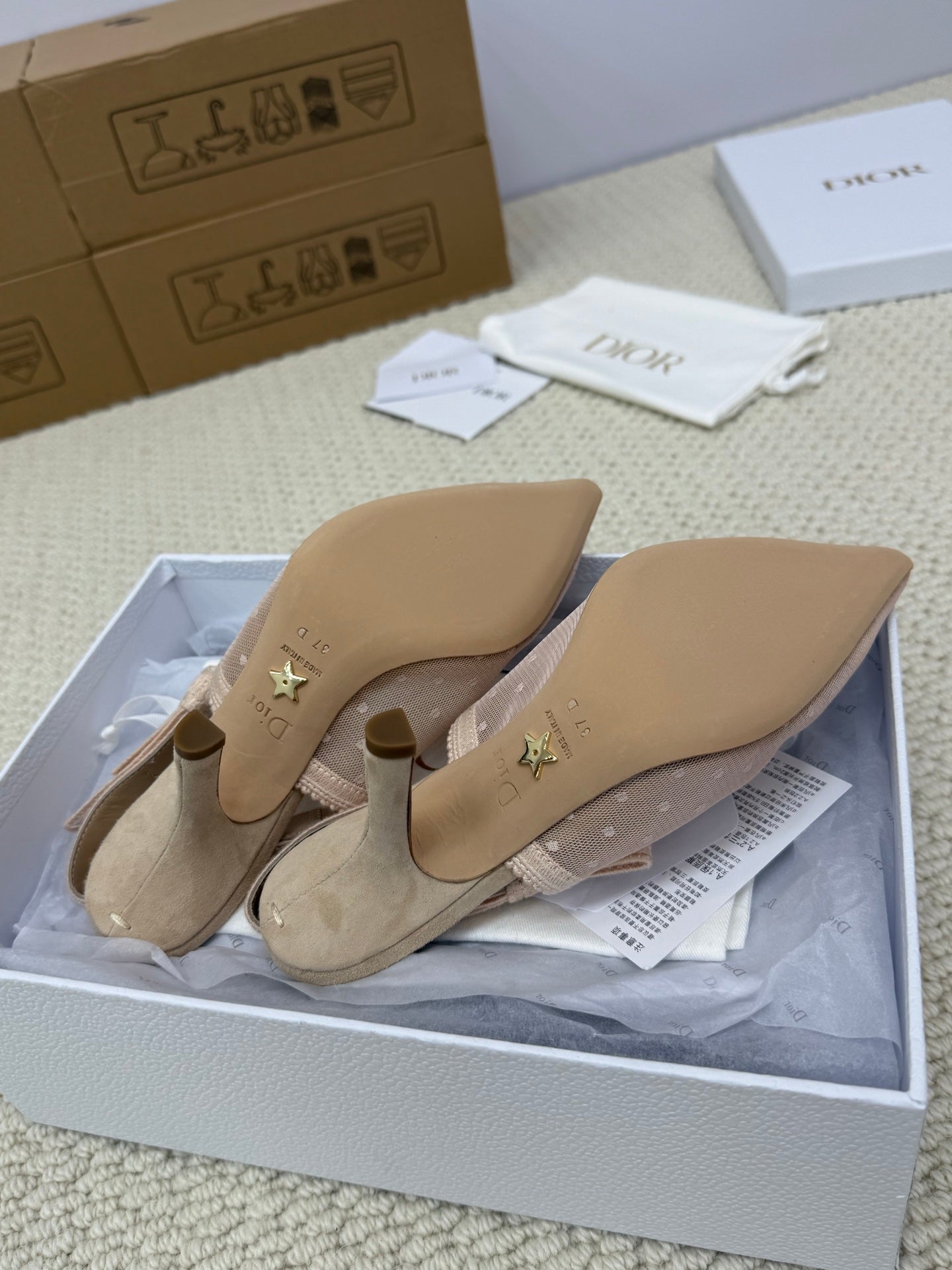 DIOR HIGH SLINGBACK 100 MM 25S IN NUDE LACE NET FABRIC AND SUEDE