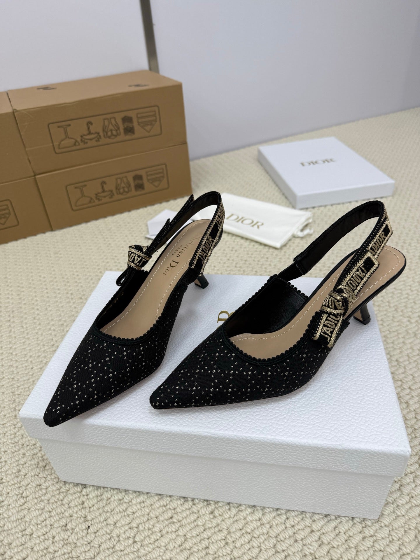 DIOR HIGH SLINGBACK 65 MM 25S IN BLACK FABRIC AND BRAND NAME EMBROIDERY