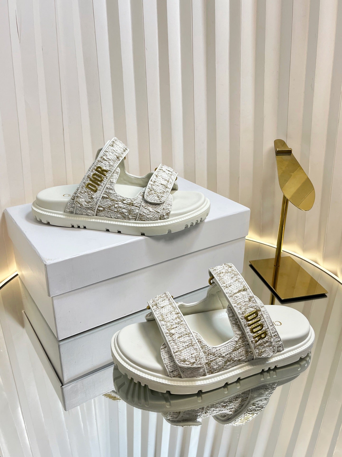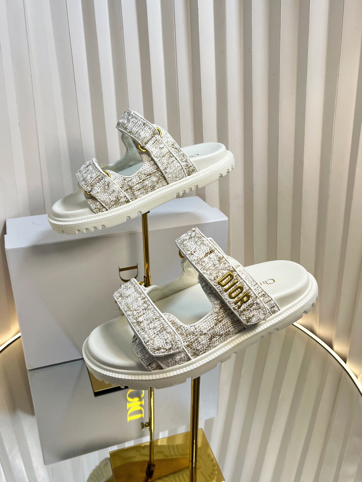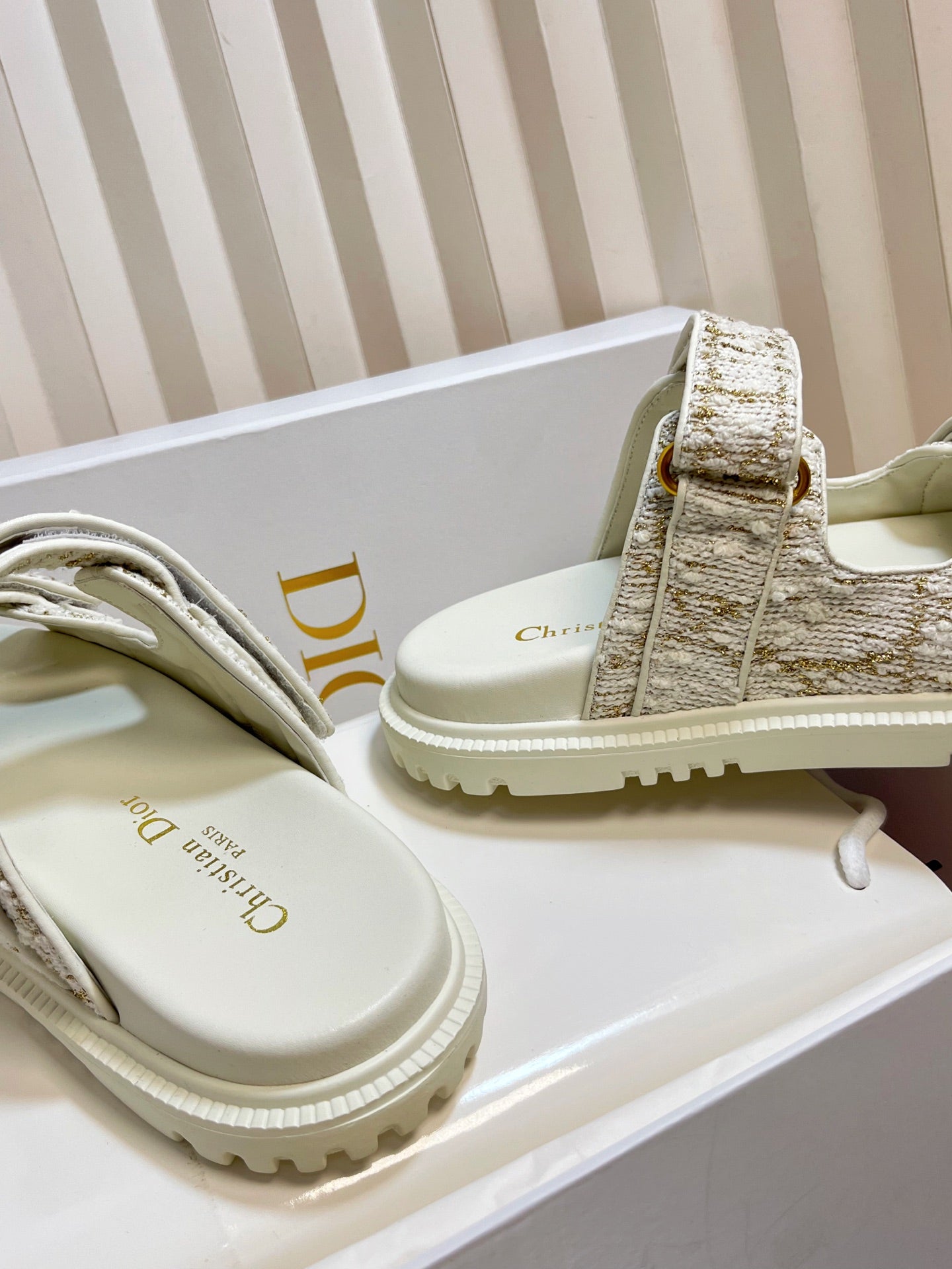 DIORACT SLIDES 25MM IN WHITE AND GOLD TWEED