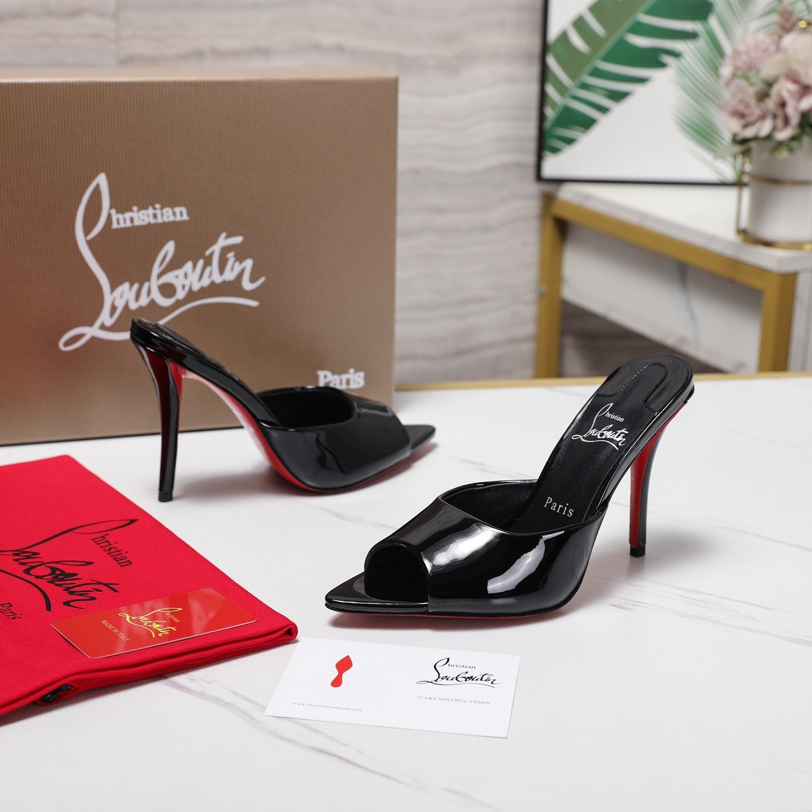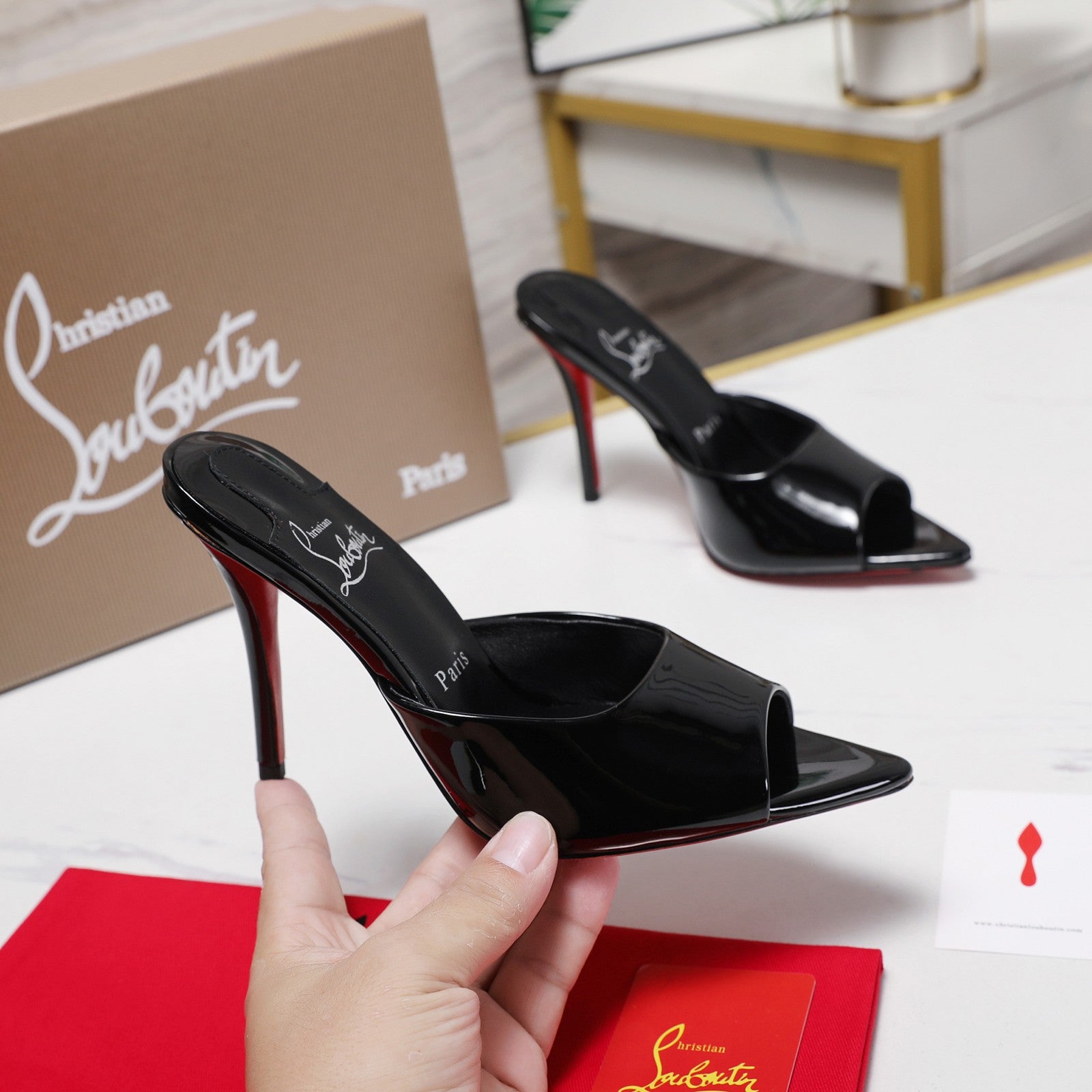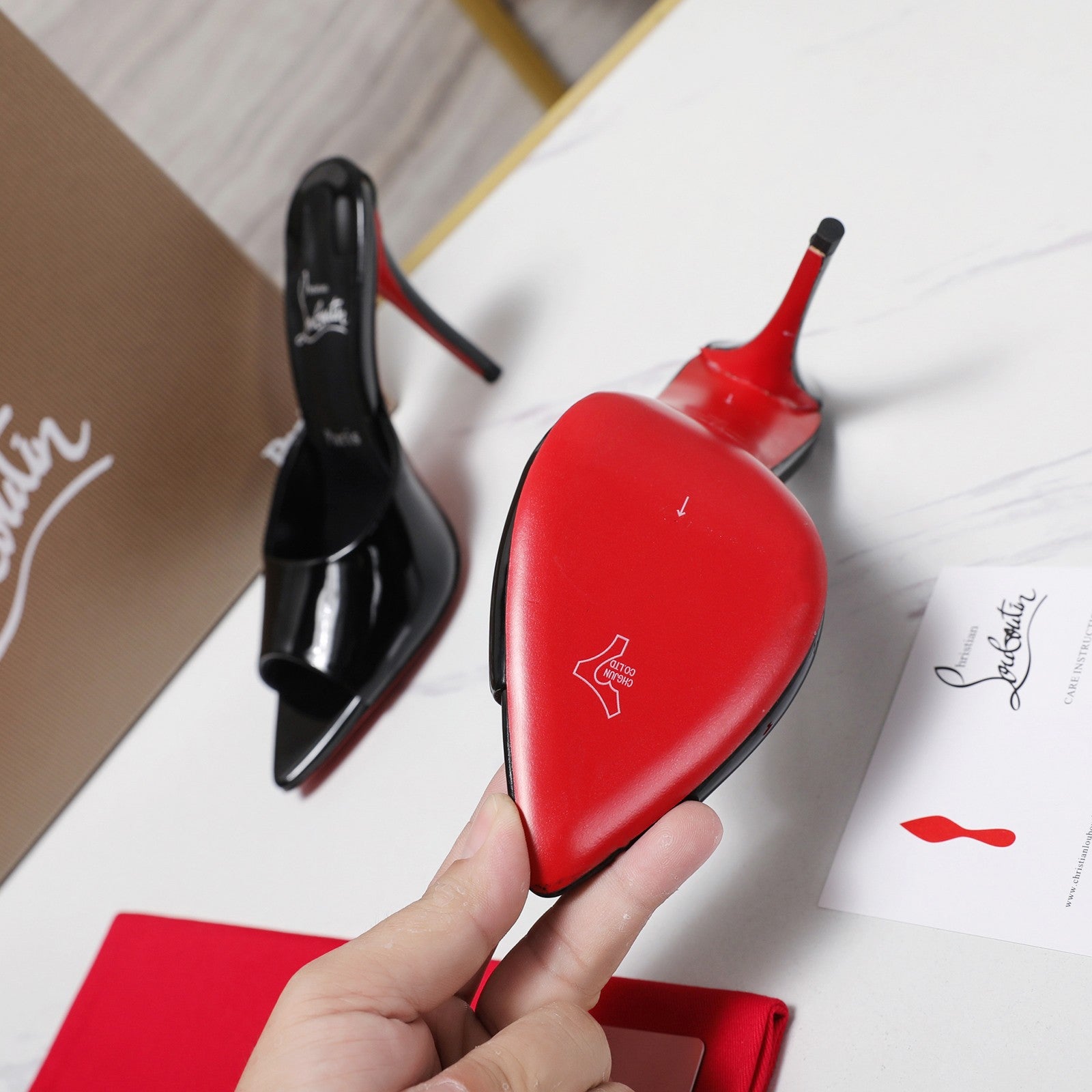 DOLLY SLIDE SANDALS 100MM IN BLACK CALFSKIN