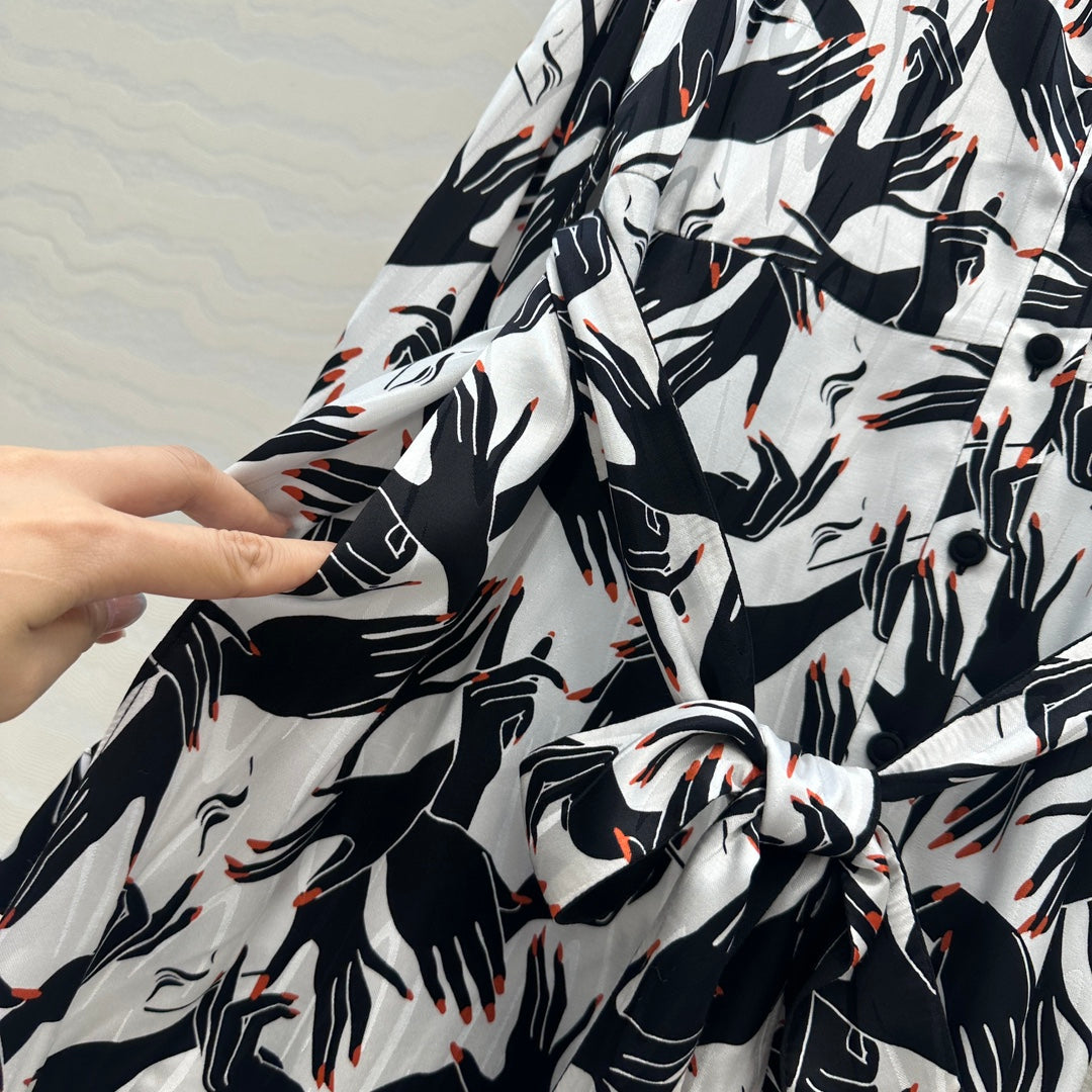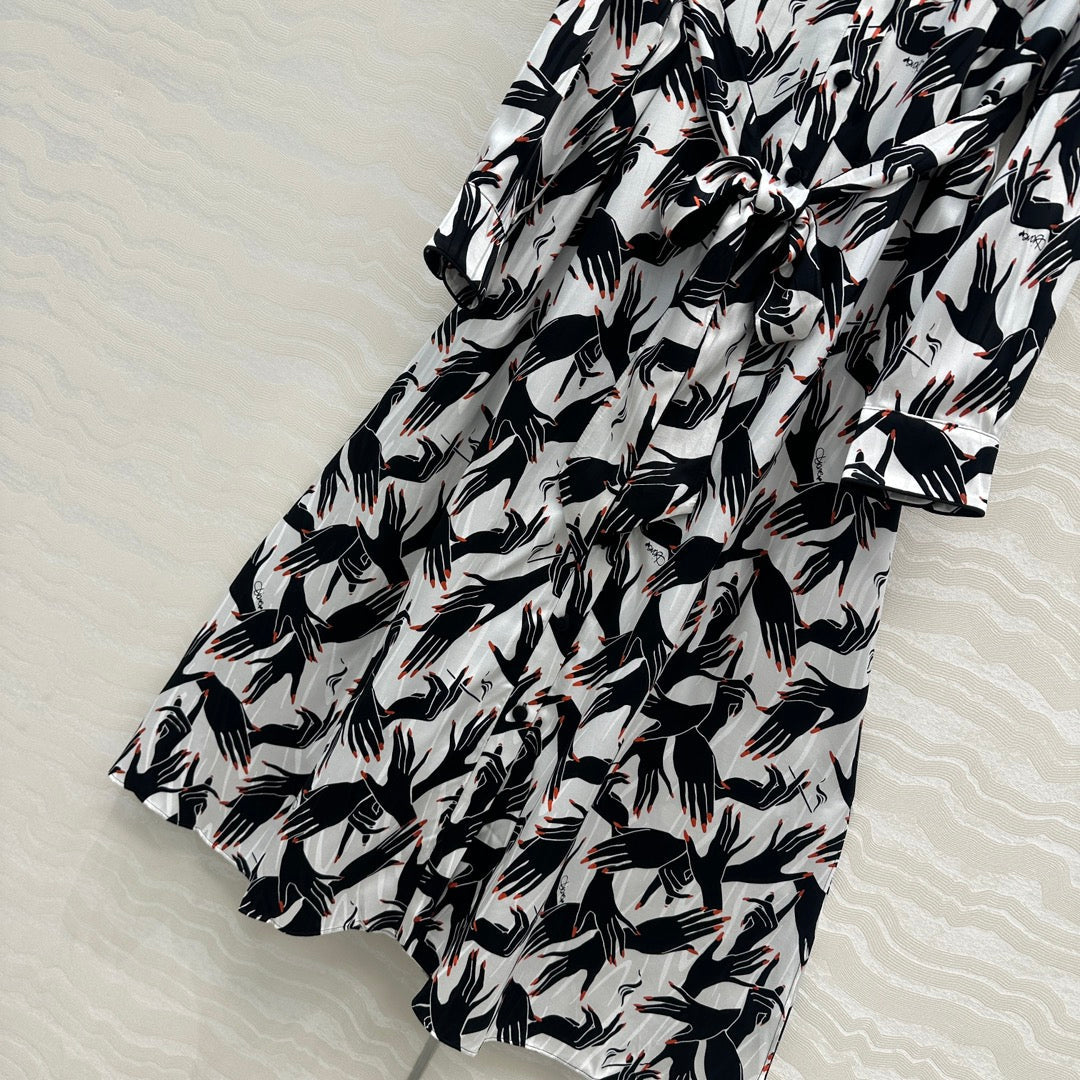 DVF WHITE AND BLACK PRINTED SILK SHIRT DRESS