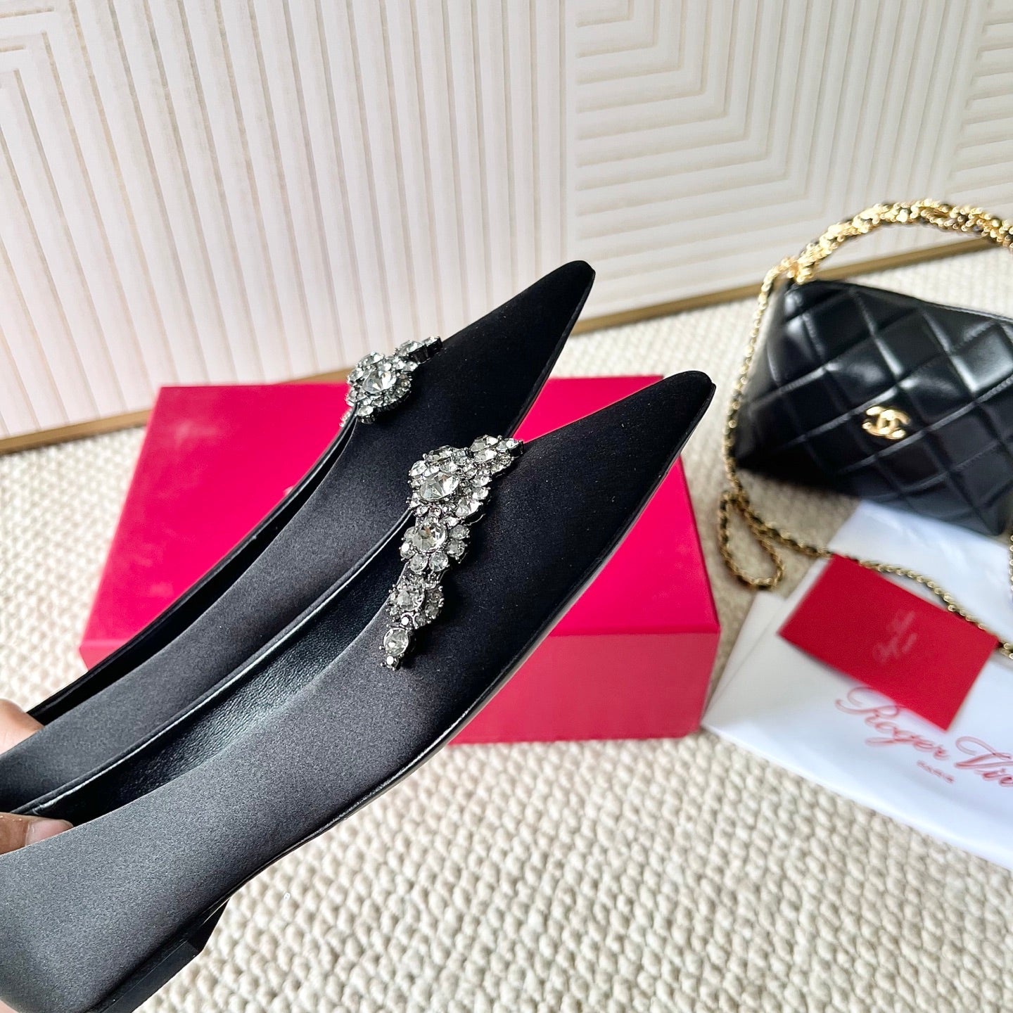 EFFLORESCENCE BALLERINAS IN BLACK SATIN