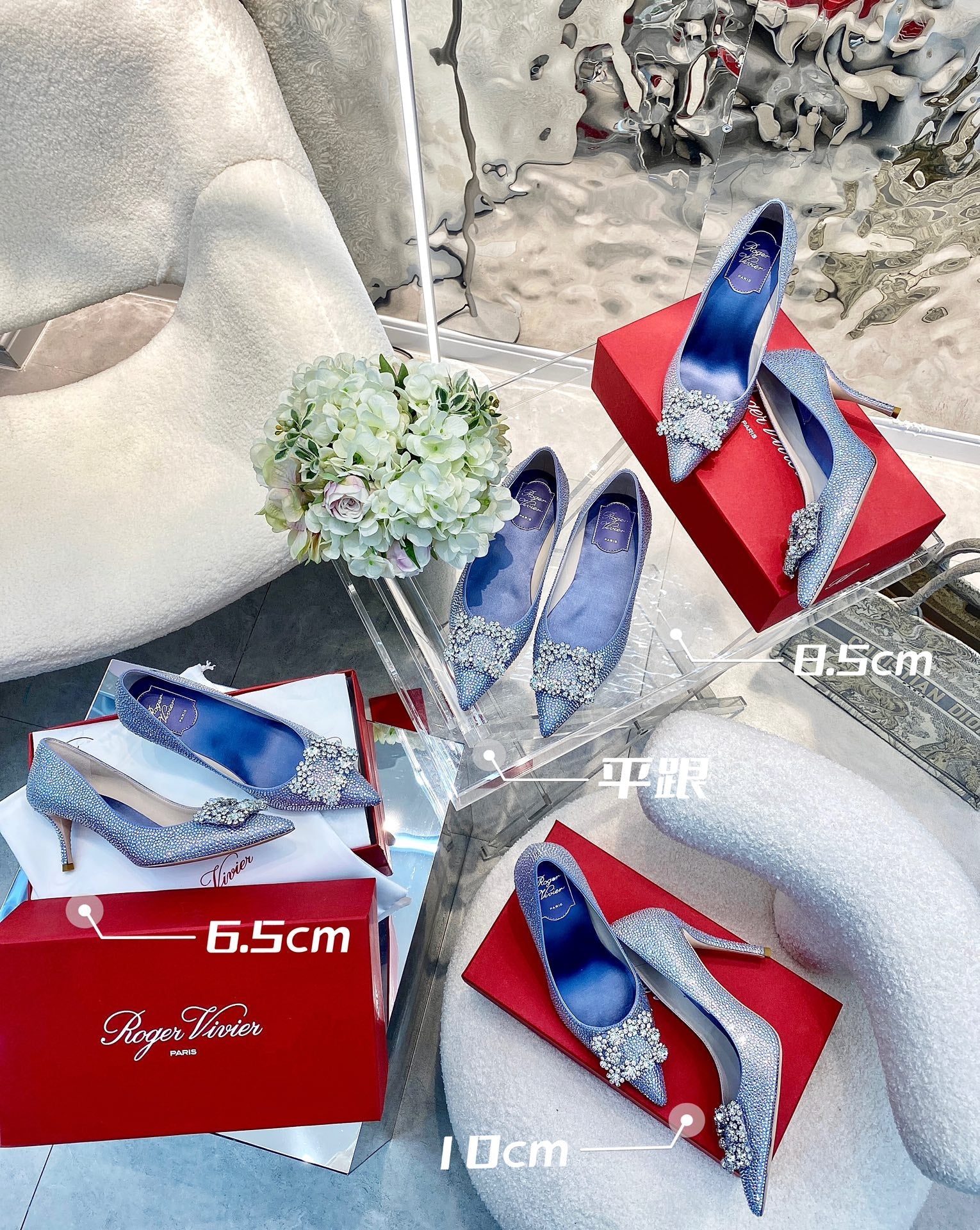 EFFLORESCENCE BALLERINAS IN BLUE CALFSKIN WITH FULLY EMBELLISHED CRYSTALS