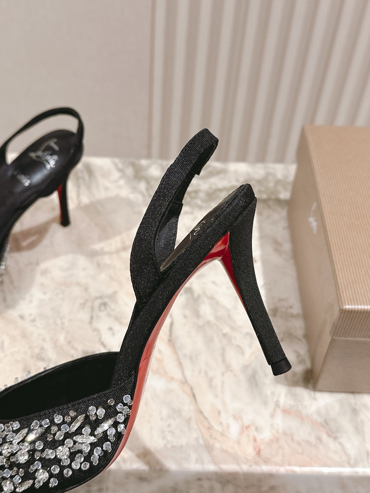 EMBELLISHED QUEENISSIMA SLINGBACK PUMPS 95MM IN BLACK GLITTER CALFSKIN