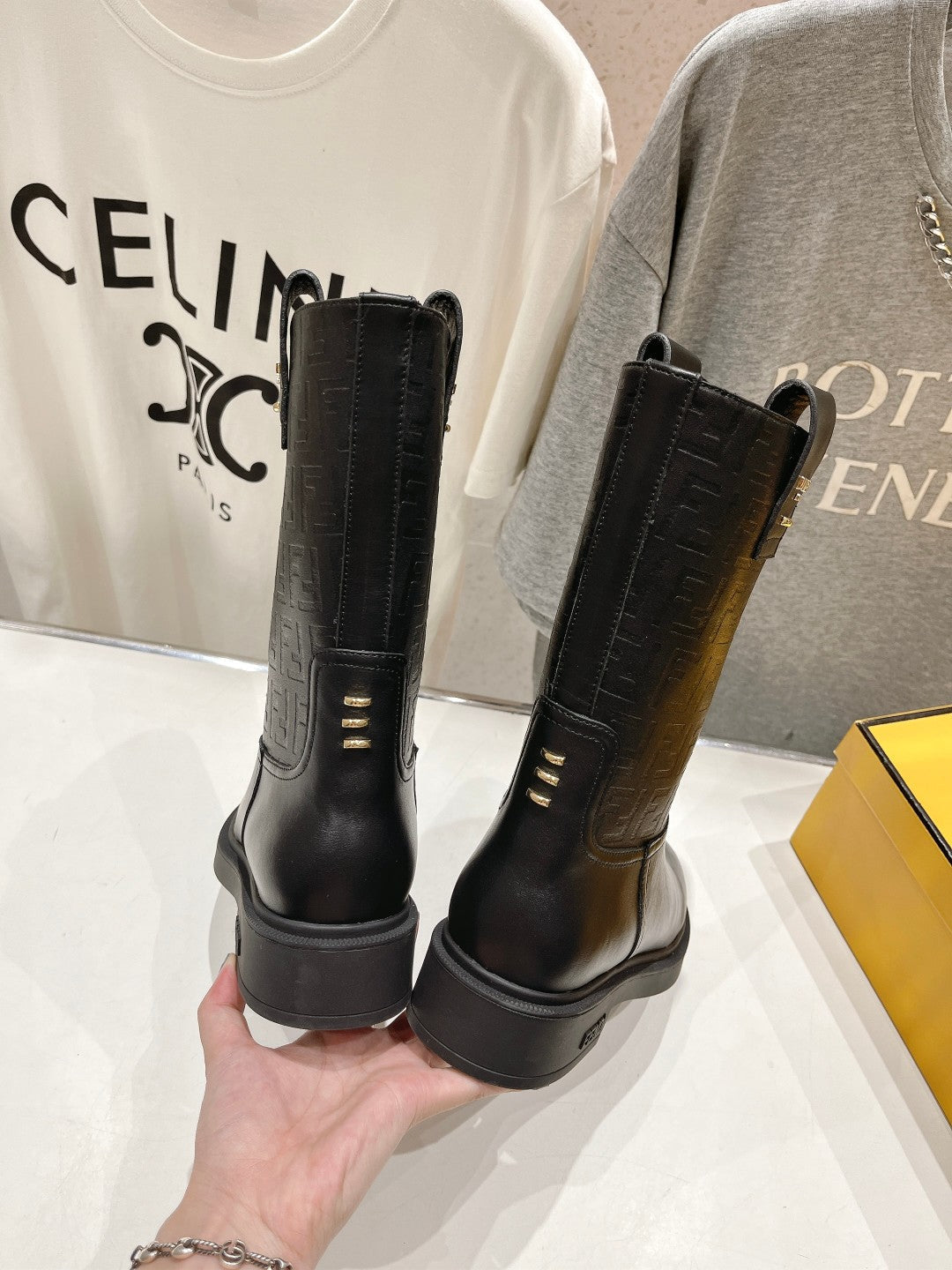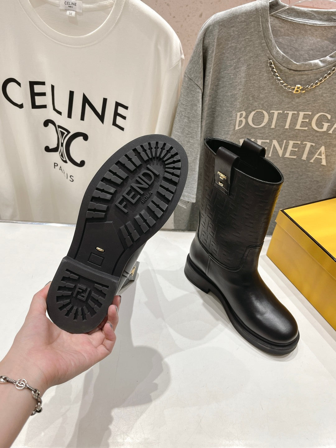 FENDI 25S ANKLE BOOTS IN BLACK COWHIDE LOGO EMBOSSING