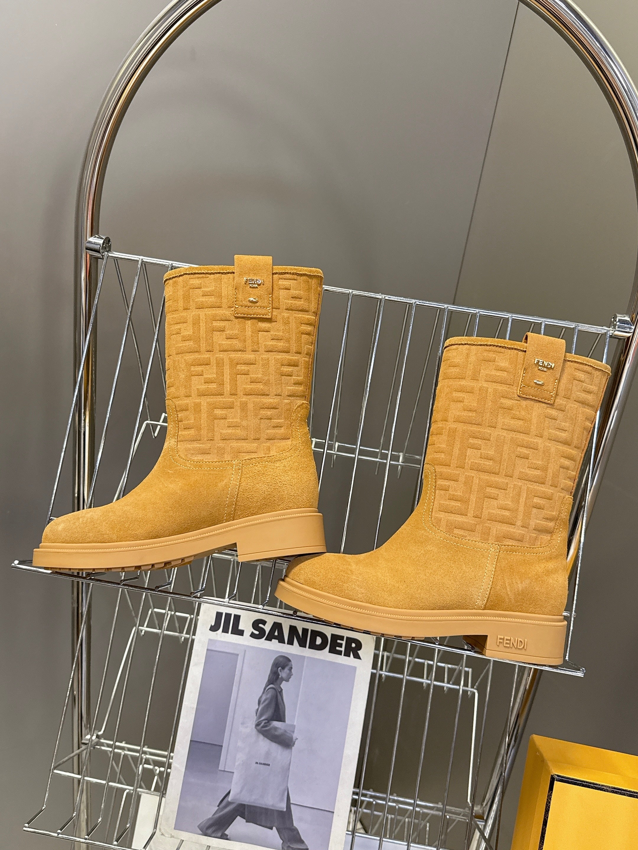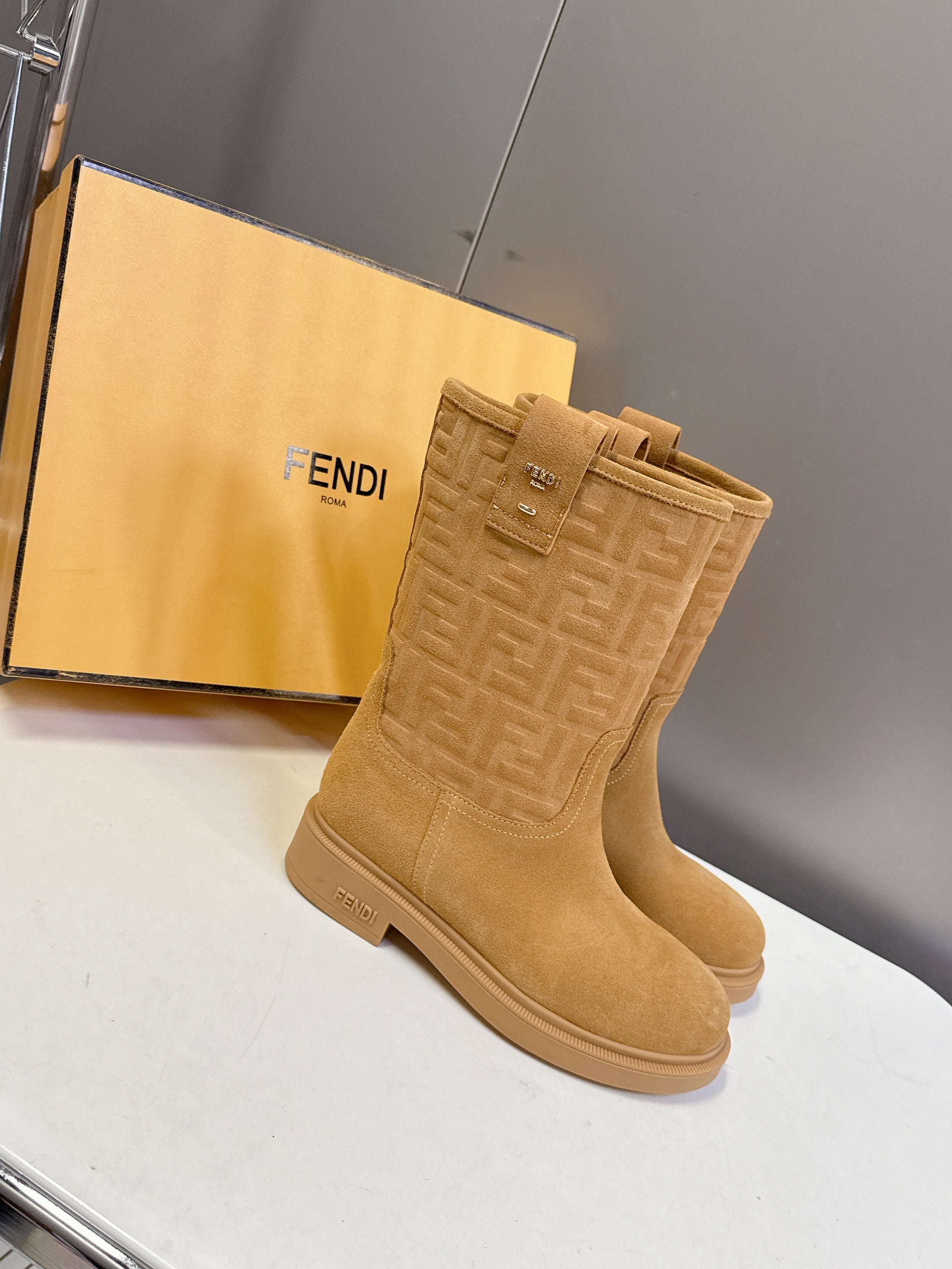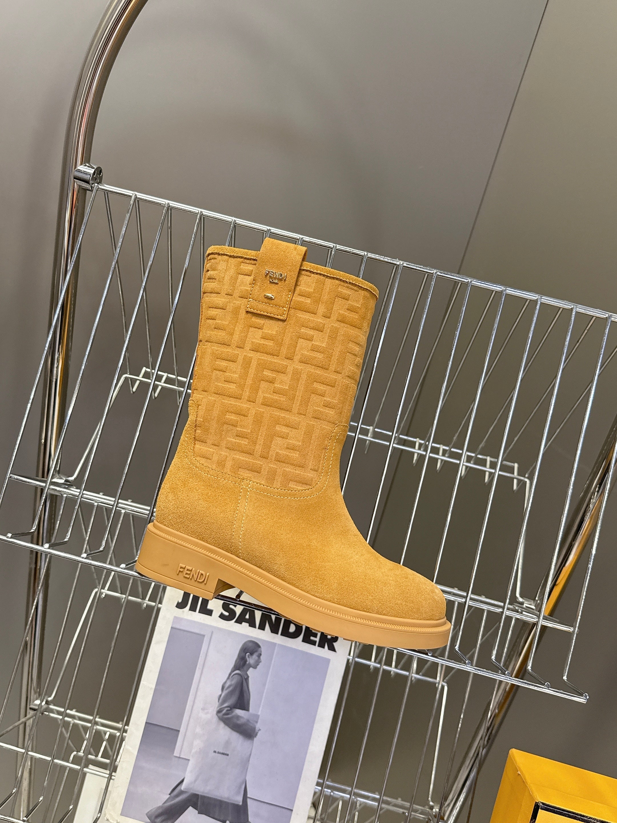 FENDI 25S BOOTS IN GOLDEN BROWN SUEDE