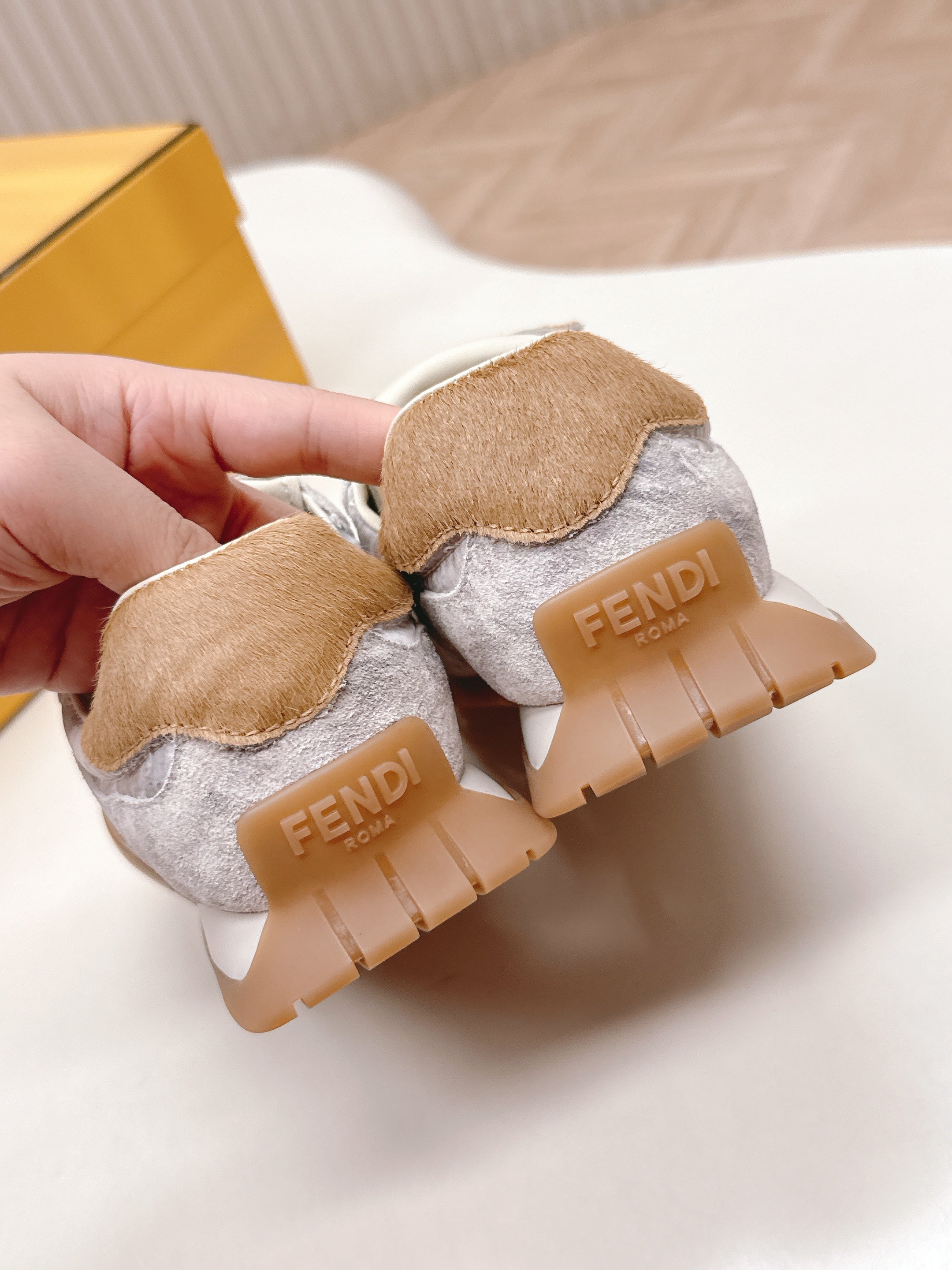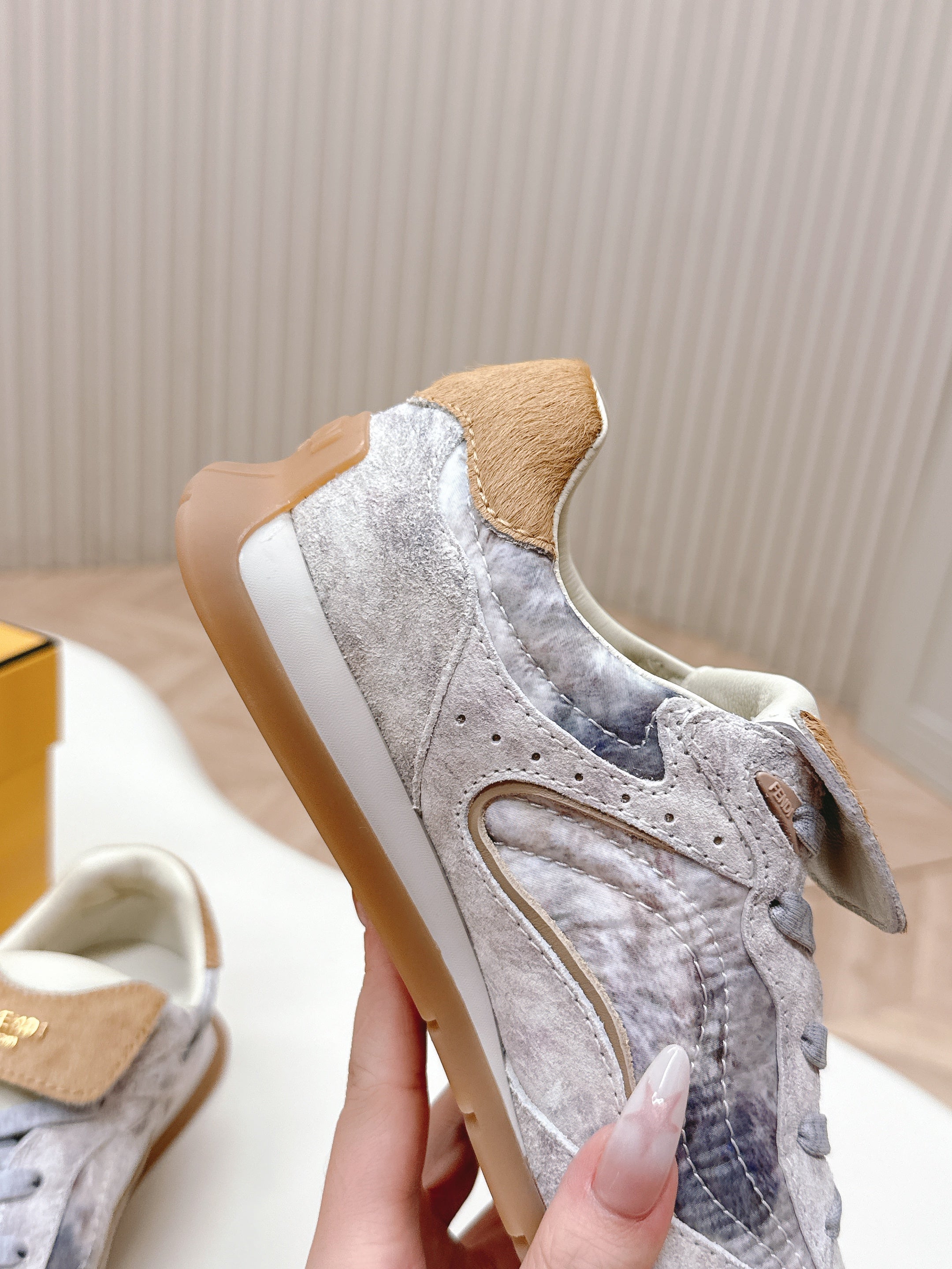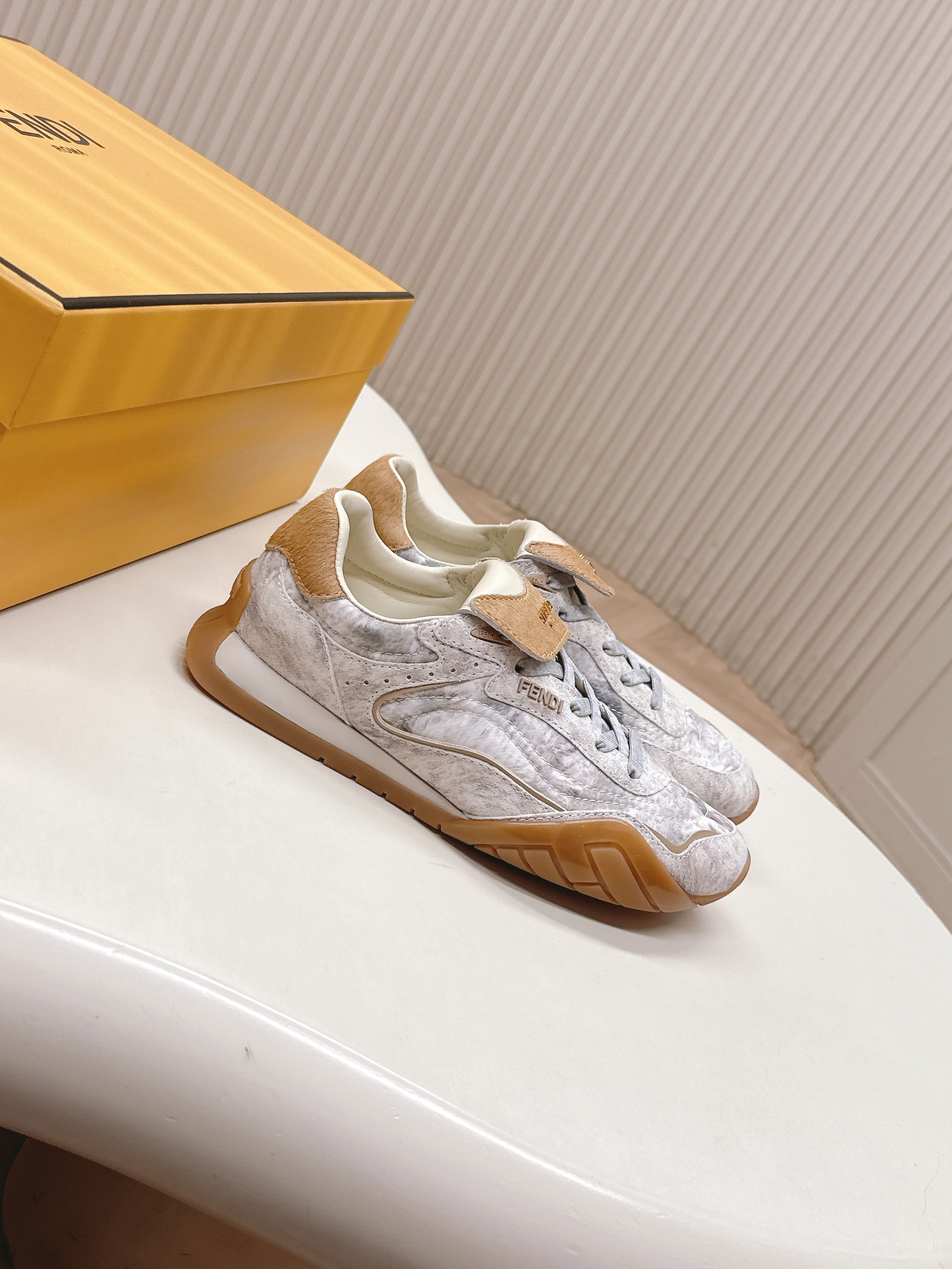 FENDI 25S CORTEZ RETRO SNEAKERS IN BEIGE WHITE SUEDE AND FABRIC