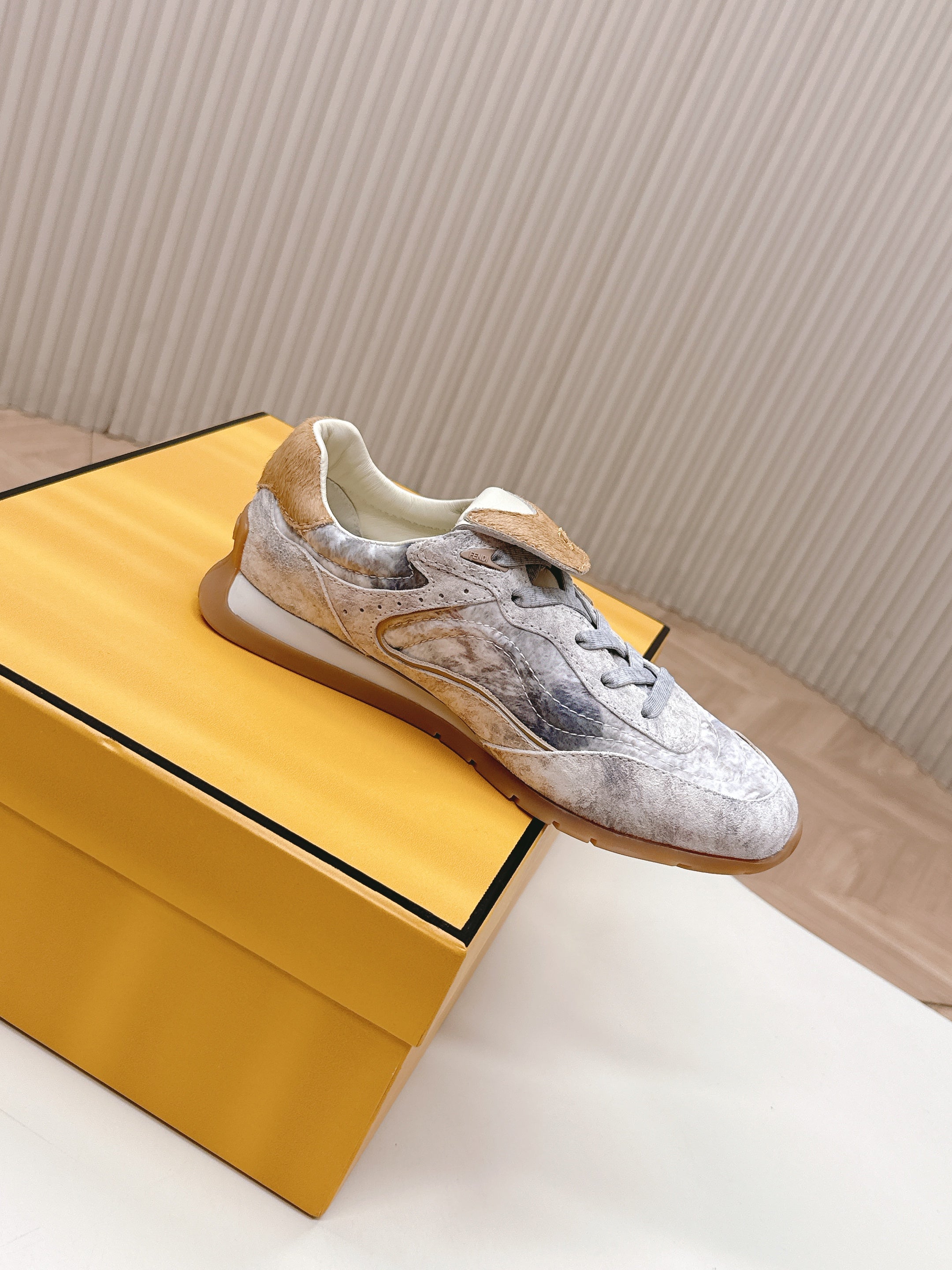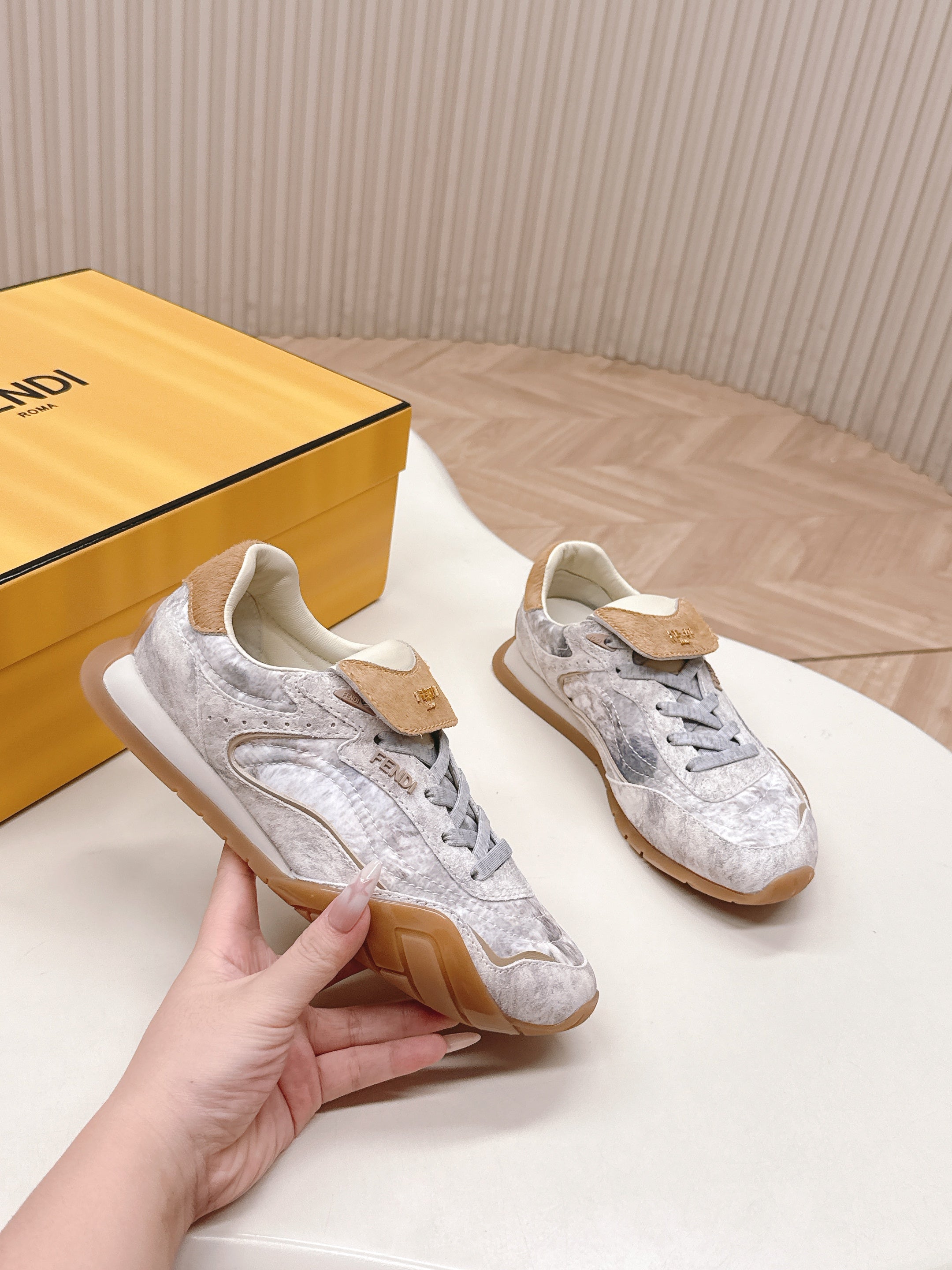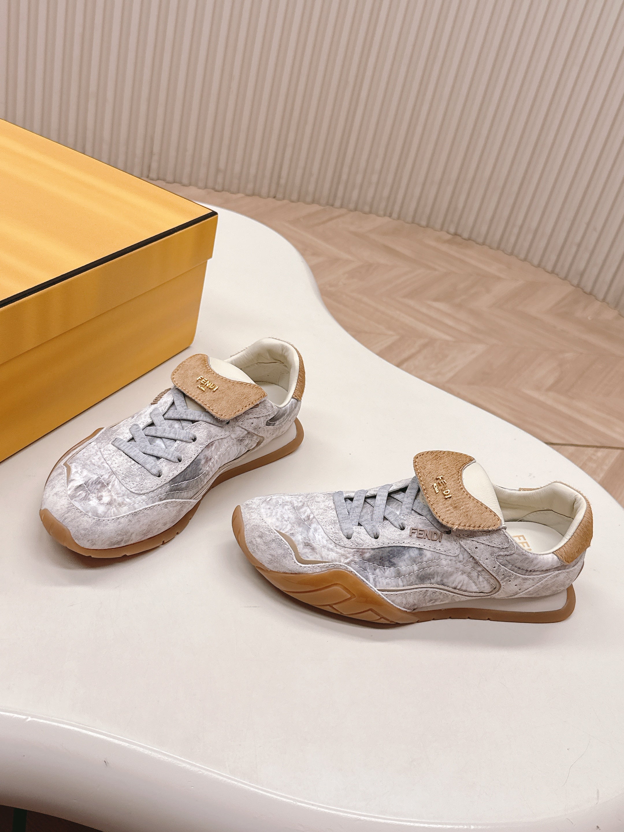 FENDI 25S CORTEZ RETRO SNEAKERS IN BEIGE WHITE SUEDE AND FABRIC