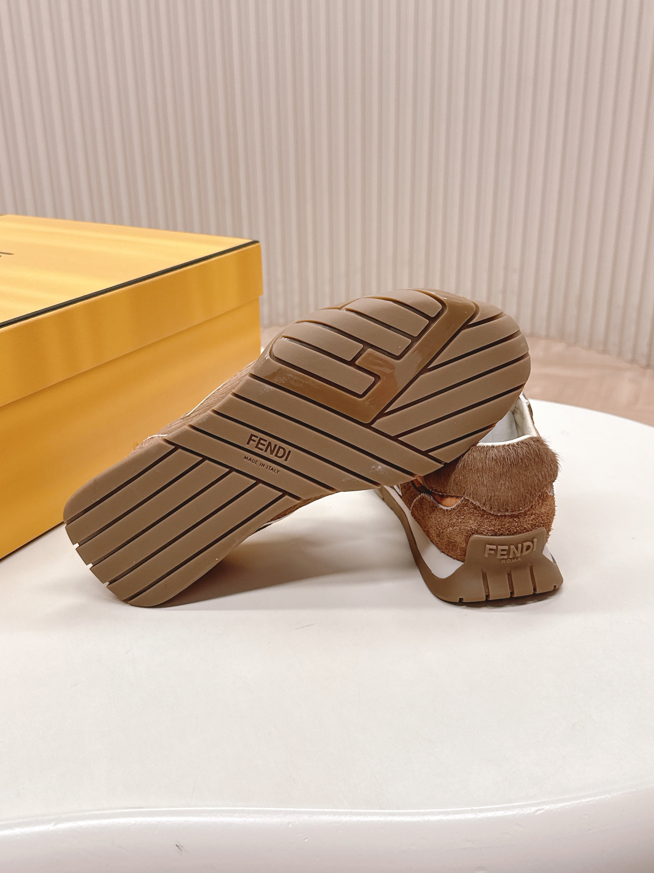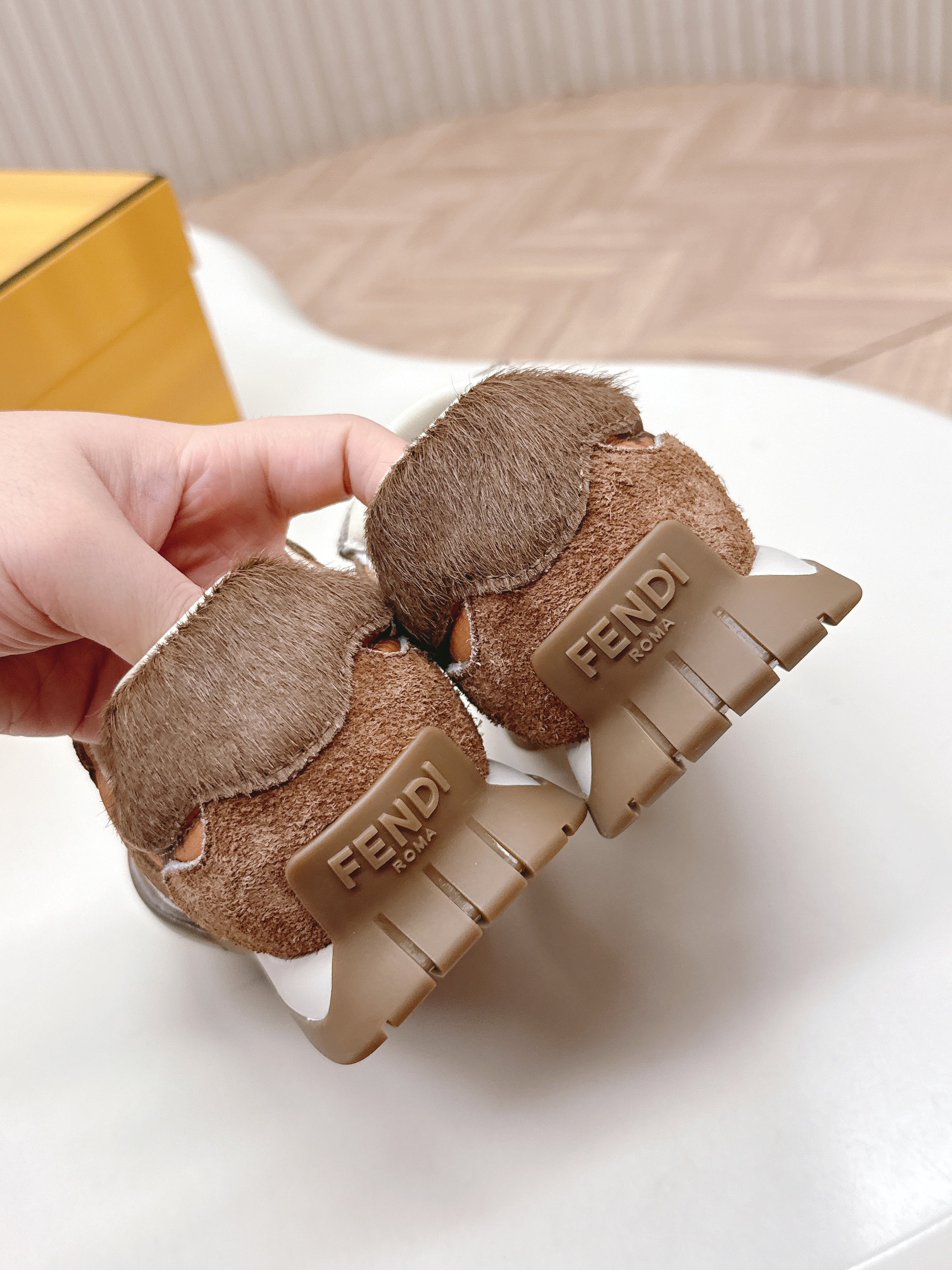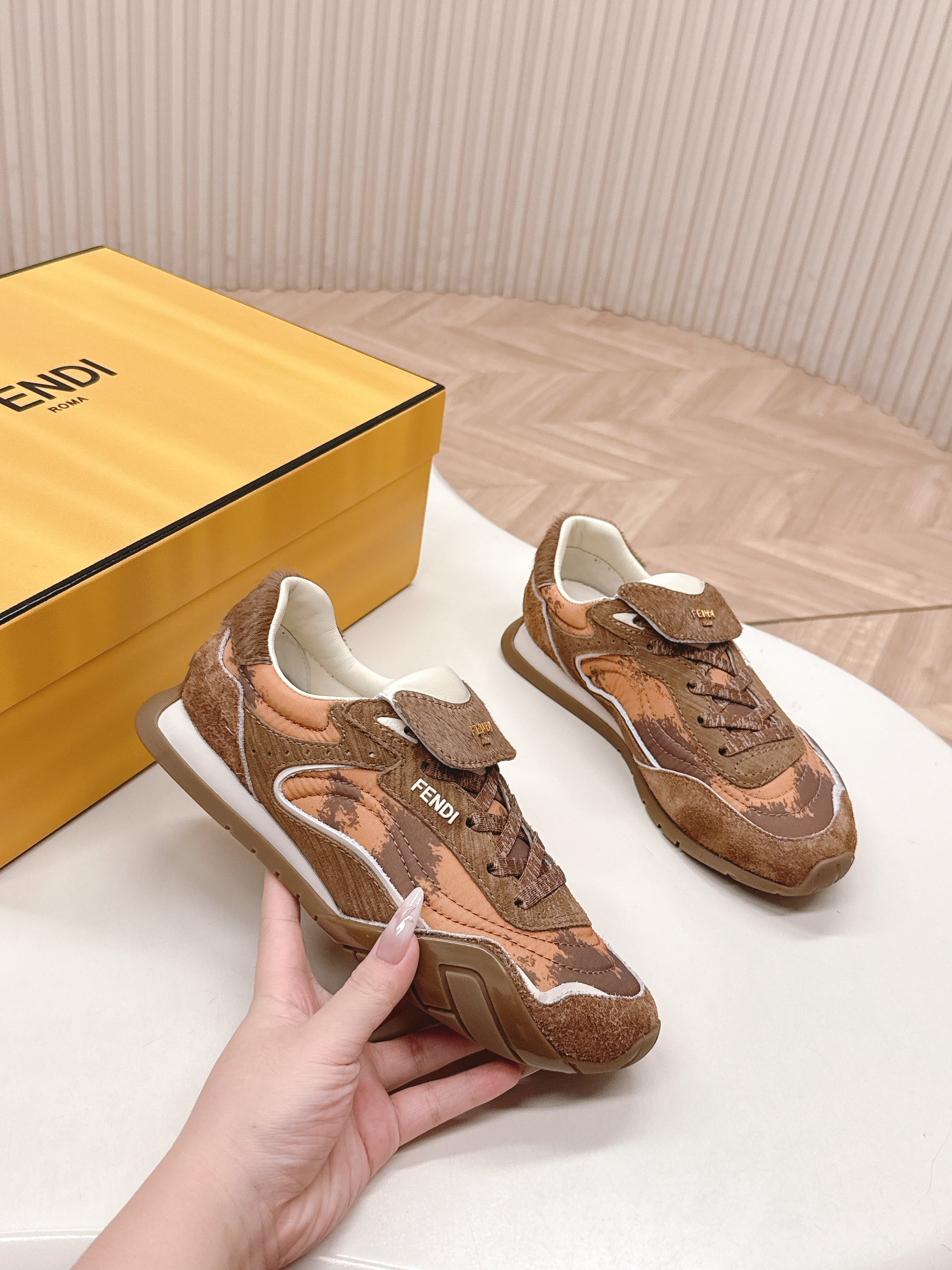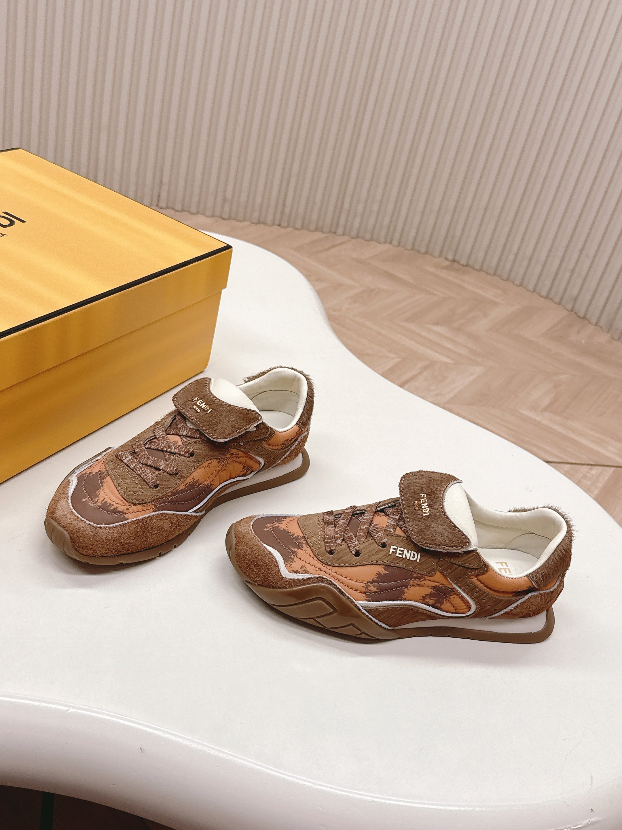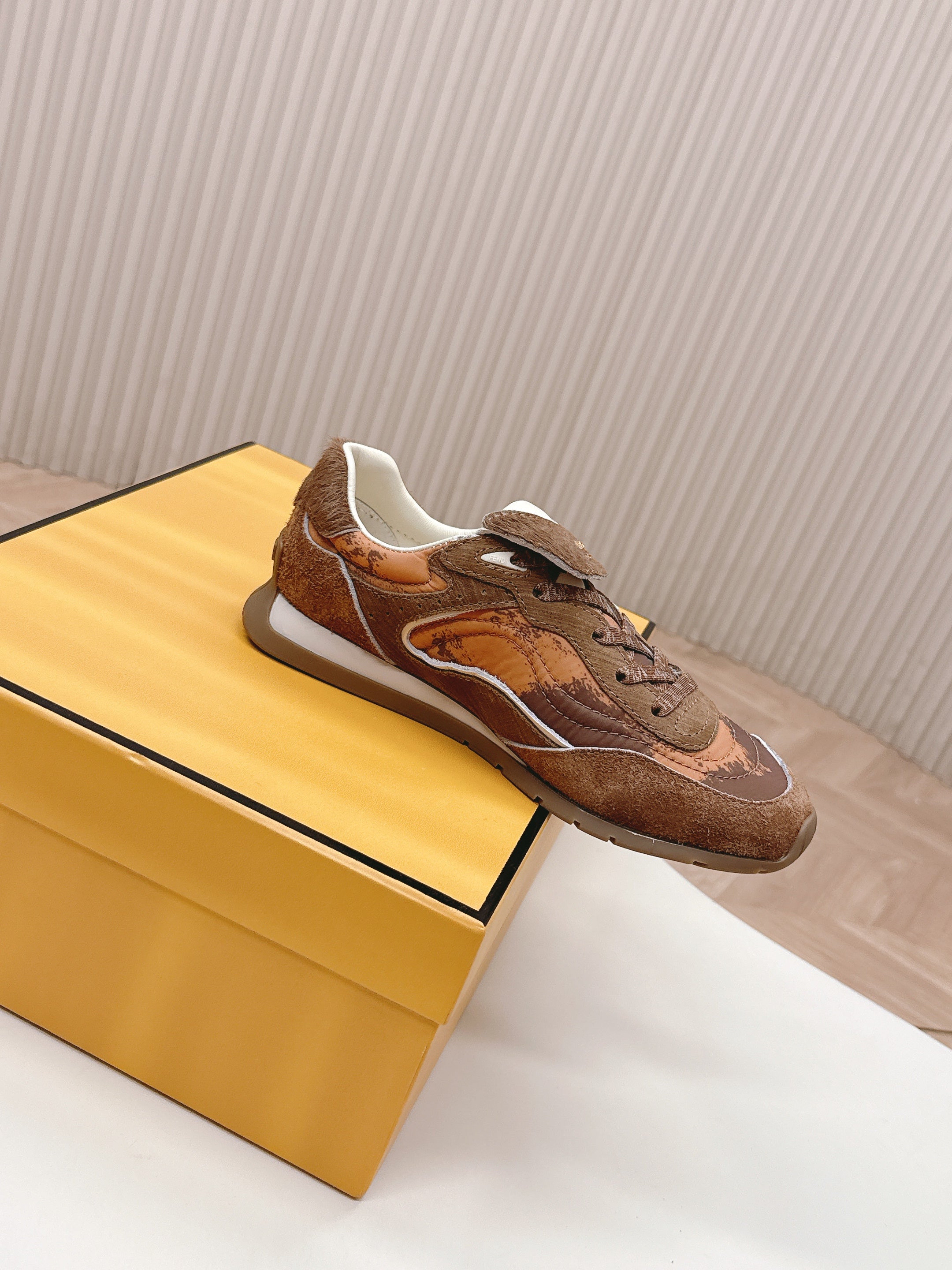FENDI 25S CORTEZ RETRO SNEAKERS IN BROWN SUEDE AND FABRIC
