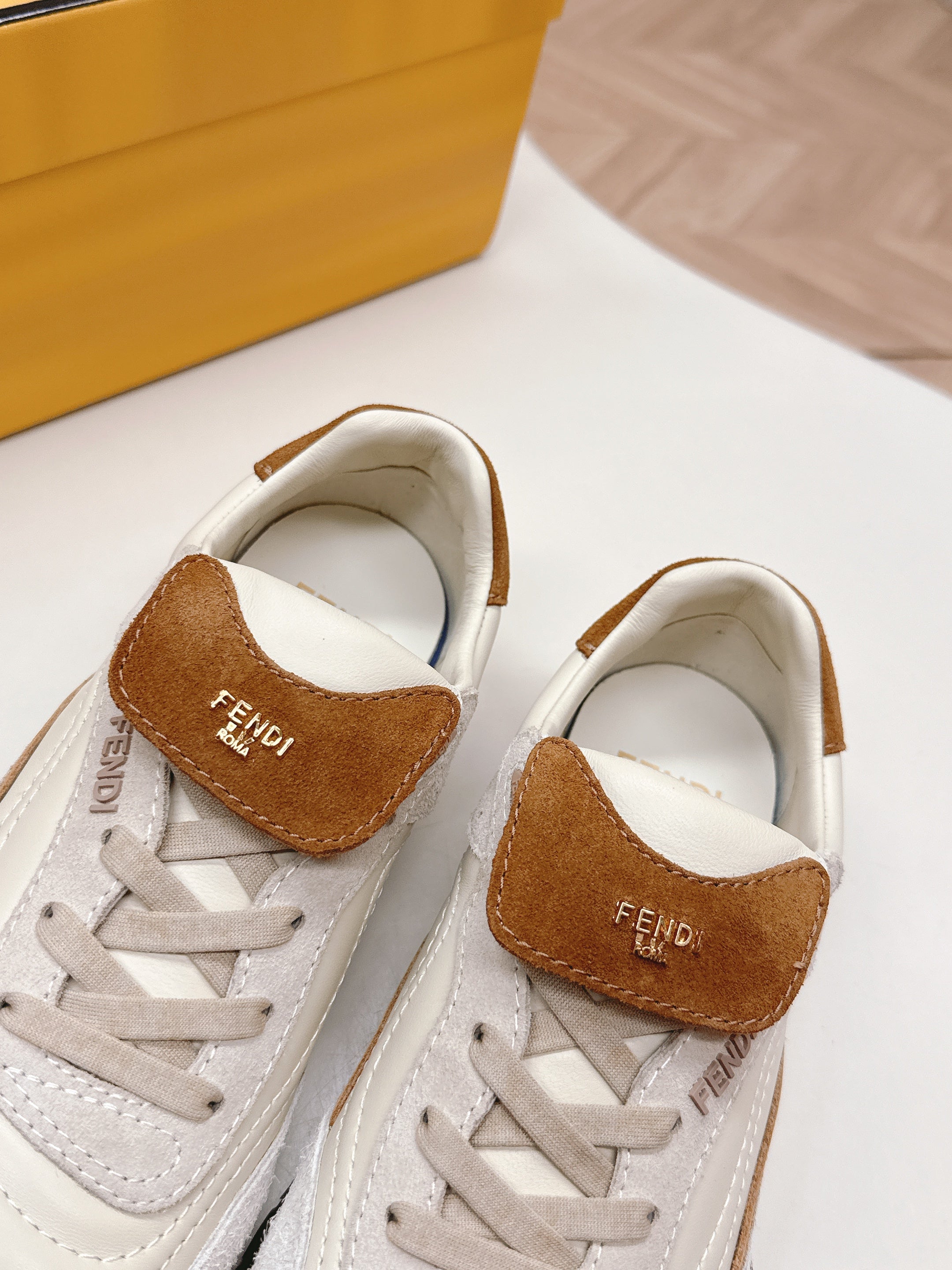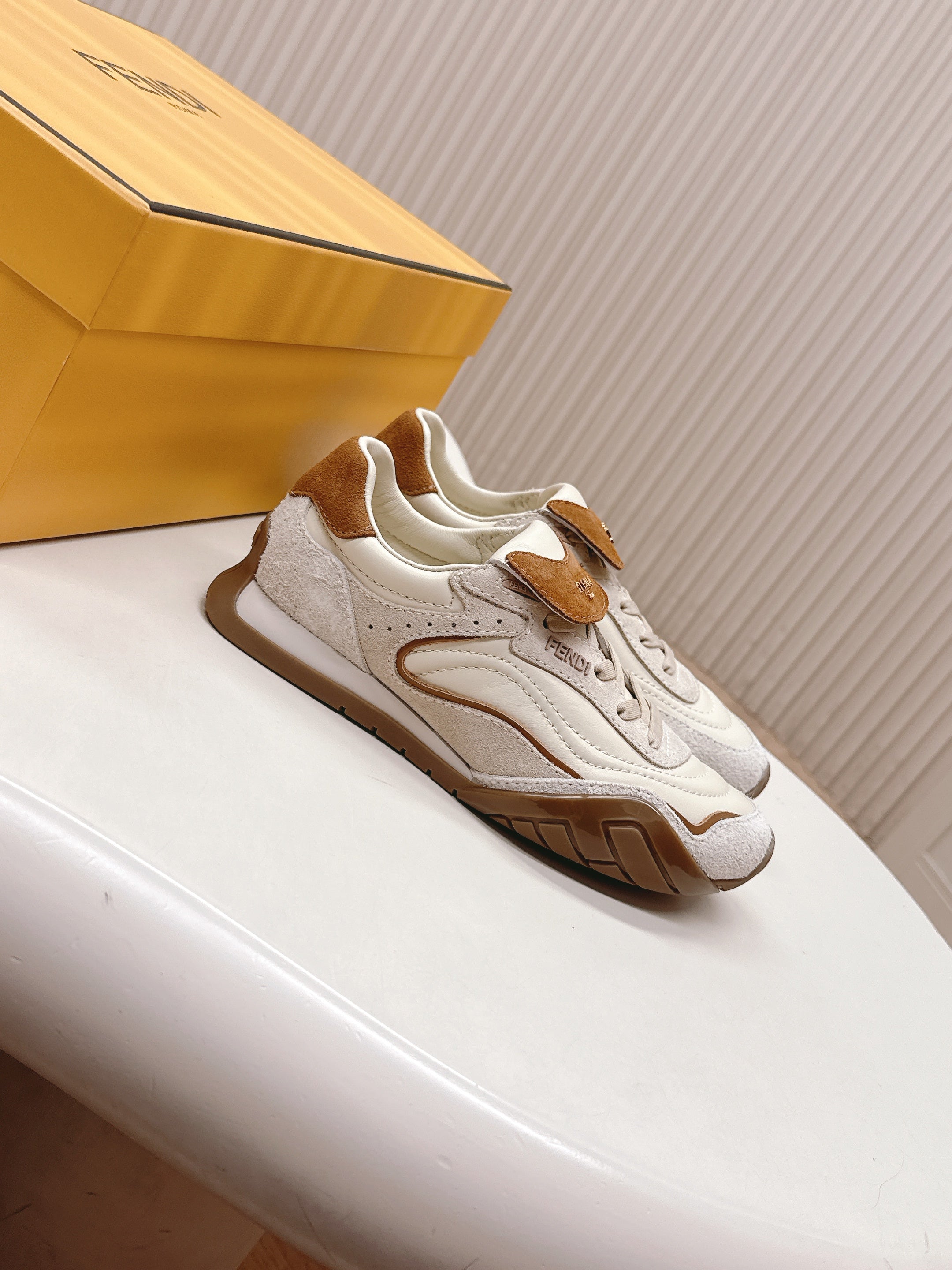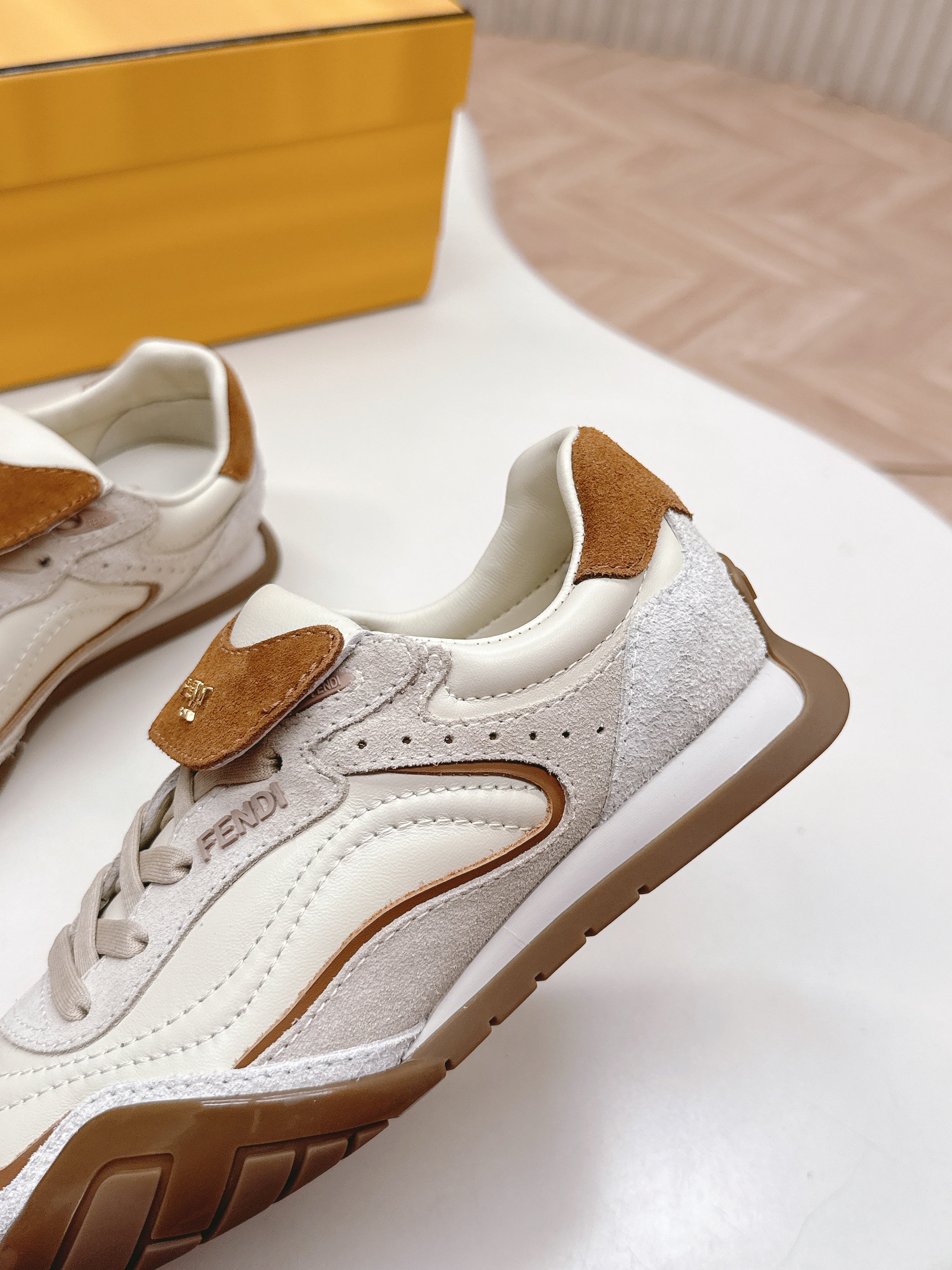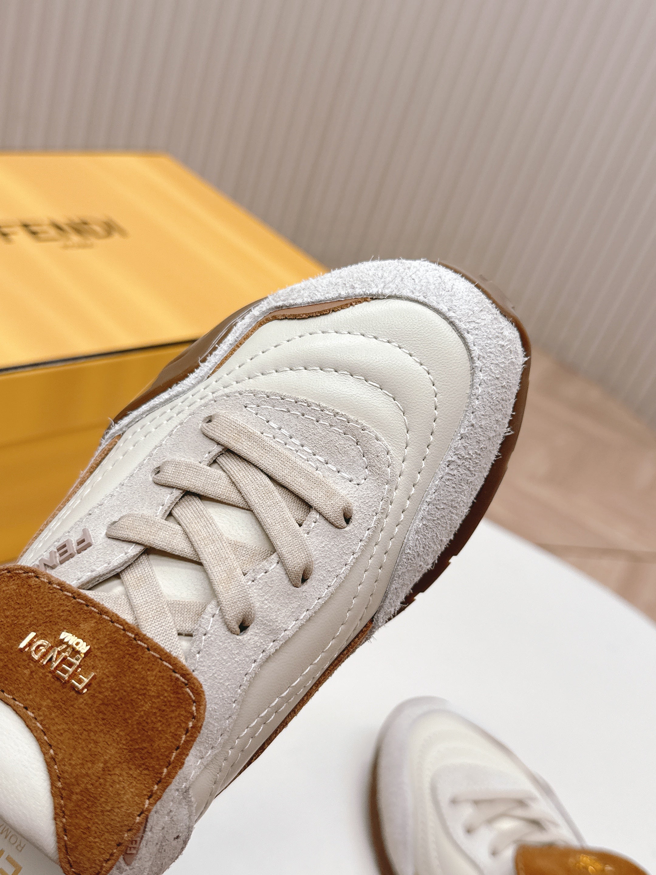 FENDI 25S CORTEZ RETRO SNEAKERS IN CREAM WHITE MIX BROWN LAMBSKIN