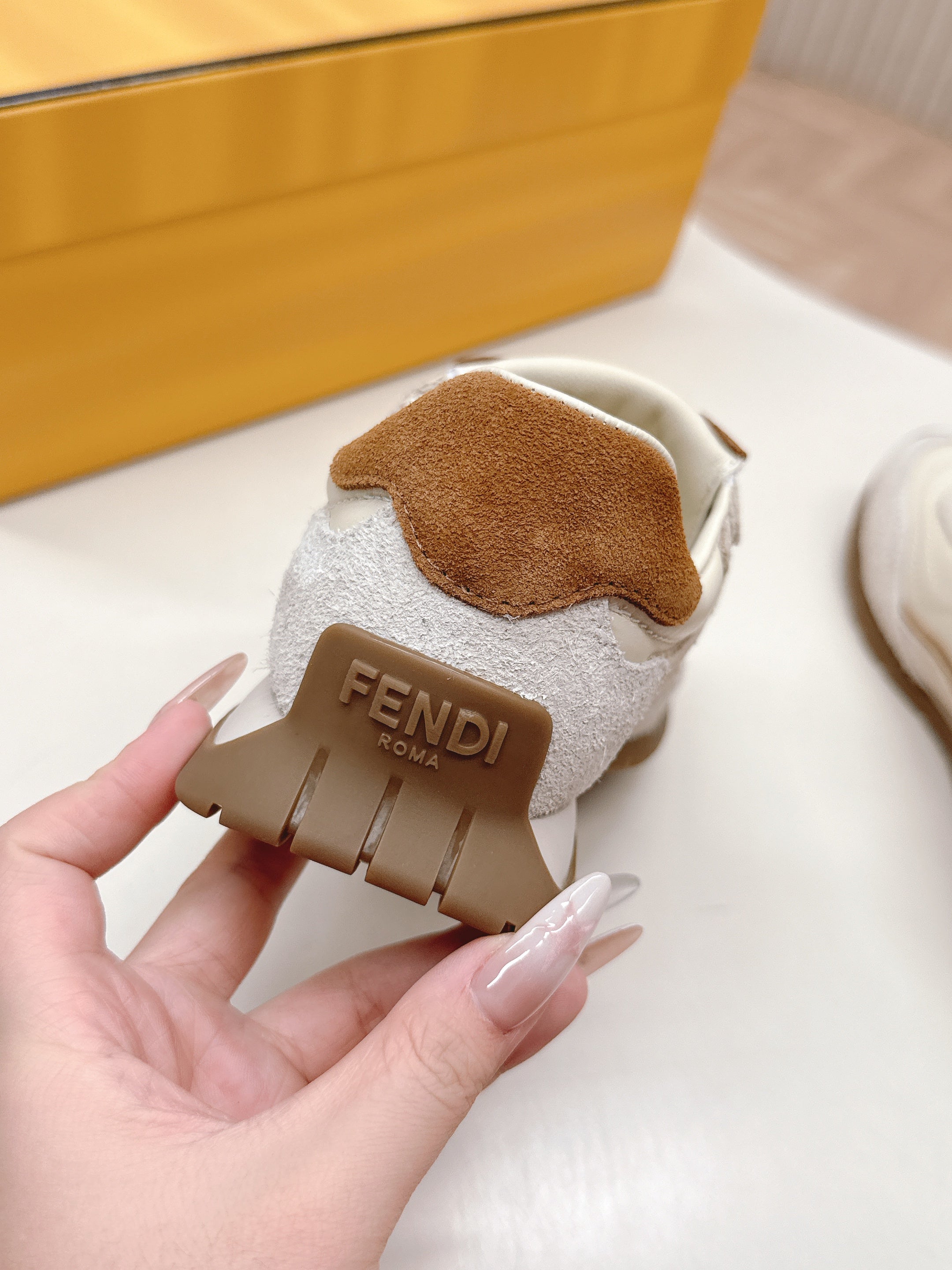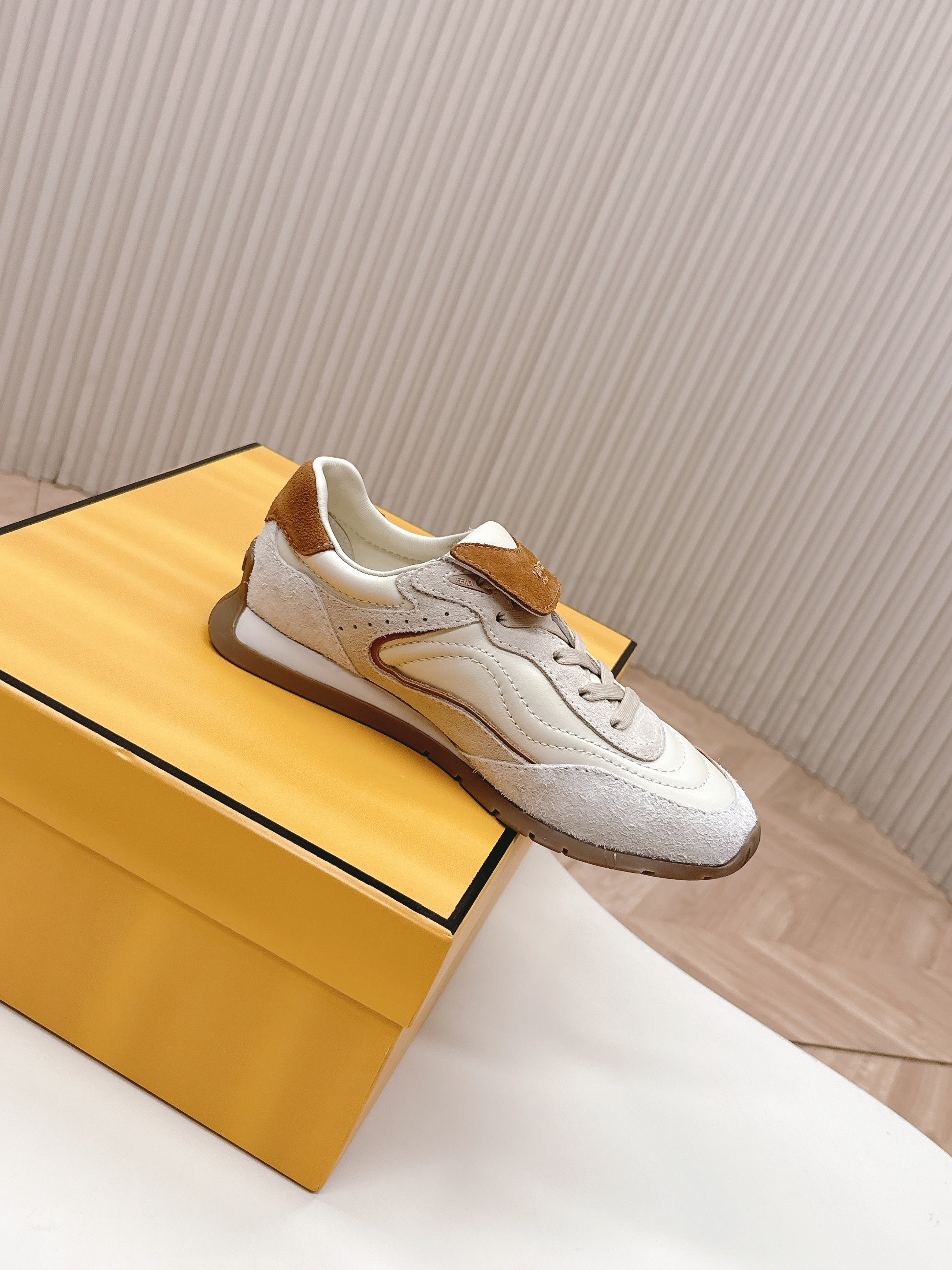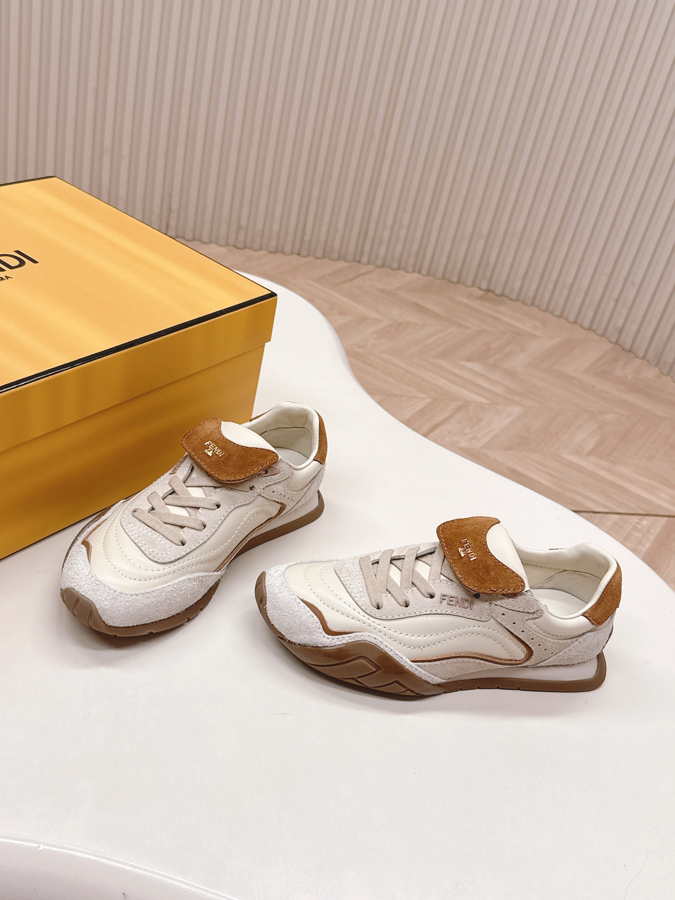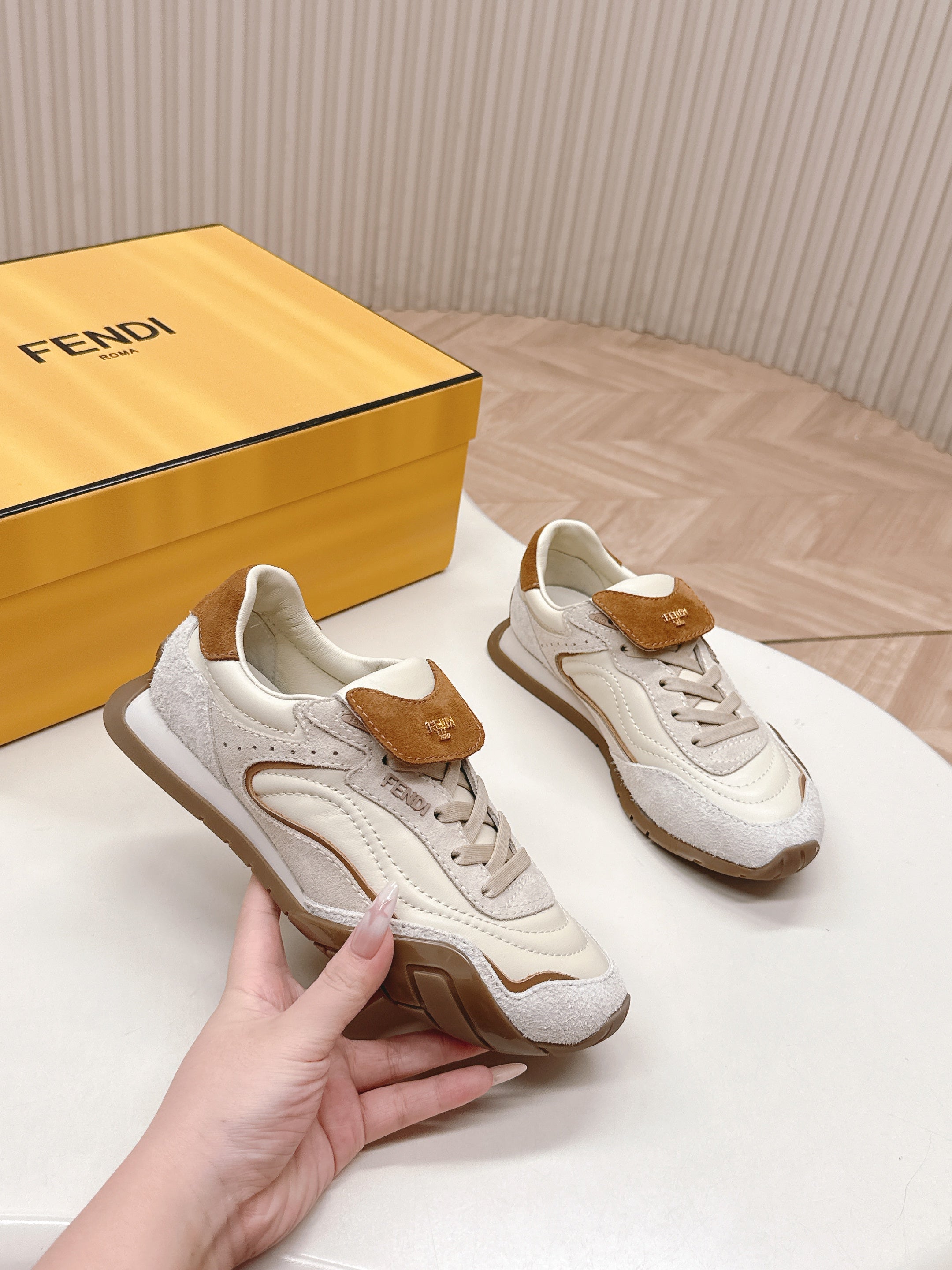 FENDI 25S CORTEZ RETRO SNEAKERS IN CREAM WHITE MIX BROWN LAMBSKIN